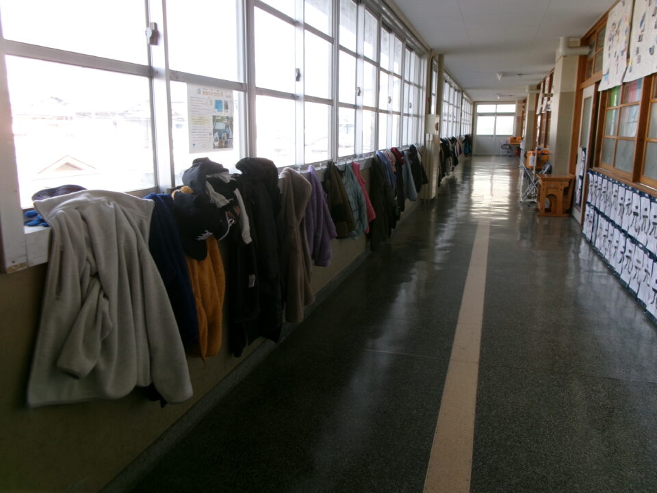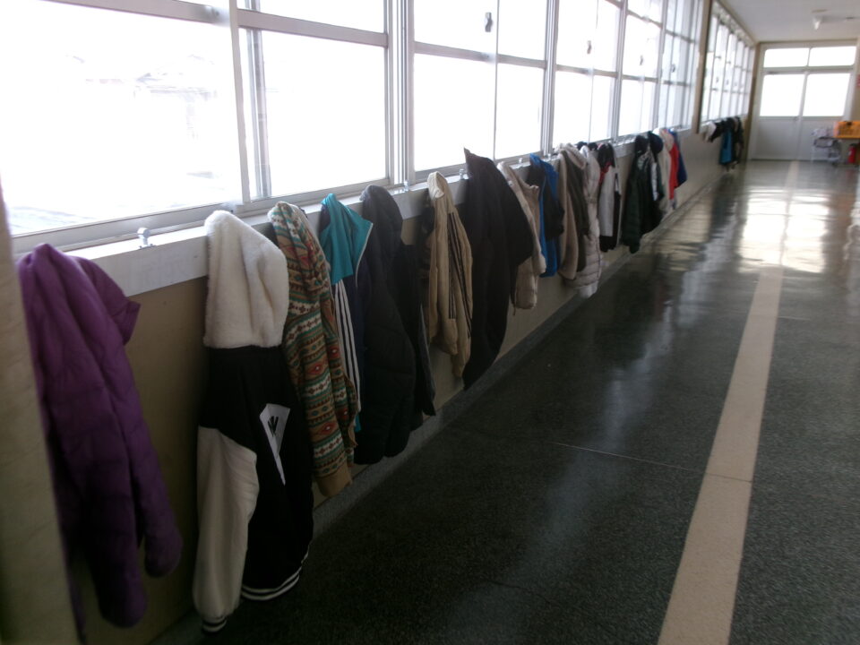 3年生の廊下・・・帽子掛けに上着もかけることができます。寒くなりましたからね~~~(@_@)