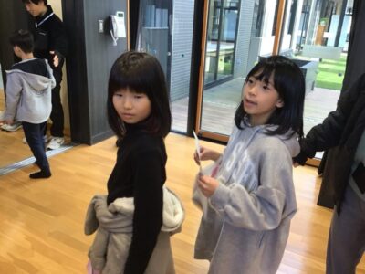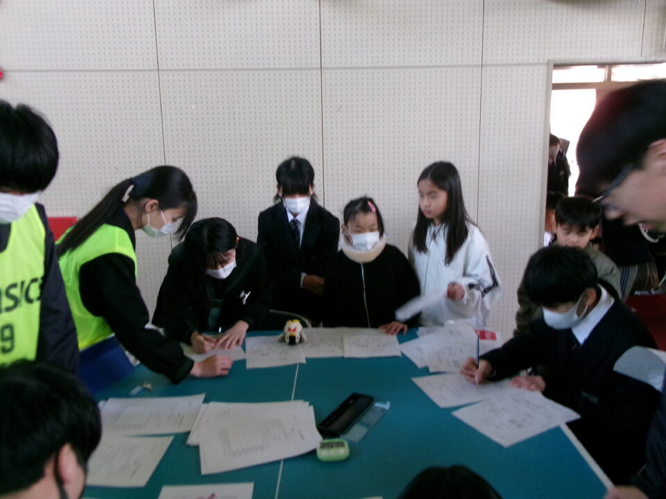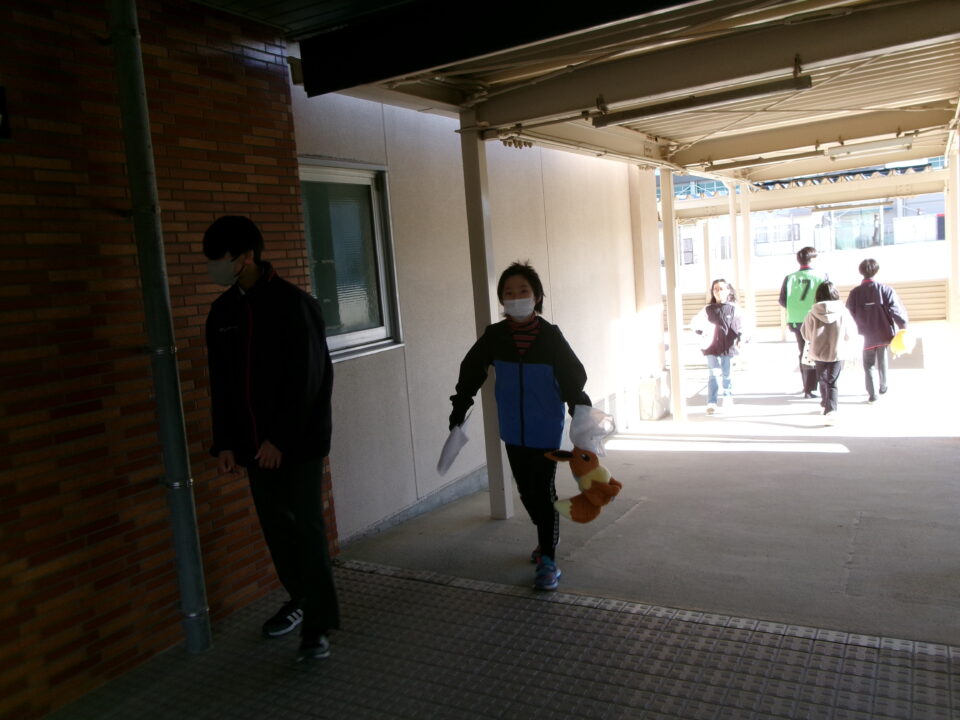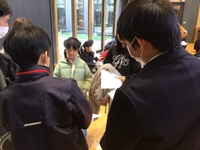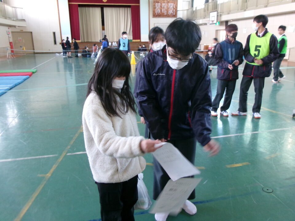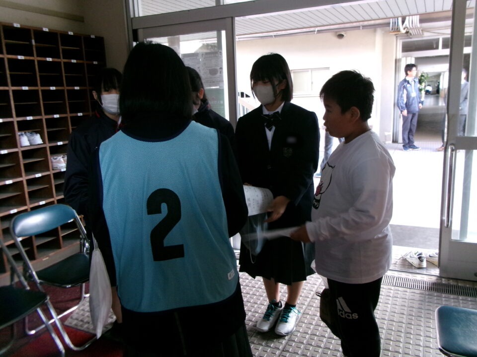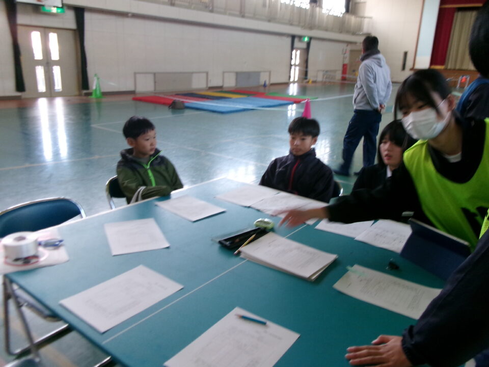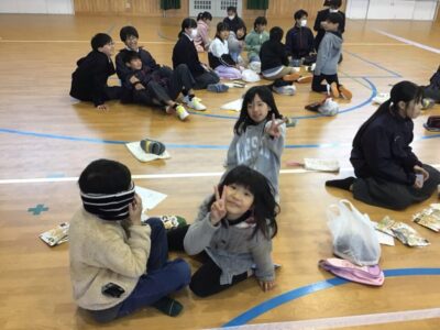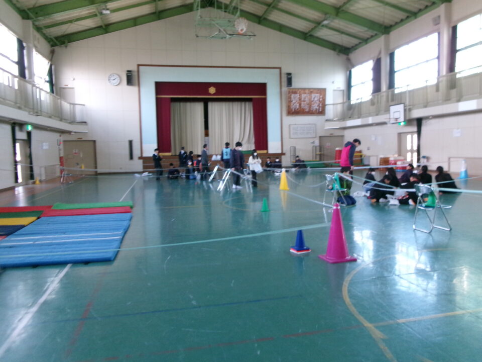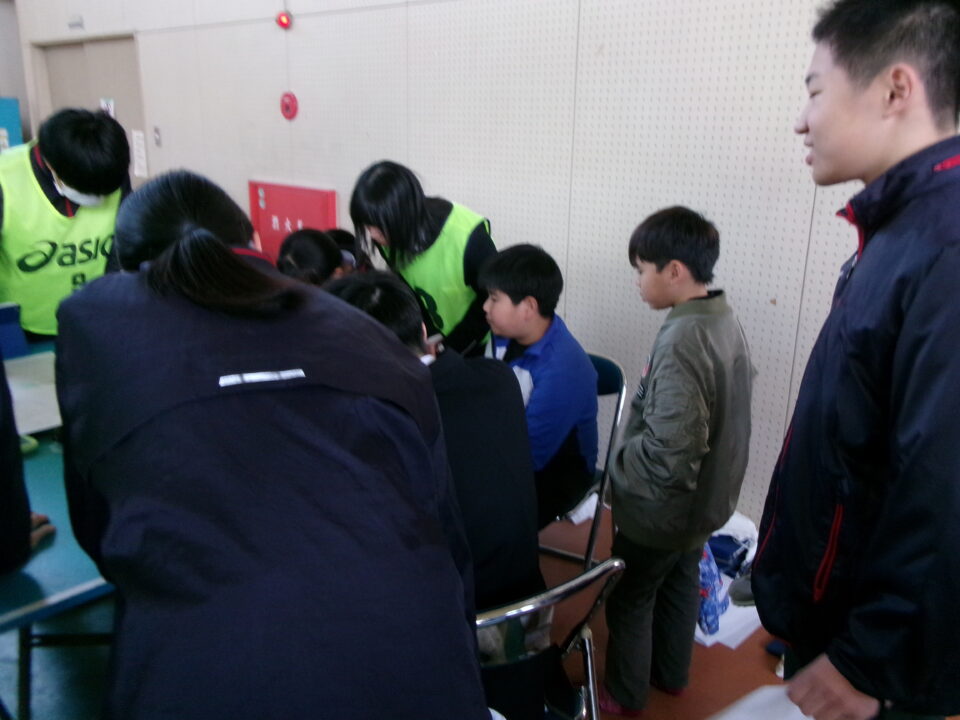 中3のみなさんがリーダーとなって、避難所運営体験を実施する際に、避難者として中1のお兄さん、お姉さんとともに4年生の子たちも避難所へ行った時の体験をさせていただきました。