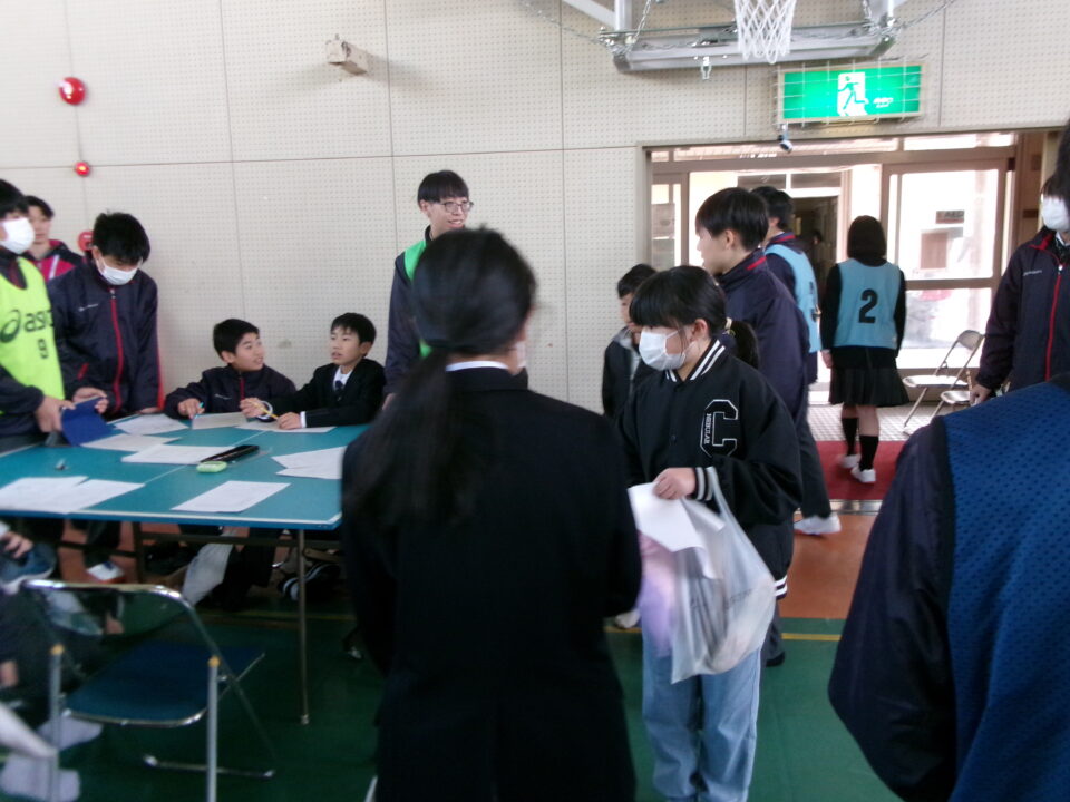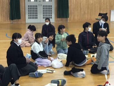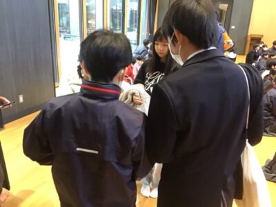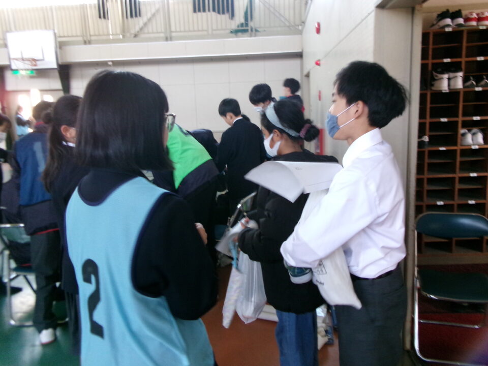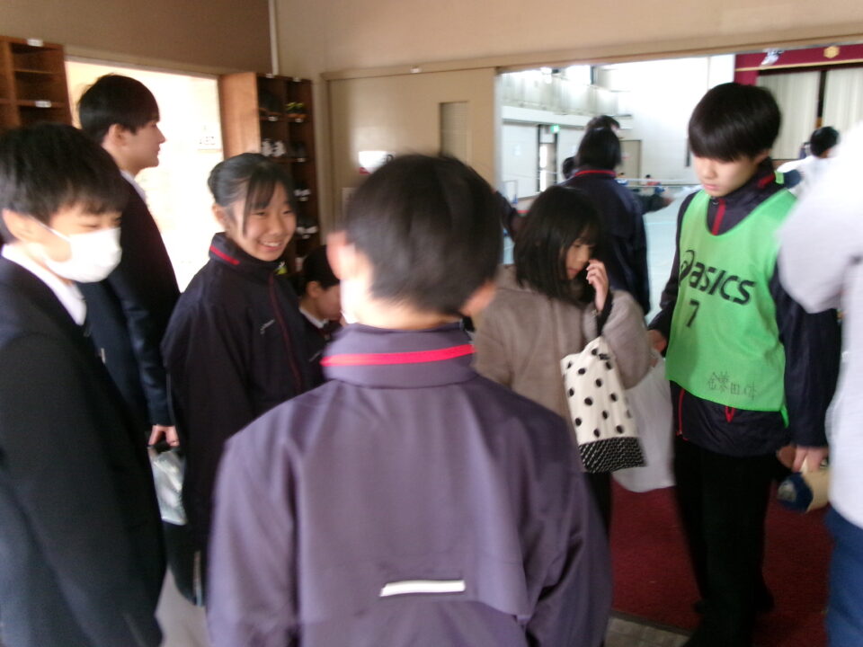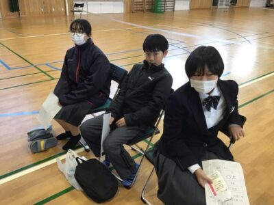 まず、みんなが鎌中多目的室に集まり、話を聞きました。