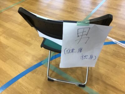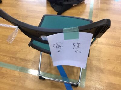 避難所に来る人はいろいろな方たちがいると想定されます。そのために避難者役のみんなは、家族の人、ペットがいる人、病気の人などいろいろな設定で役をしながら、参加させていただきました。