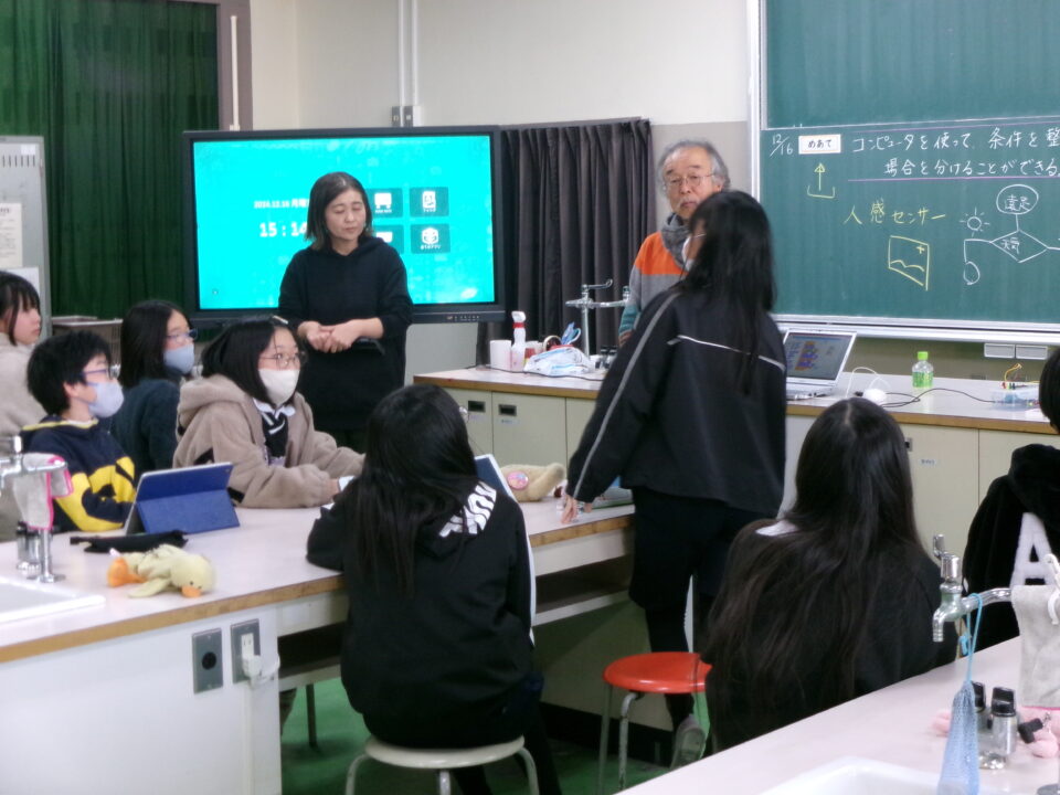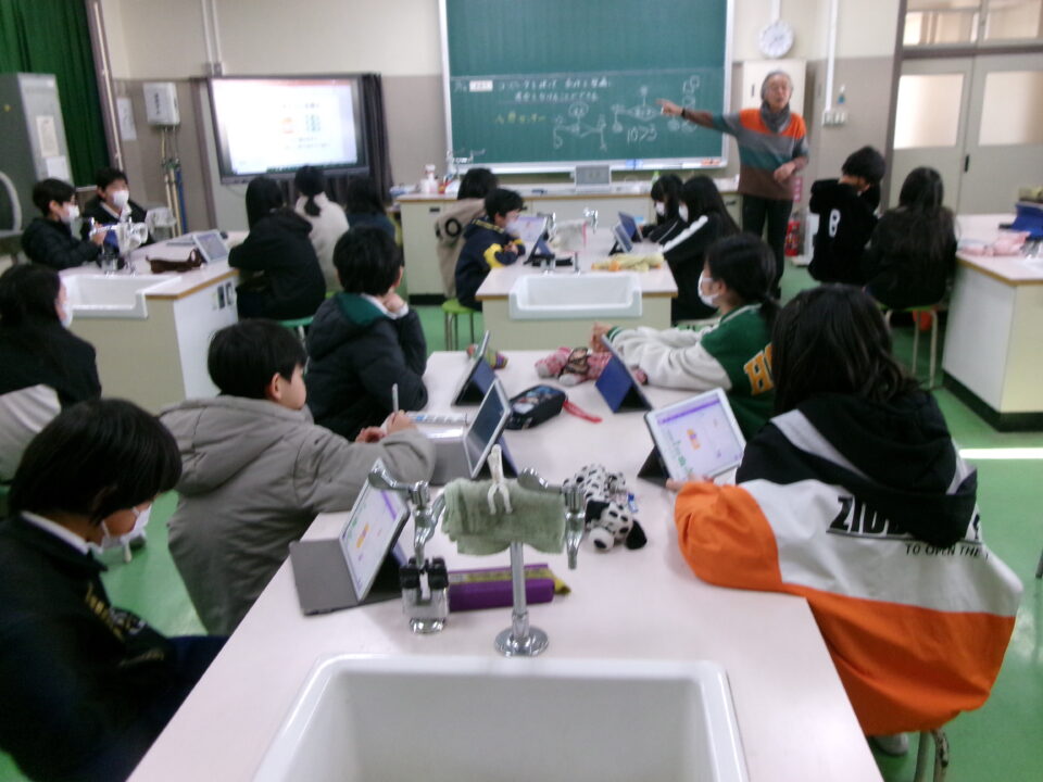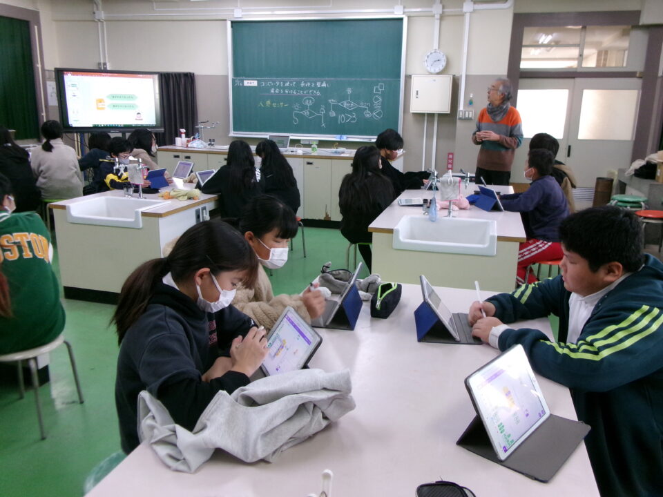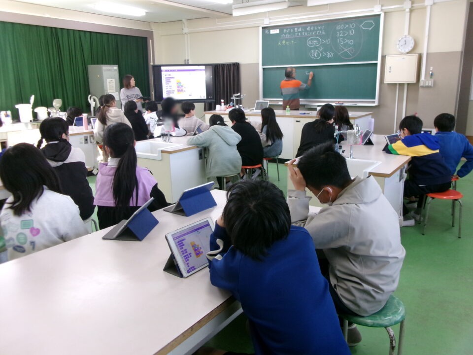 昨日きのう今日きょう三重大学みえだいがく工学博士こうがくはかせまねいて、6年生ねんせい理科りかでプログラミングを活用かつようする学習がくしゅうおこないました。