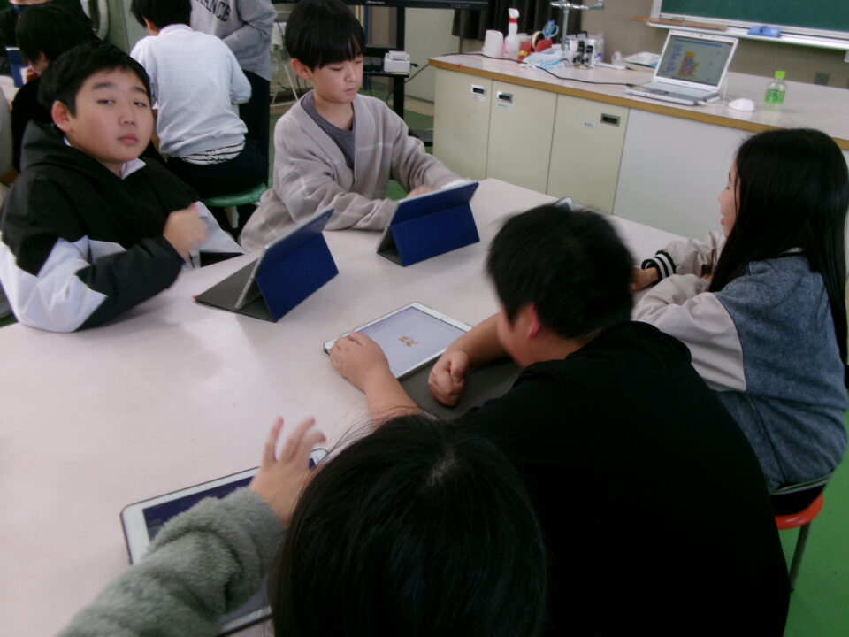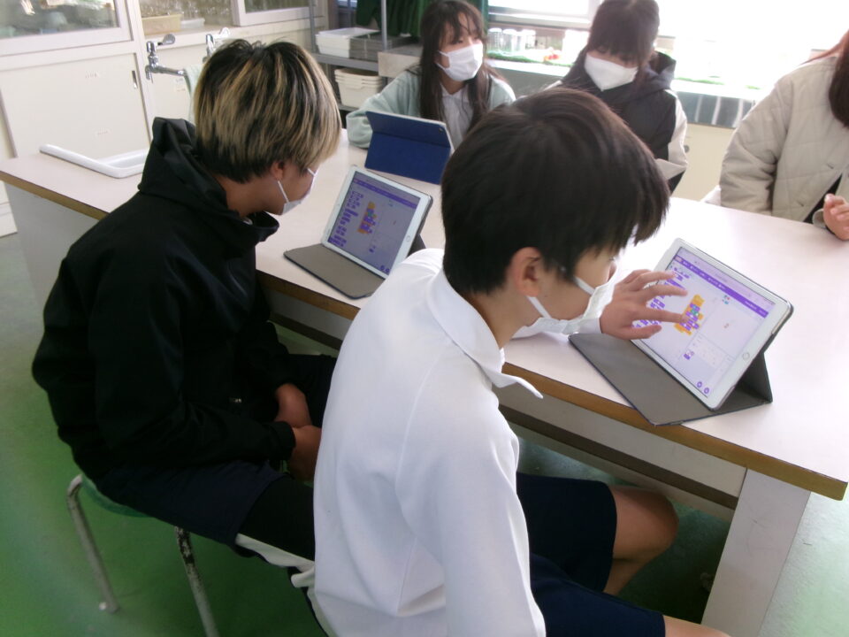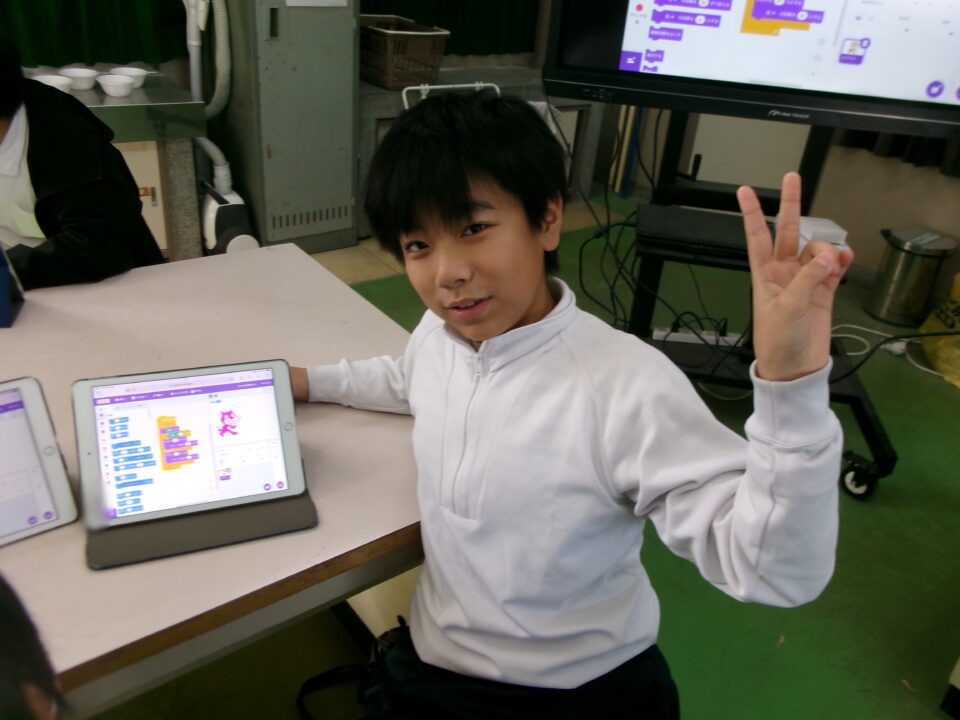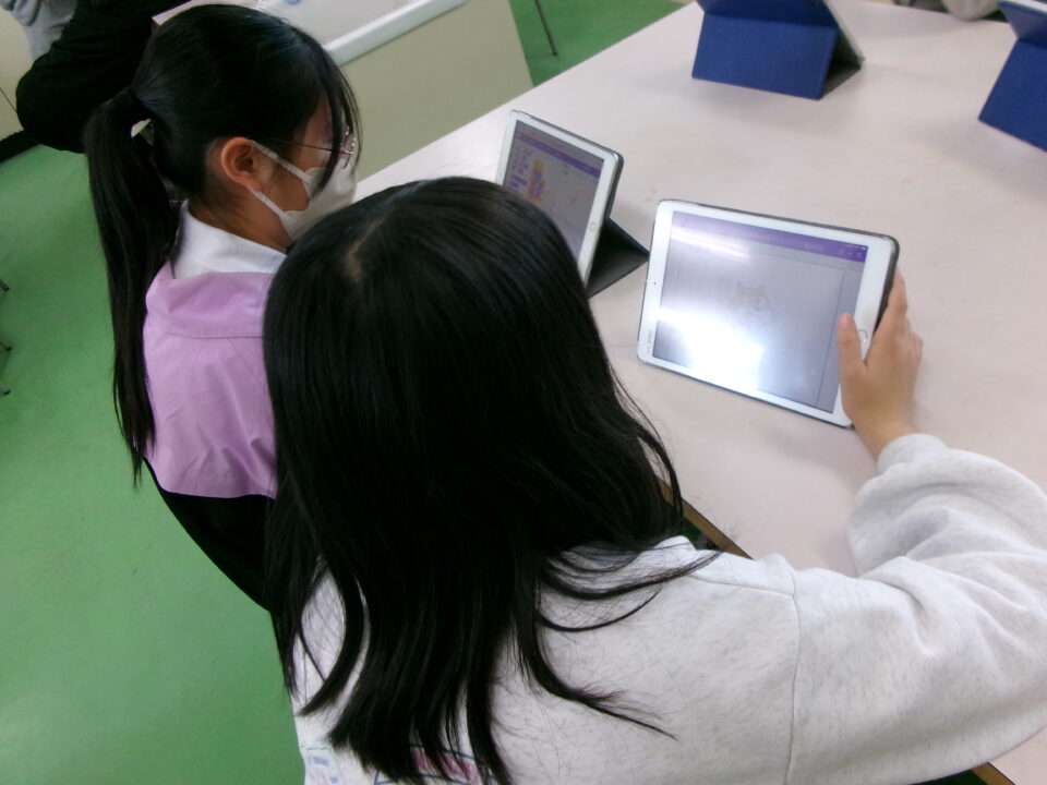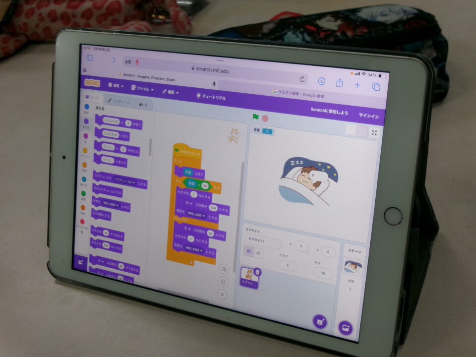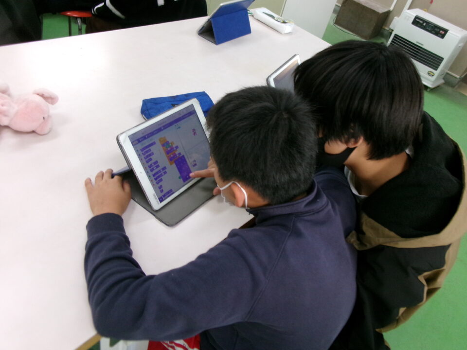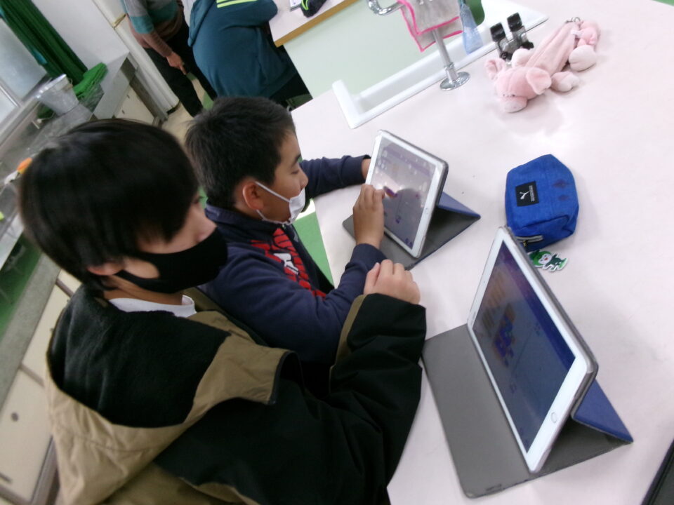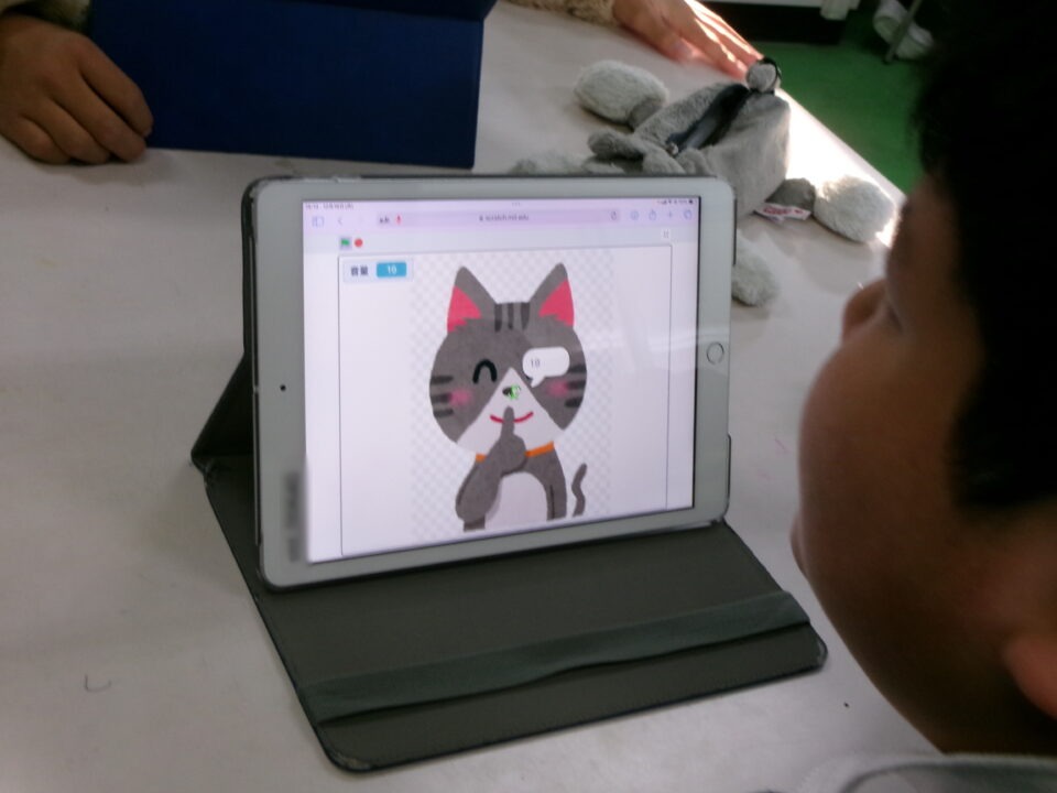 タブレット端末たんまつにあるアプリ「スクラッチ」を使つかいました。
