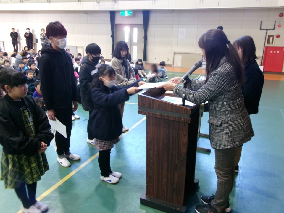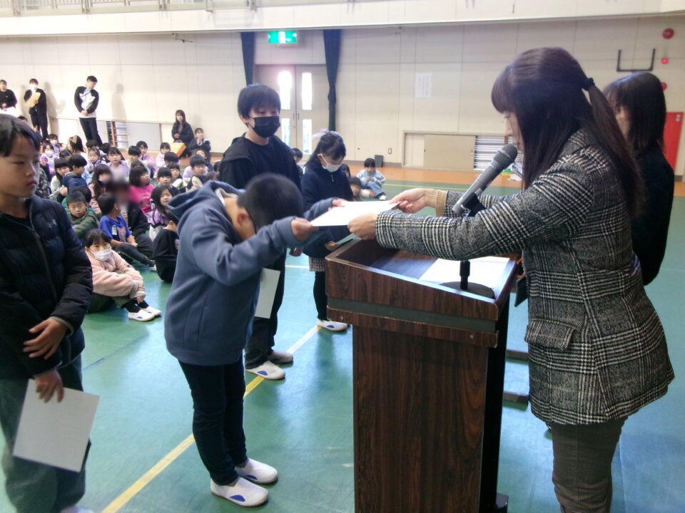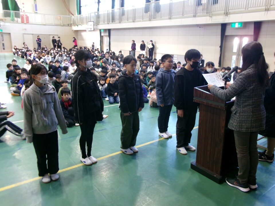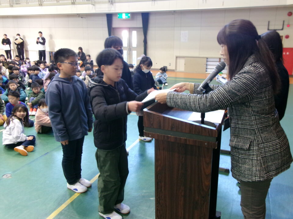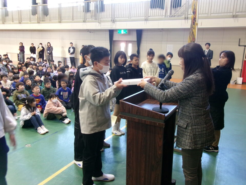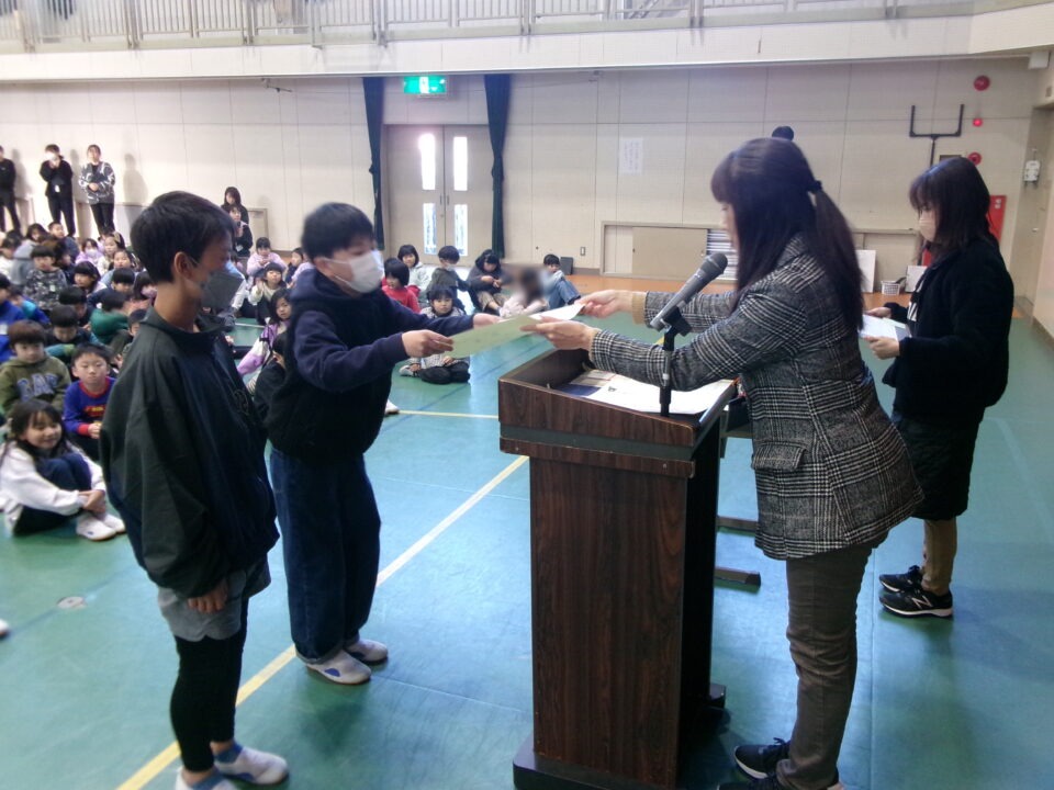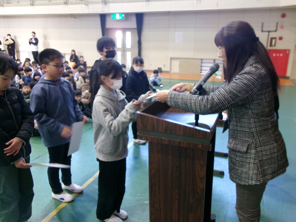 ホーム > 学校活動の様子 伝達表彰(でんたつひょうしょう)をしました。 子(こ)どもたちが夏休(なつやす)み等(とう)に取(と)り組(く)んだコンクールの結果(けっか)がたくさん返(かえ)ってきています。 今日(きょう)は、その表彰(ひょうしょう)をしました。 作品(さくひん)を作(つく)り上(あ)げるのは、たいへんだったと思(おも)いますが、よくがんばりましたね。 シェアする Twitter でシェア はてなブックマークに保存 LINE でシェア Facebook でシェア Pocket に保存 Feedly で購読 関連投稿 学校活動の様子 あいさつ運動 学校活動の様子 ドライフラワーでお出迎(でむか)え 学校活動の様子 避難訓練 学校活動の様子 調理実習(ちょうりじっしゅう) ご飯(はん)とみそ汁(しる)づくり 5-1 学校活動の様子 / コミュニティ・スクール (株(かぶ))オクムラ様(さま)から自転車(じてんしゃ)を寄贈(きぞう)していただきました! 学校活動の様子 6-1 家庭科調理実習(かていかちょうりじっしゅう)CS 前の投稿 冬休(ふゆやす)み前集会(まえしゅうかい)がありました。 次の投稿 松阪市小学校(まつさかししょうがっこう)サッカー大会(たいかい)壮行会(そうこうかい)