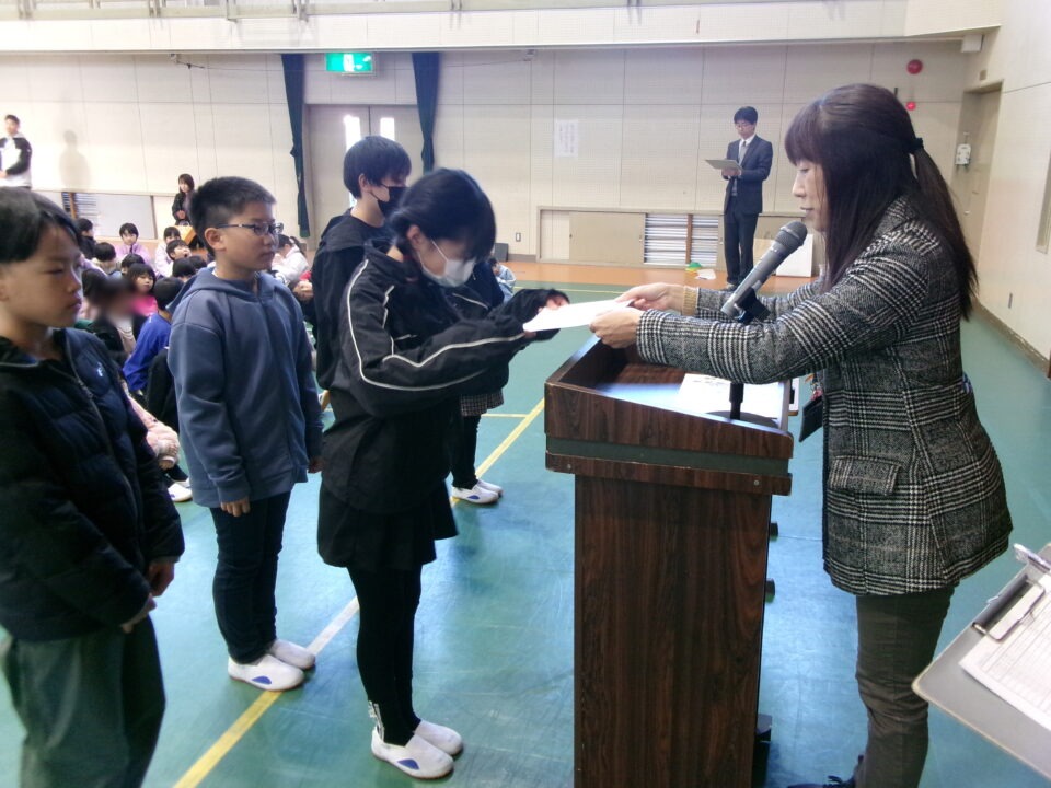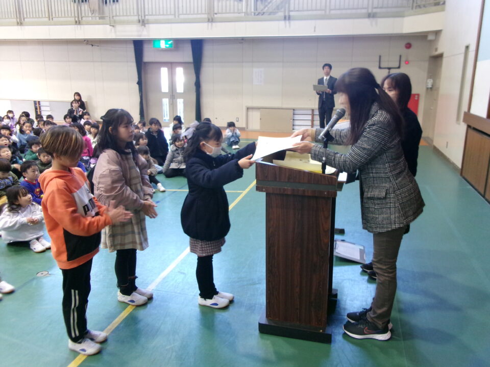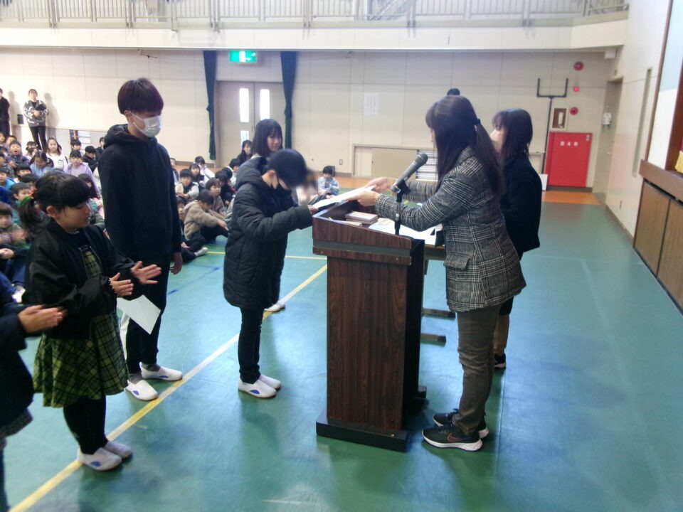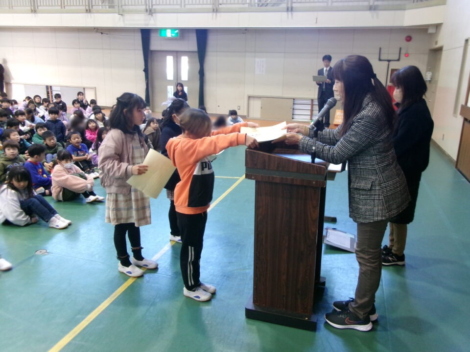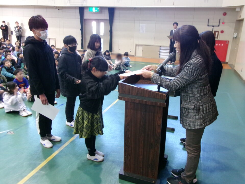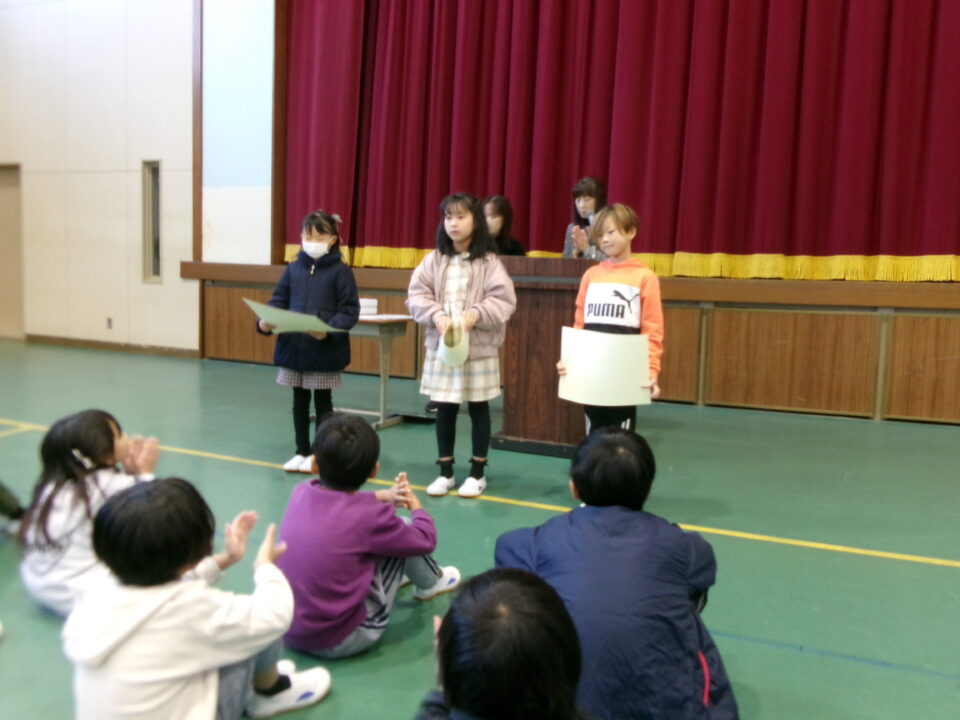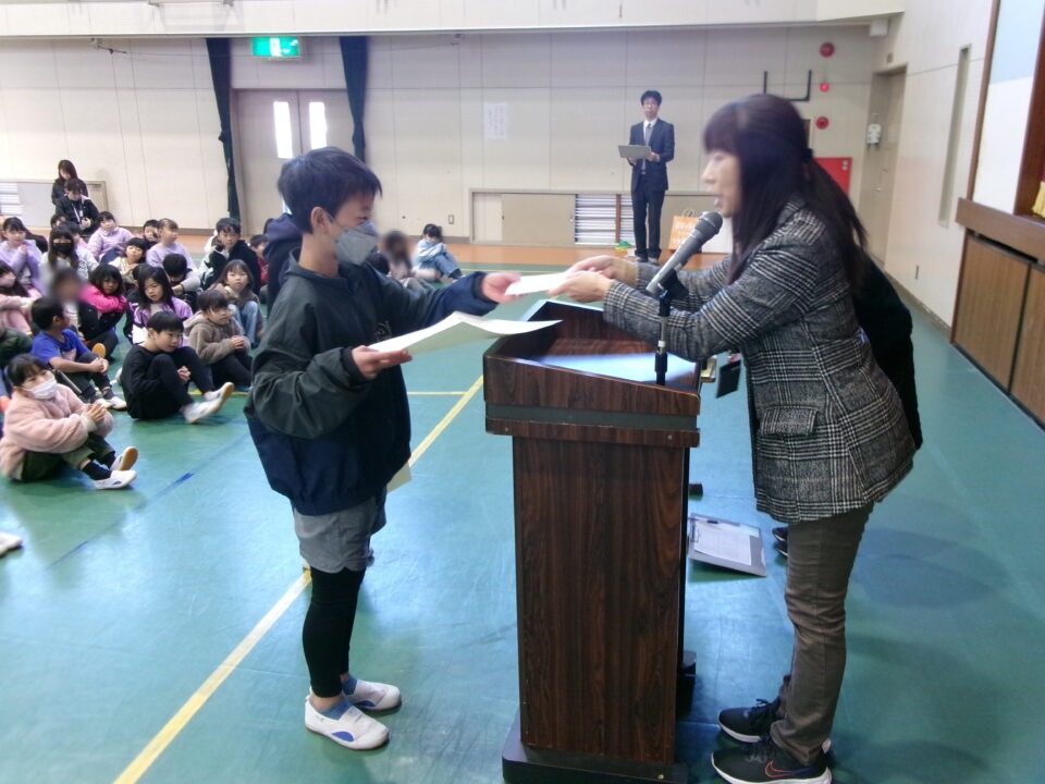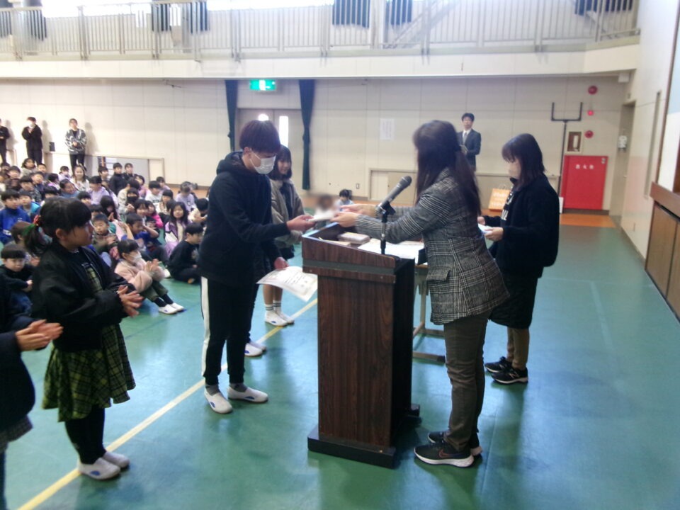 ホーム > 学校活動の様子 伝達表彰(でんたつひょうしょう)をしました。 子(こ)どもたちが夏休(なつやす)み等(とう)に取(と)り組(く)んだコンクールの結果(けっか)がたくさん返(かえ)ってきています。 今日(きょう)は、その表彰(ひょうしょう)をしました。 作品(さくひん)を作(つく)り上(あ)げるのは、たいへんだったと思(おも)いますが、よくがんばりましたね。 シェアする Twitter でシェア はてなブックマークに保存 LINE でシェア Facebook でシェア Pocket に保存 Feedly で購読 関連投稿 学校活動の様子 あいさつ運動 学校活動の様子 ドライフラワーでお出迎(でむか)え 学校活動の様子 避難訓練 学校活動の様子 調理実習(ちょうりじっしゅう) ご飯(はん)とみそ汁(しる)づくり 5-1 学校活動の様子 / コミュニティ・スクール (株(かぶ))オクムラ様(さま)から自転車(じてんしゃ)を寄贈(きぞう)していただきました! 学校活動の様子 6-1 家庭科調理実習(かていかちょうりじっしゅう)CS 前の投稿 冬休(ふゆやす)み前集会(まえしゅうかい)がありました。 次の投稿 松阪市小学校(まつさかししょうがっこう)サッカー大会(たいかい)壮行会(そうこうかい)