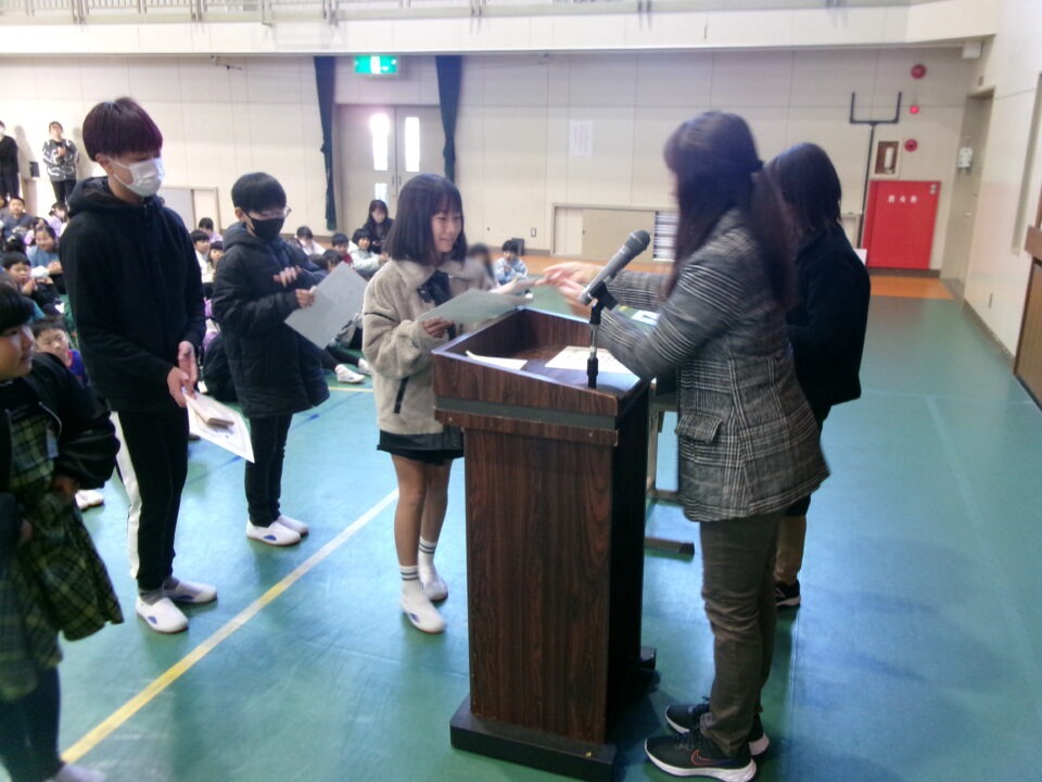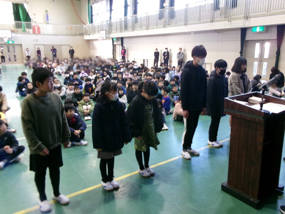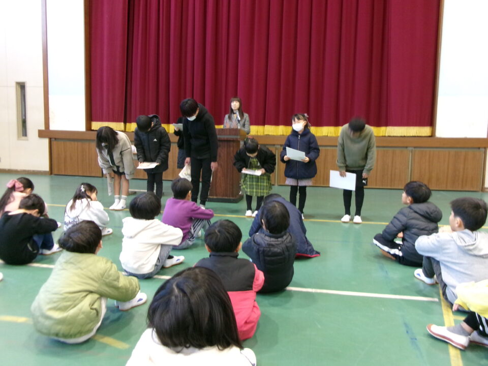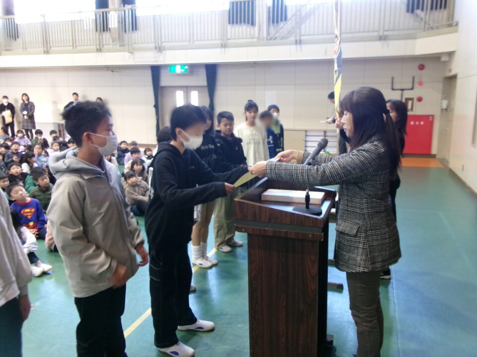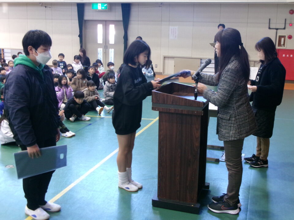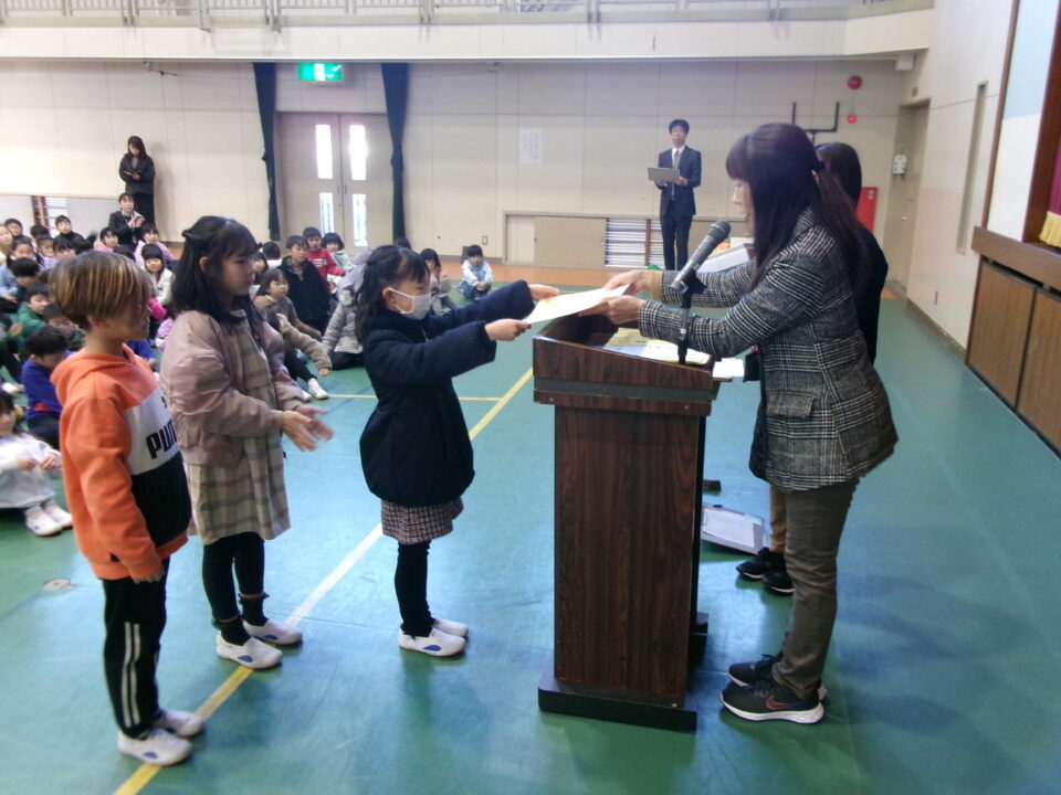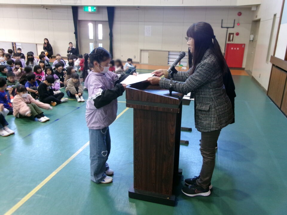 ホーム > 学校活動の様子 伝達表彰(でんたつひょうしょう)をしました。 子(こ)どもたちが夏休(なつやす)み等(とう)に取(と)り組(く)んだコンクールの結果(けっか)がたくさん返(かえ)ってきています。 今日(きょう)は、その表彰(ひょうしょう)をしました。 作品(さくひん)を作(つく)り上(あ)げるのは、たいへんだったと思(おも)いますが、よくがんばりましたね。 シェアする Twitter でシェア はてなブックマークに保存 LINE でシェア Facebook でシェア Pocket に保存 Feedly で購読 関連投稿 学校活動の様子 あいさつ運動 学校活動の様子 ドライフラワーでお出迎(でむか)え 学校活動の様子 避難訓練 学校活動の様子 調理実習(ちょうりじっしゅう) ご飯(はん)とみそ汁(しる)づくり 5-1 学校活動の様子 / コミュニティ・スクール (株(かぶ))オクムラ様(さま)から自転車(じてんしゃ)を寄贈(きぞう)していただきました! 学校活動の様子 6-1 家庭科調理実習(かていかちょうりじっしゅう)CS 前の投稿 冬休(ふゆやす)み前集会(まえしゅうかい)がありました。 次の投稿 松阪市小学校(まつさかししょうがっこう)サッカー大会(たいかい)壮行会(そうこうかい)