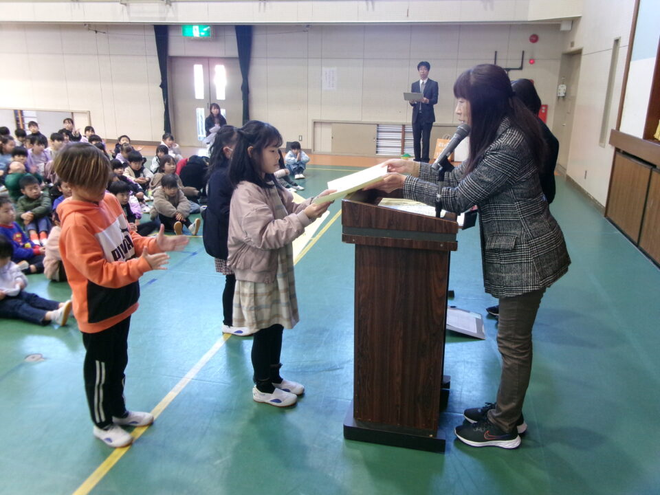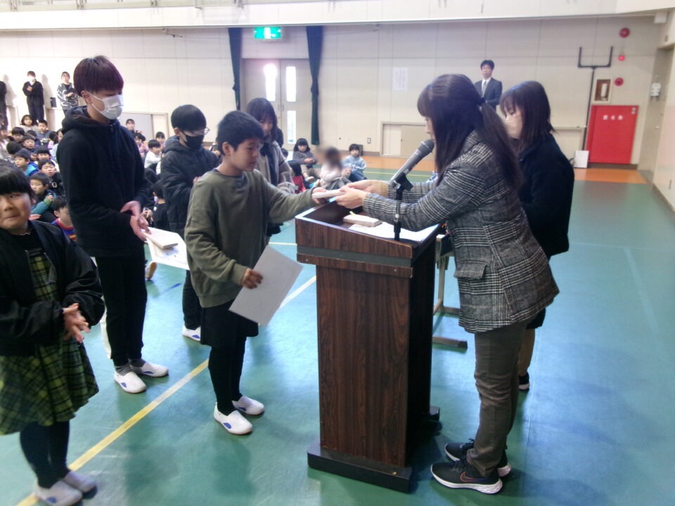 ホーム > 学校活動の様子 伝達表彰(でんたつひょうしょう)をしました。 子(こ)どもたちが夏休(なつやす)み等(とう)に取(と)り組(く)んだコンクールの結果(けっか)がたくさん返(かえ)ってきています。 今日(きょう)は、その表彰(ひょうしょう)をしました。 作品(さくひん)を作(つく)り上(あ)げるのは、たいへんだったと思(おも)いますが、よくがんばりましたね。 シェアする Twitter でシェア はてなブックマークに保存 LINE でシェア Facebook でシェア Pocket に保存 Feedly で購読 関連投稿 学校活動の様子 一年間(いちねんかん)の締(し)めくくり~修了式(しゅうりょうしき)~ 学校活動の様子 楽(たの)しかった運動会(うんどうかい)!!№1 学校活動の様子 6年生(ねんせい) 総合探究学習(そうごうたんきゅうがくしゅう) 発表会(はっぴょうかい) 学校活動の様子 家庭科調理実習(かていかちょうりじっしゅう)(ご飯(はん)、みそ汁(しる)) 5-1 学校活動の様子 修学旅行1日目 学校活動の様子 給食(きゅうしょく)の様子(ようす)1年生(ねんせい) 前の投稿 冬休(ふゆやす)み前集会(まえしゅうかい)がありました。 次の投稿 松阪市小学校(まつさかししょうがっこう)サッカー大会(たいかい)壮行会(そうこうかい)