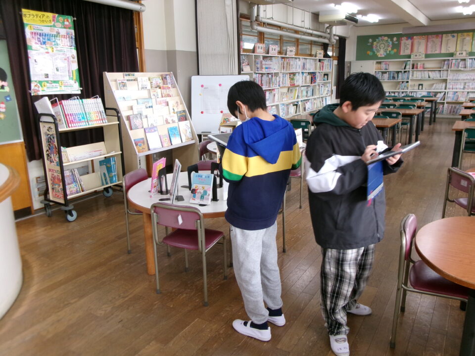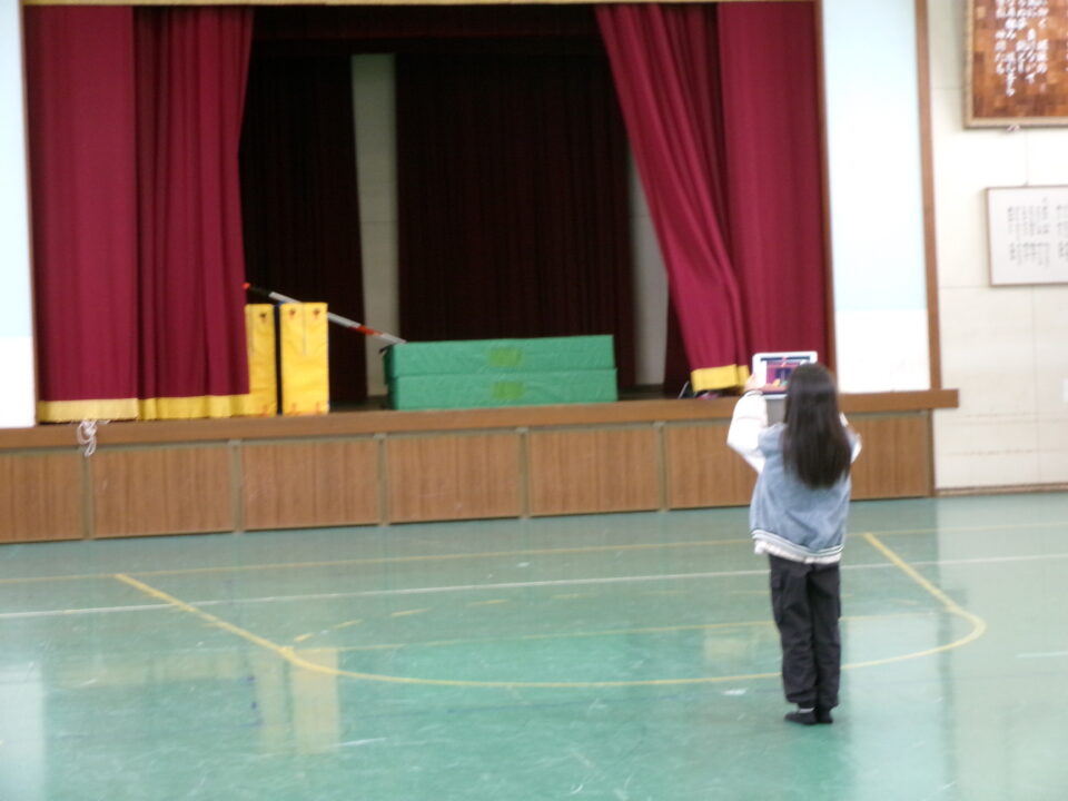 6-2では、ムービーコンテストに応募する作品づくりのため、校舎内の学校の自慢の場所を探し《ある》歩きました。
