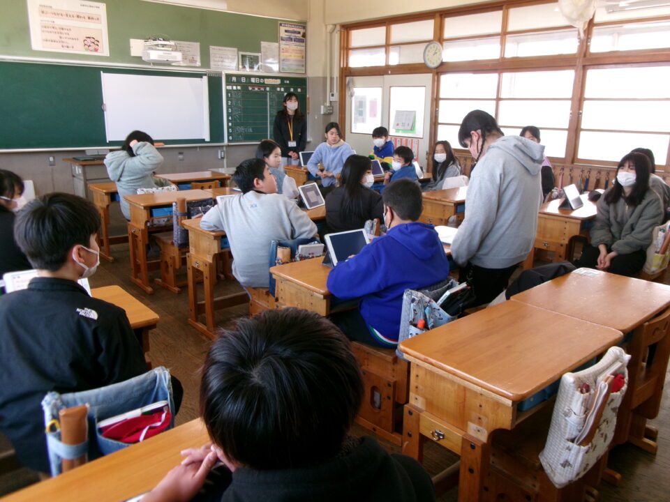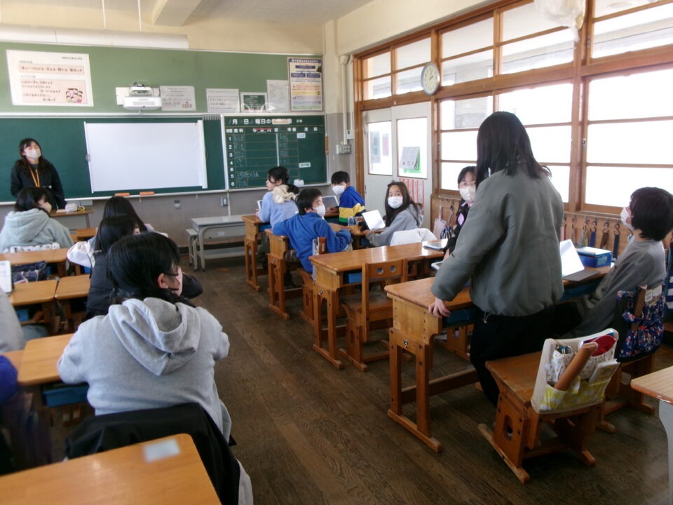 教室きょうしつもどり、ふりかえりをしました。6年生ねんせいでは自分じぶん反省はんせいをしてから、かまあいトークをすることでグループで共有きょうゆうをし、そのあと全体ぜんたい交流こうりゅうをしていました。