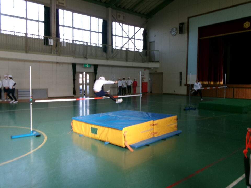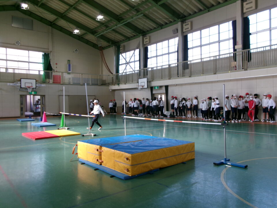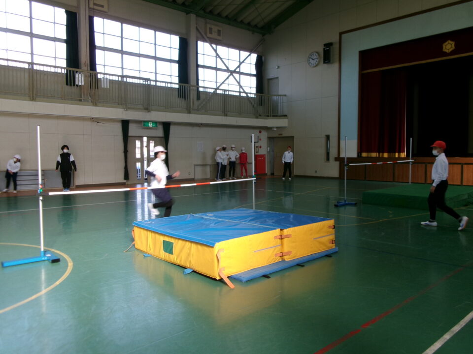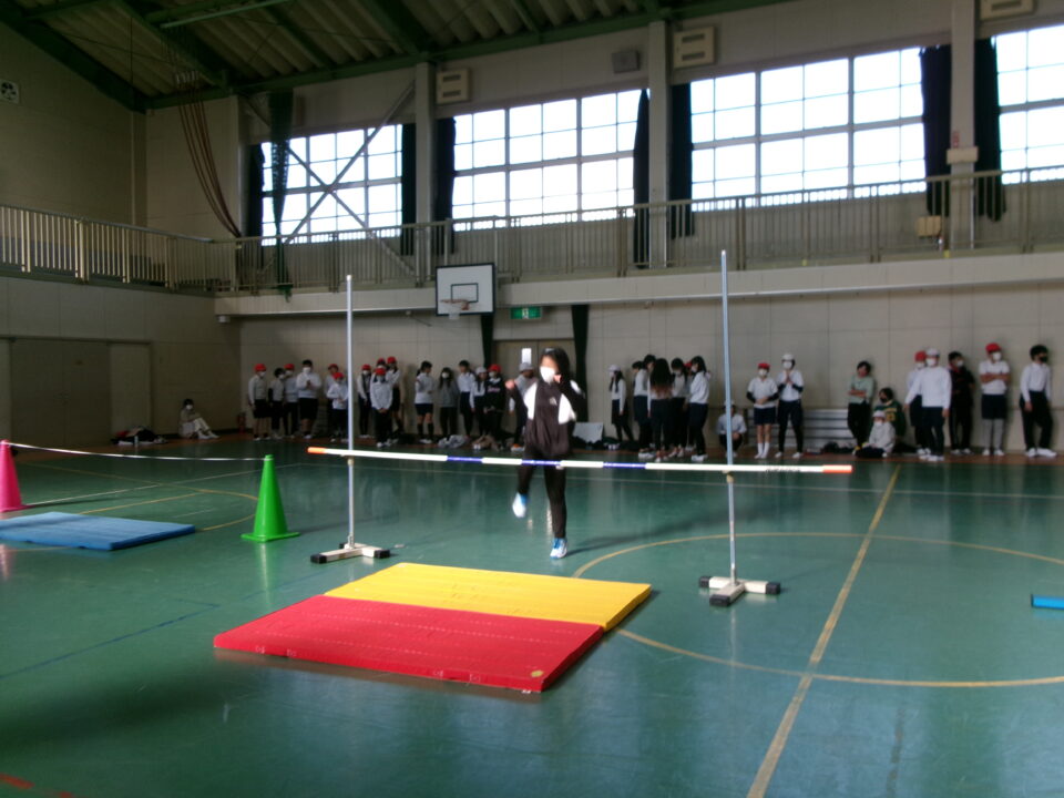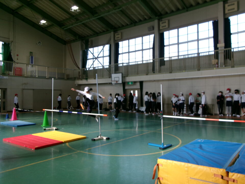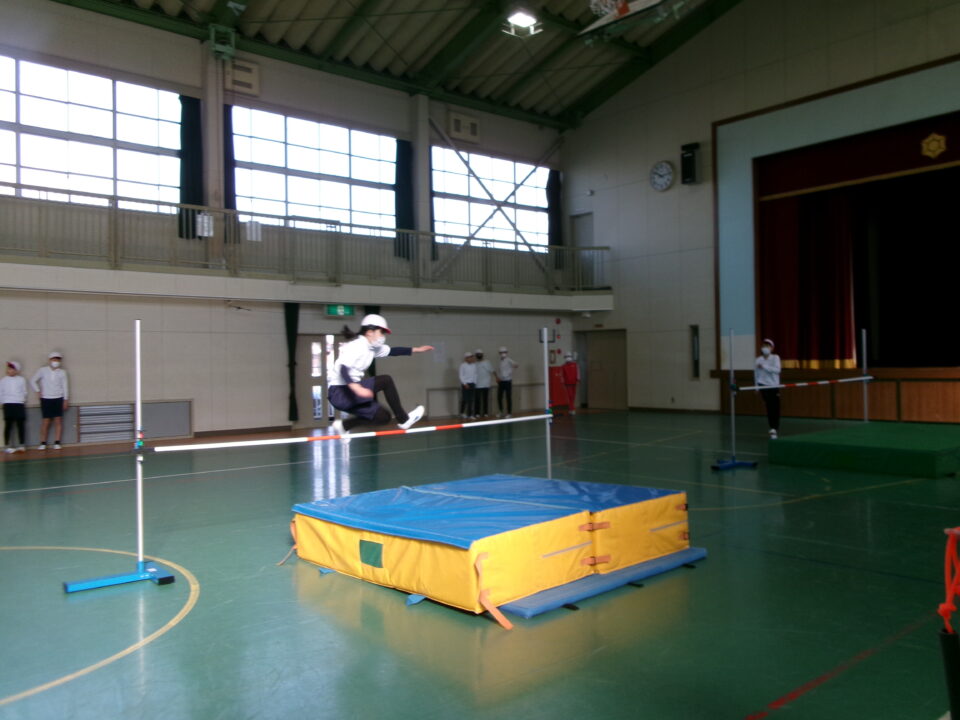 6年生では、体育館で高跳びの学習が始まりました。