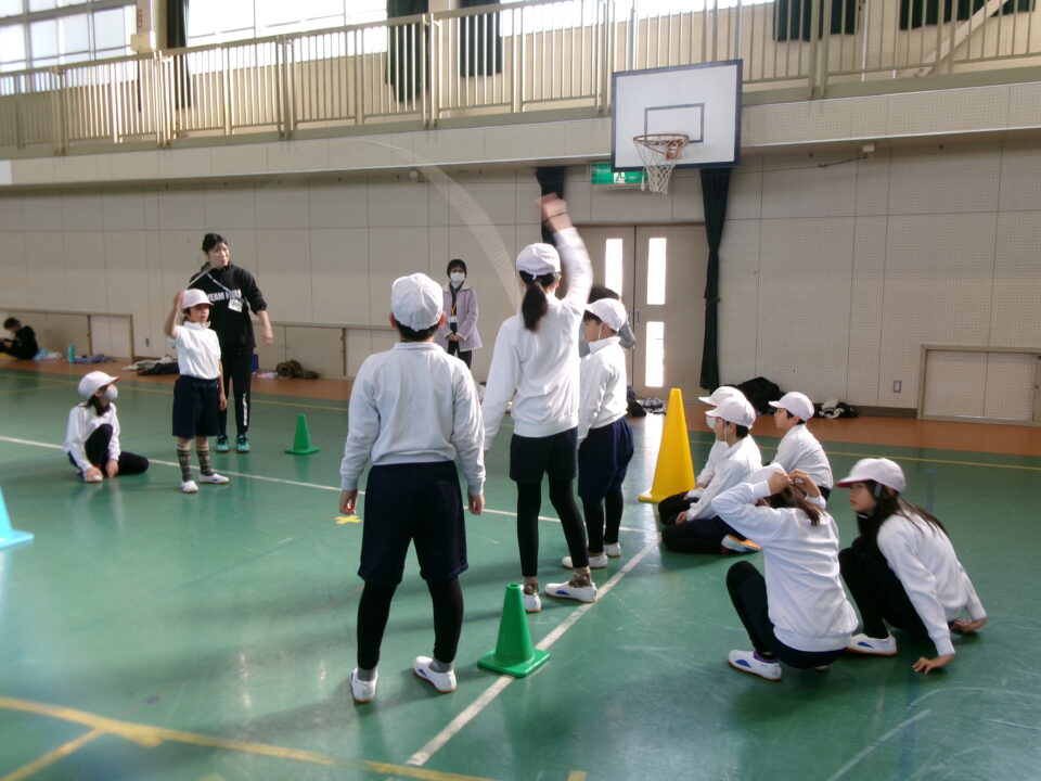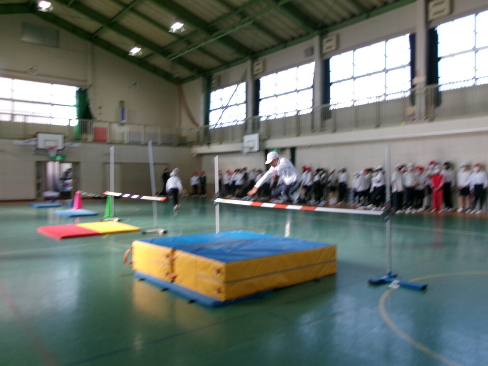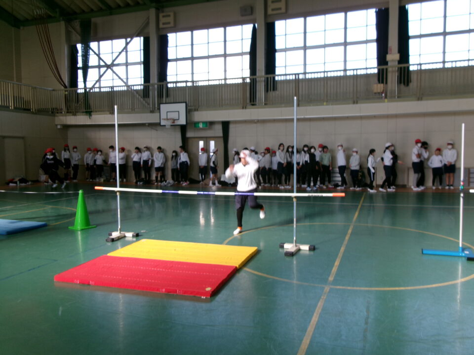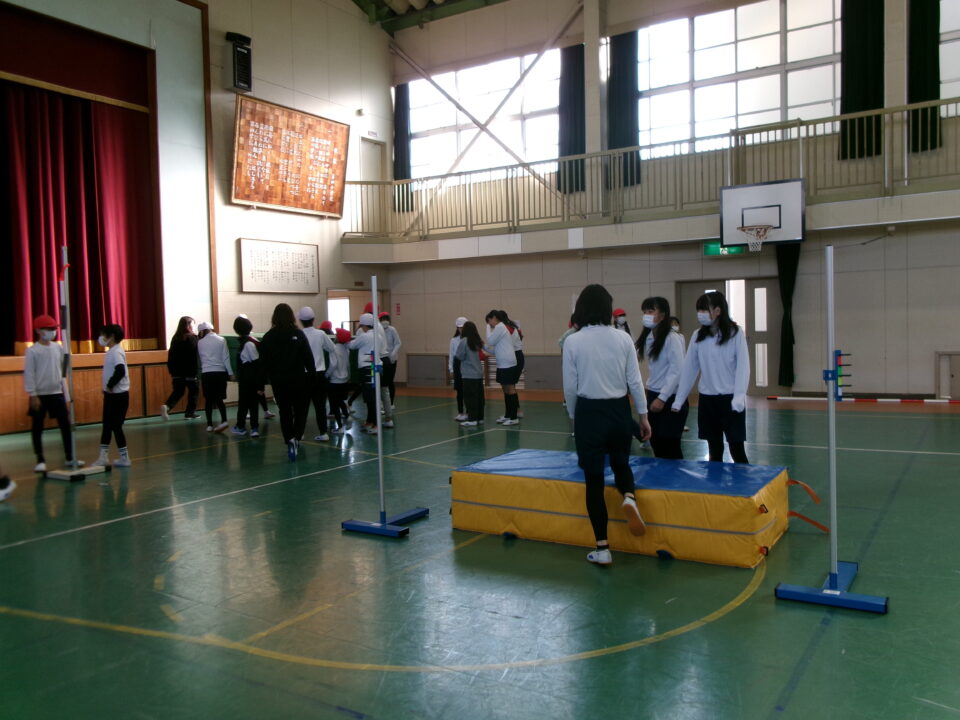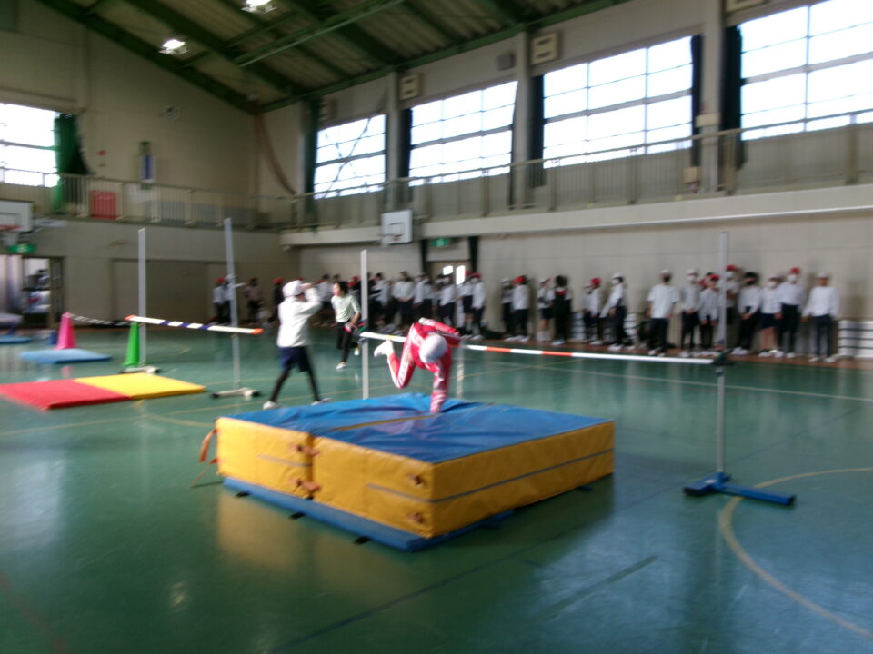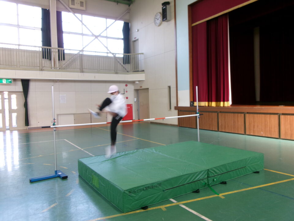 6年生では、体育館で高跳びの学習が始まりました。