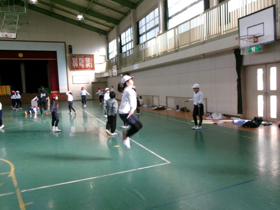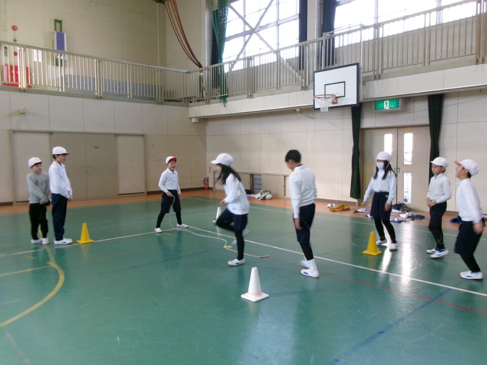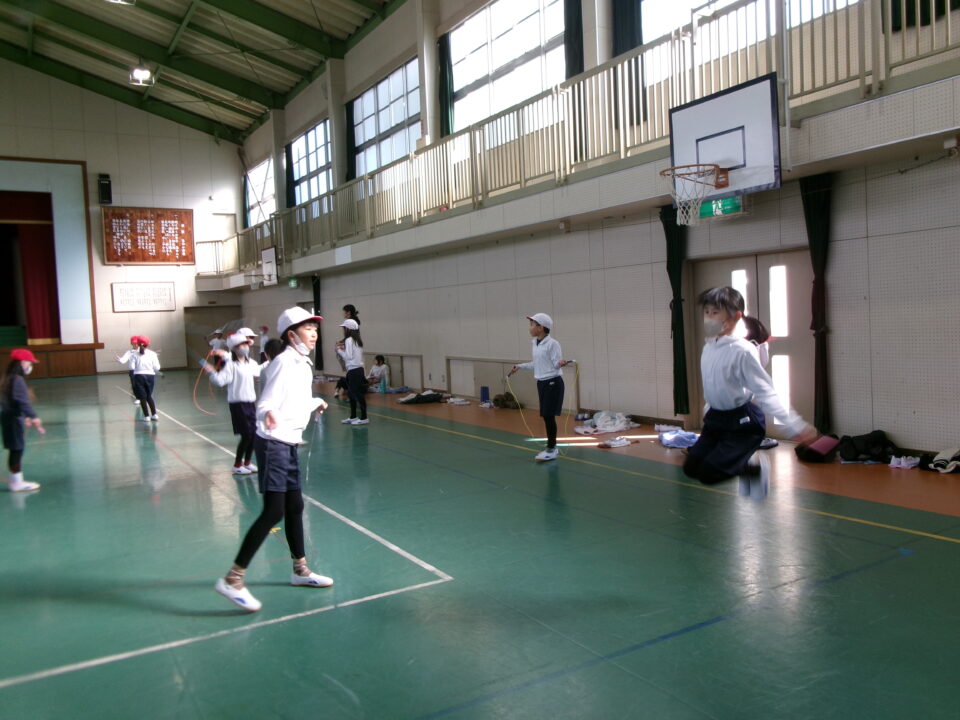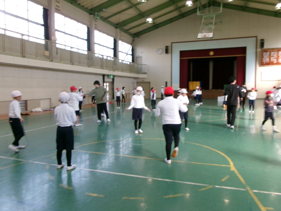短縄では、前跳び連続や後ろ跳び連続をがんばりました。良い運動になりますね。
