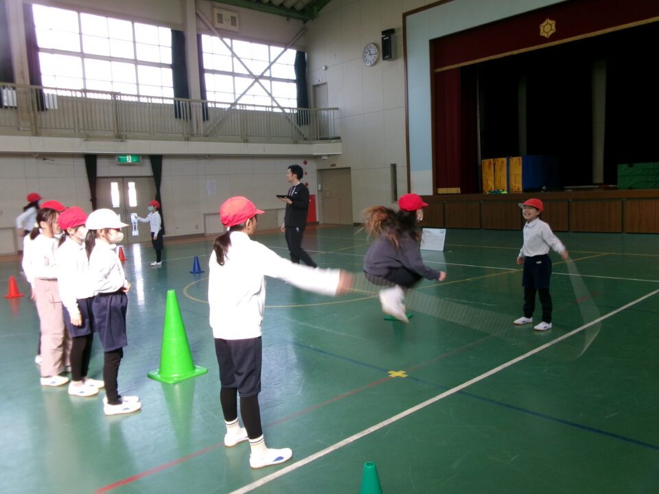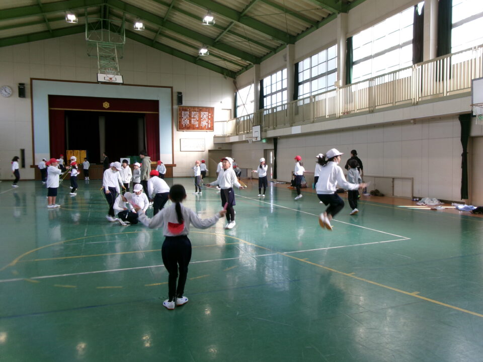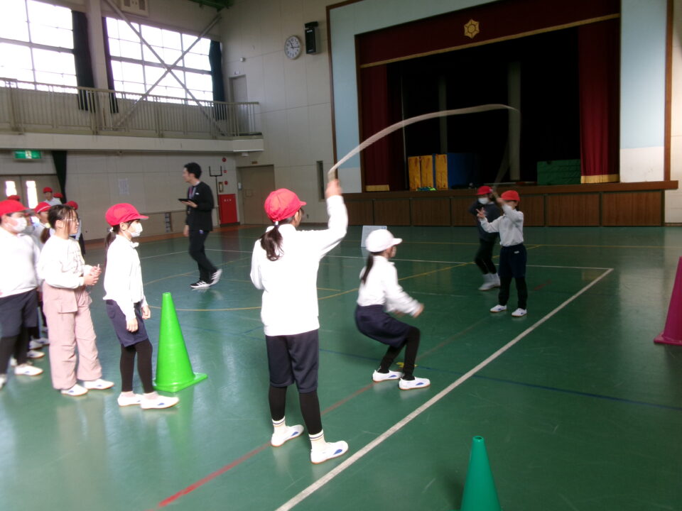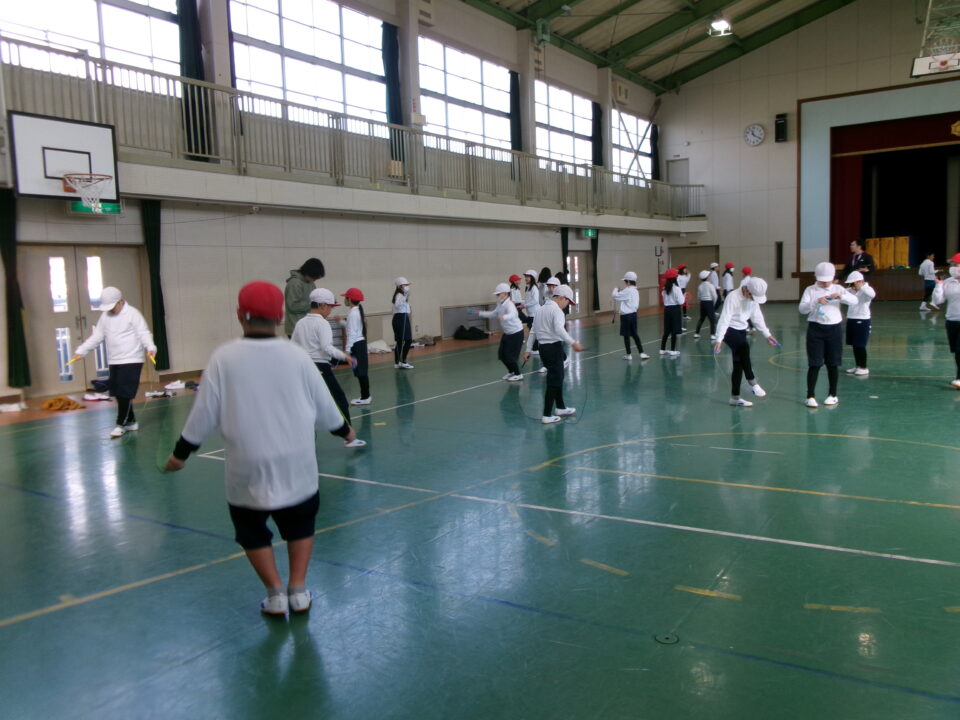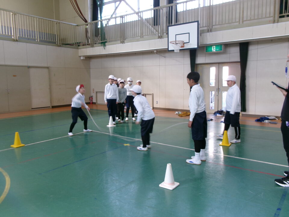 短縄では、前跳び連続や後ろ跳び連続をがんばりました。良い運動になりますね。