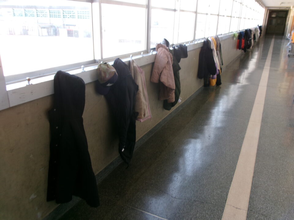 登下校の道中は寒いので、ダウンジャケットやジャンバーを着ていますが、部屋の中では上着を脱いで体温調節をするように声をかけています。