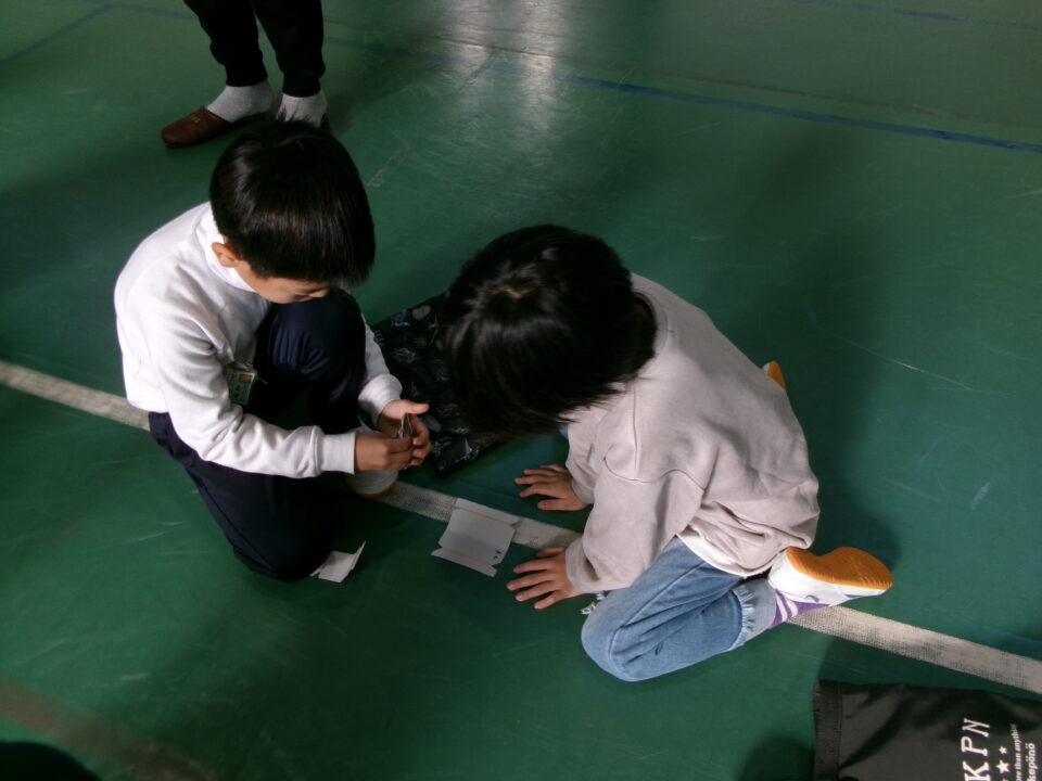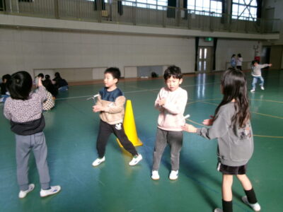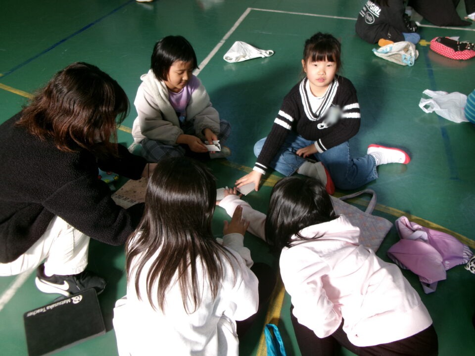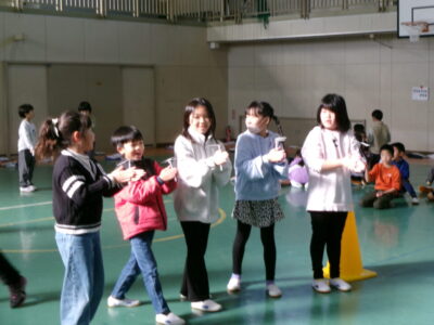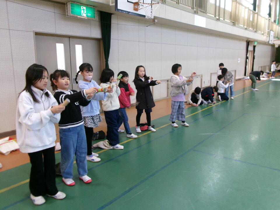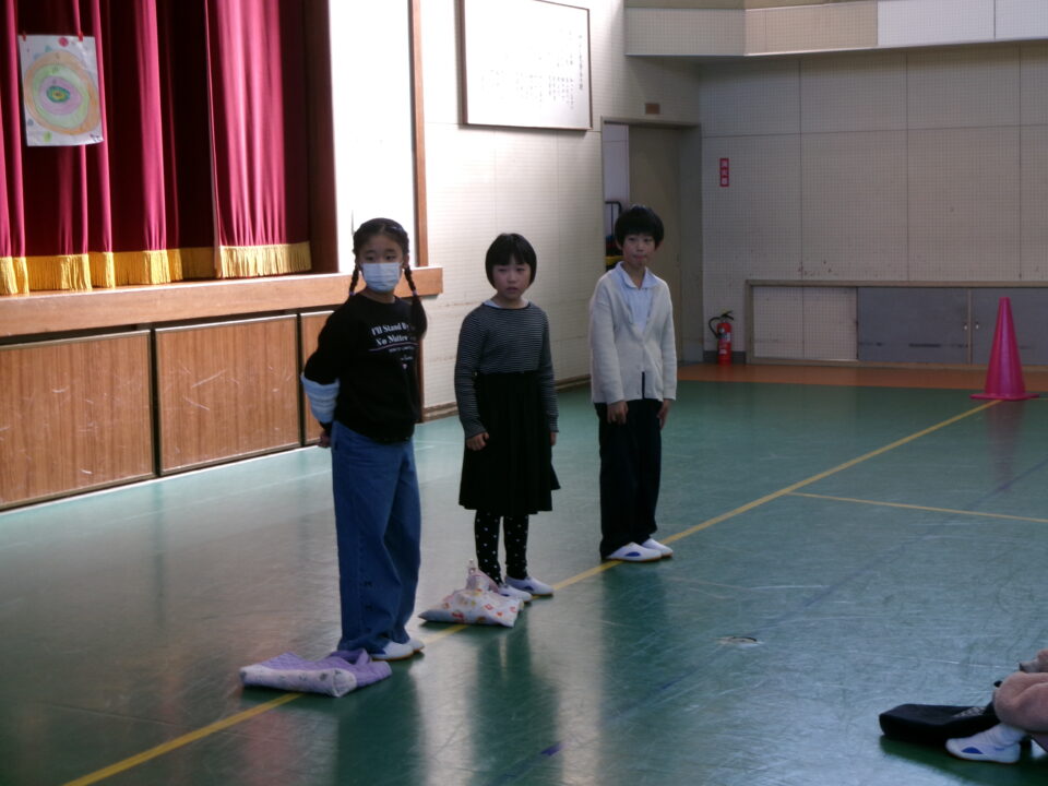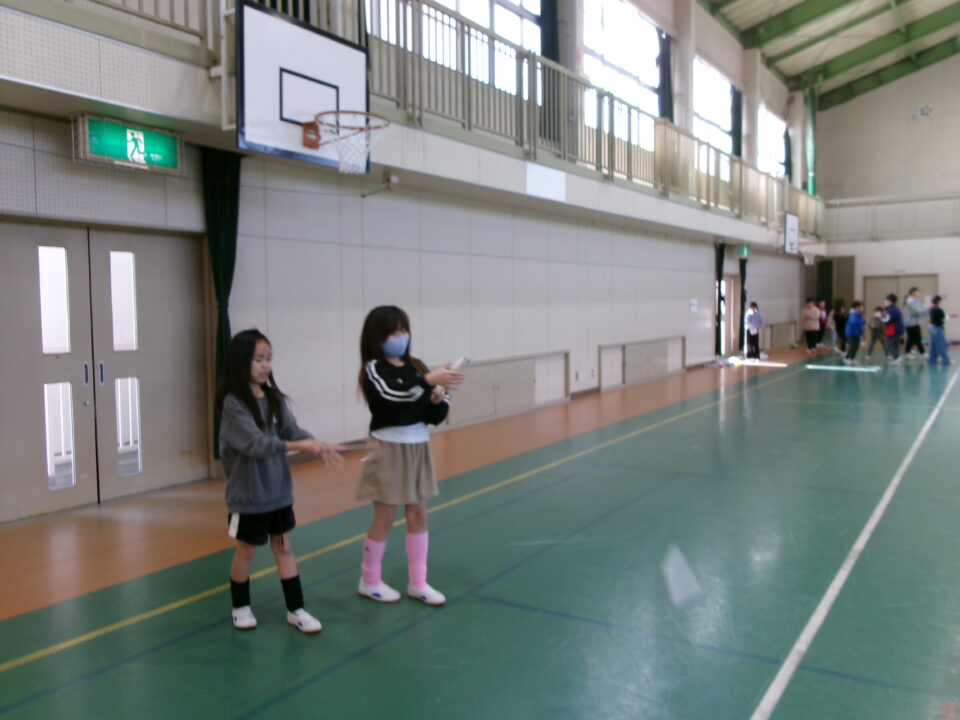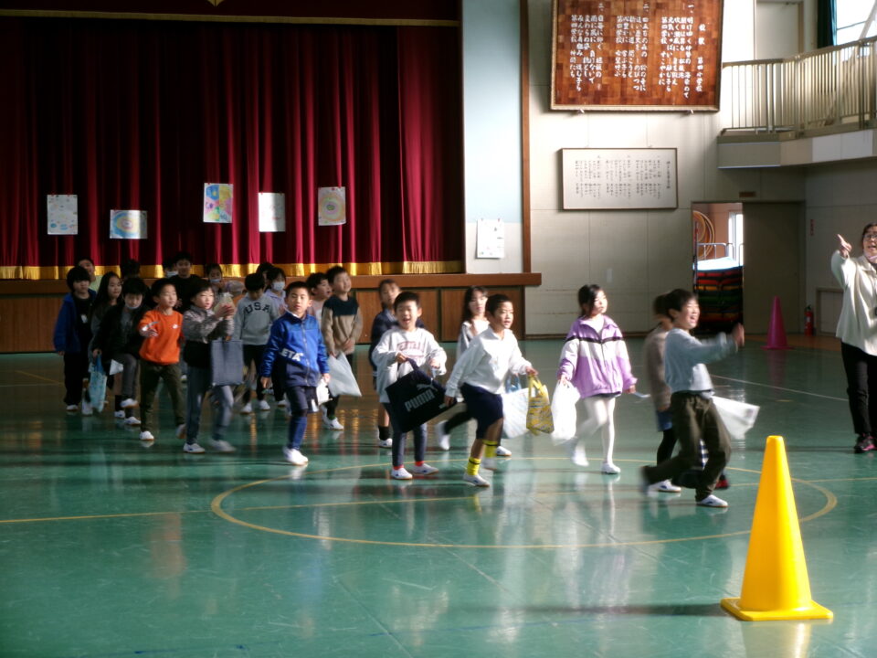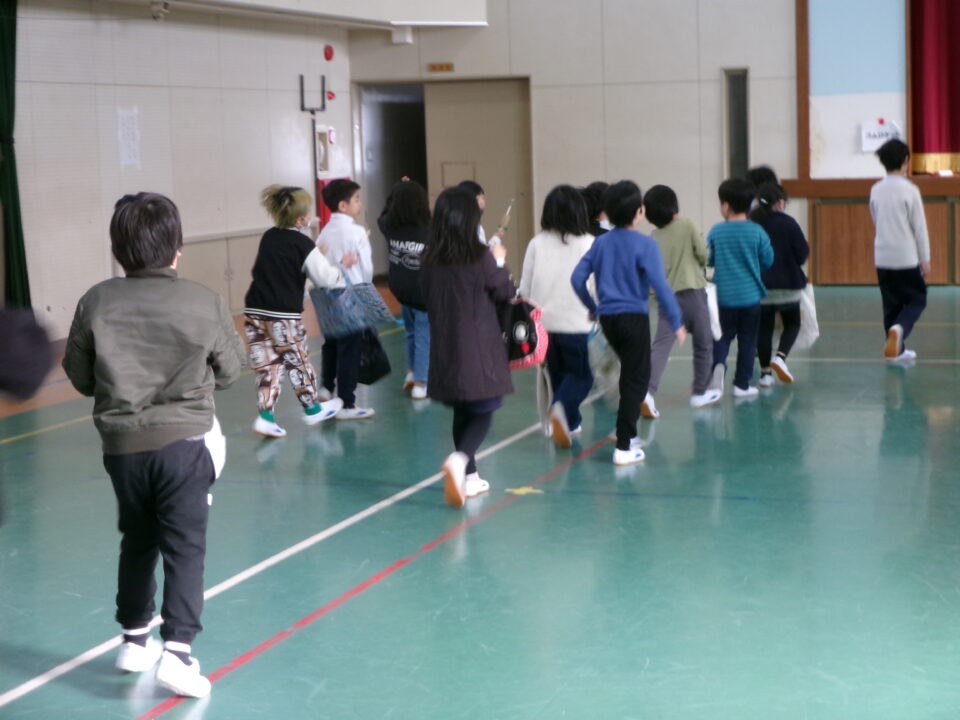 先生の笛の合図で交代です。学級委員さんが上手に合図して並んで歩いて移動していました。