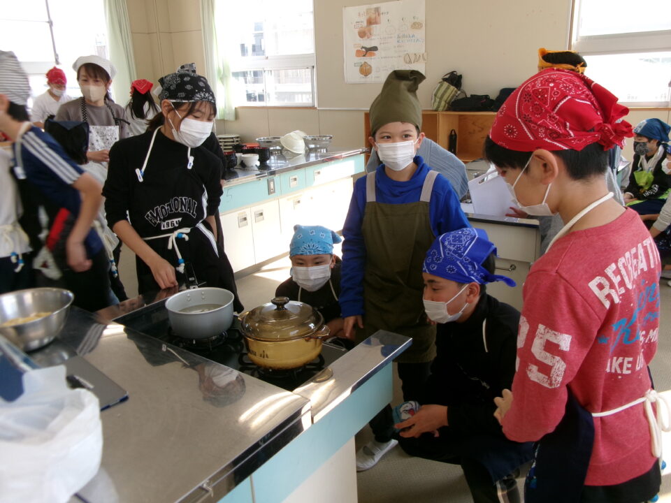 ご飯もお家では炊飯器が主流ですが、実習では鍋で炊きます。みそ汁は、世界に誇れる和食の中の1つですので、ぜひこれからもお家で、お家の人と相談して作ってみるといいですね。
