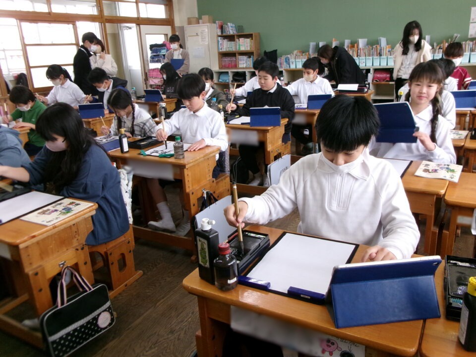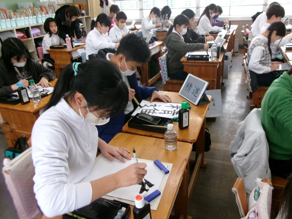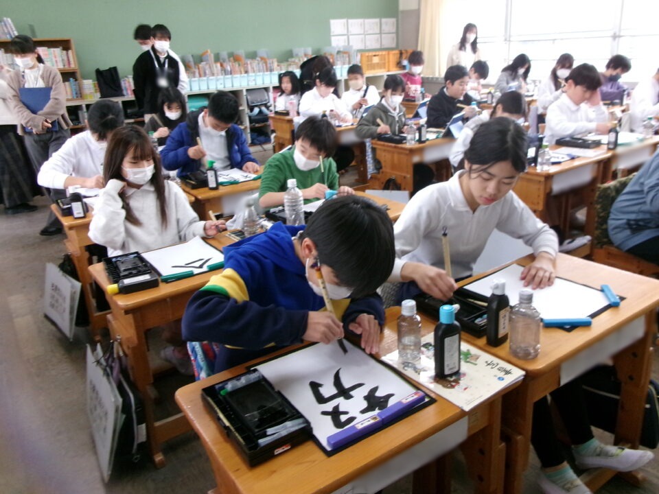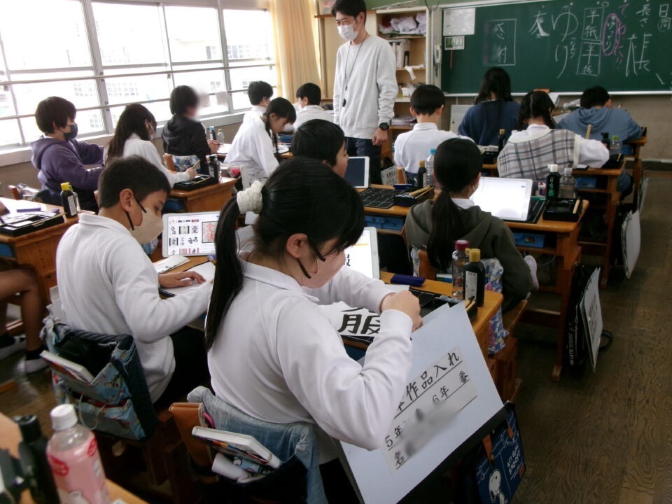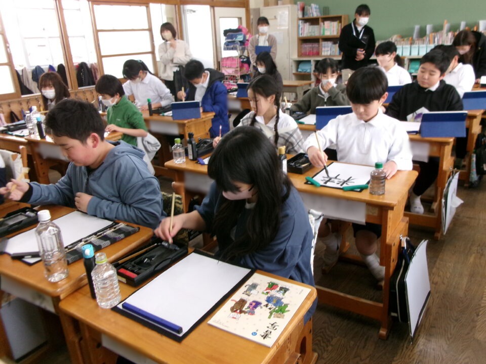 6-2では、書写の時間に書初めをしています。
