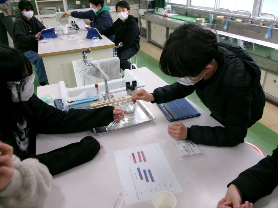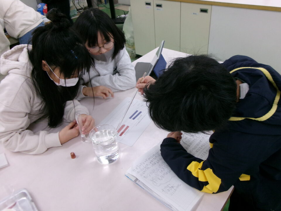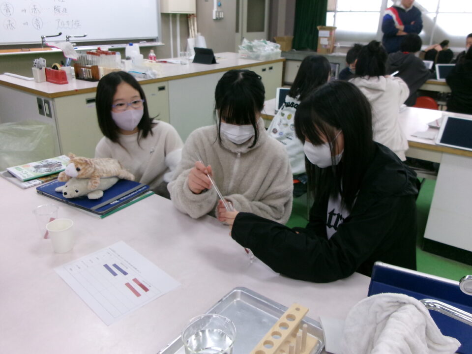 いろいろな水溶液が酸性なのか、中性なのか、アルカリ性なのかリトマス紙を使って性質を調べてみました。