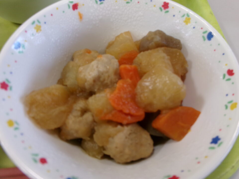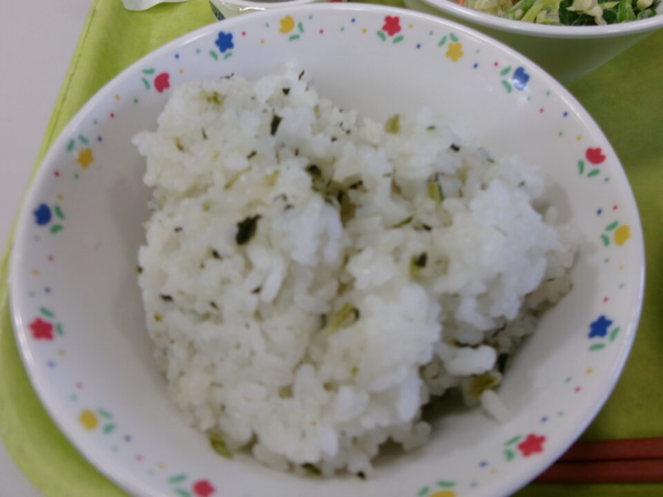今日の給食は、菜飯、牛乳、嬉野大根とりつくねの煮物、なばなのマヨネーズ風サラダ、松阪茶豆乳プリンでした。