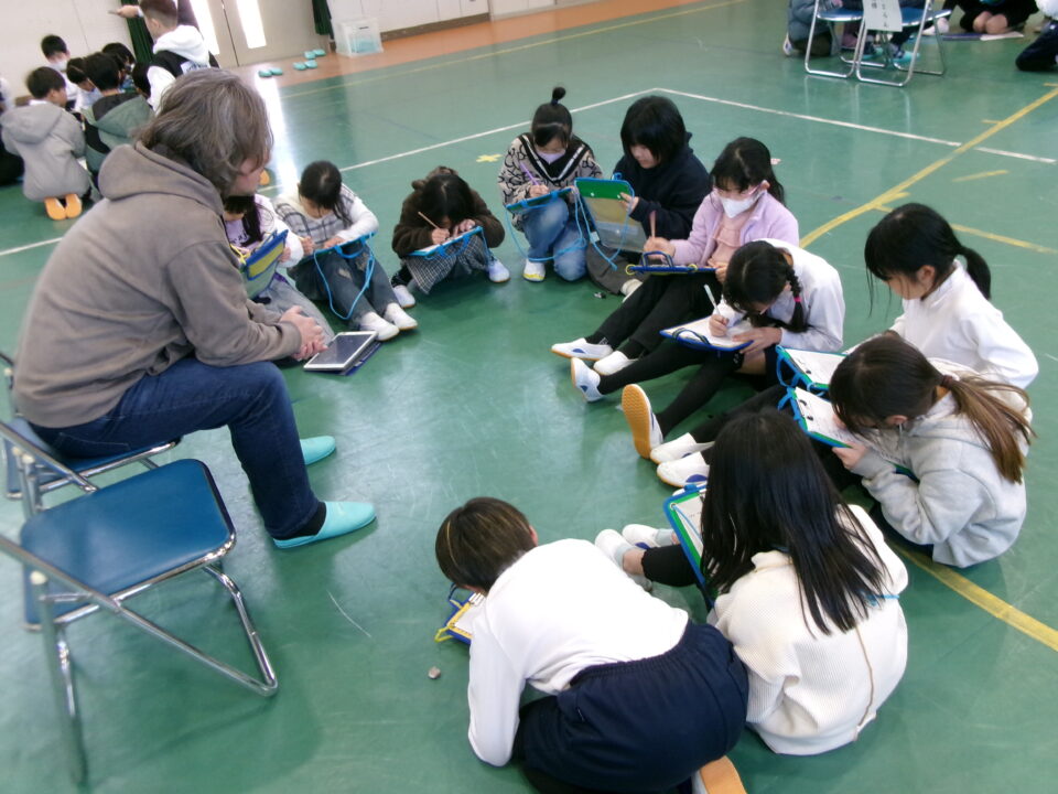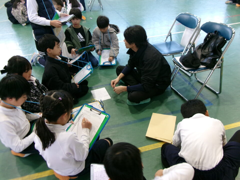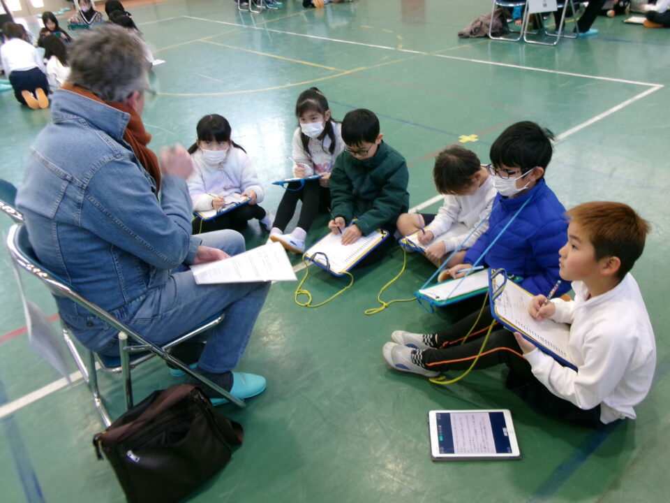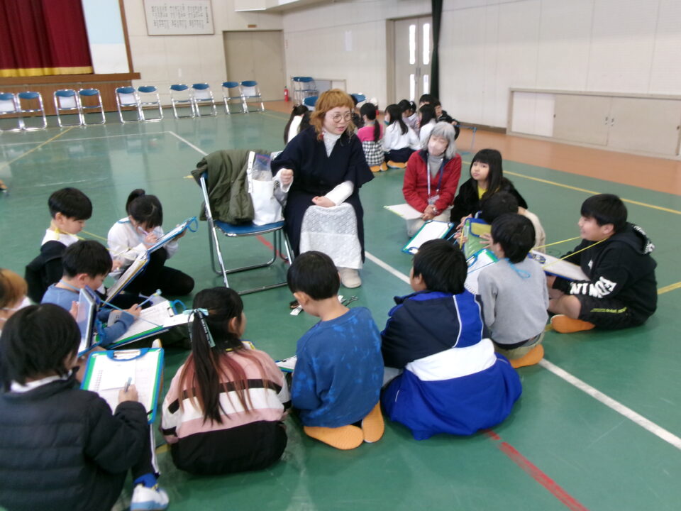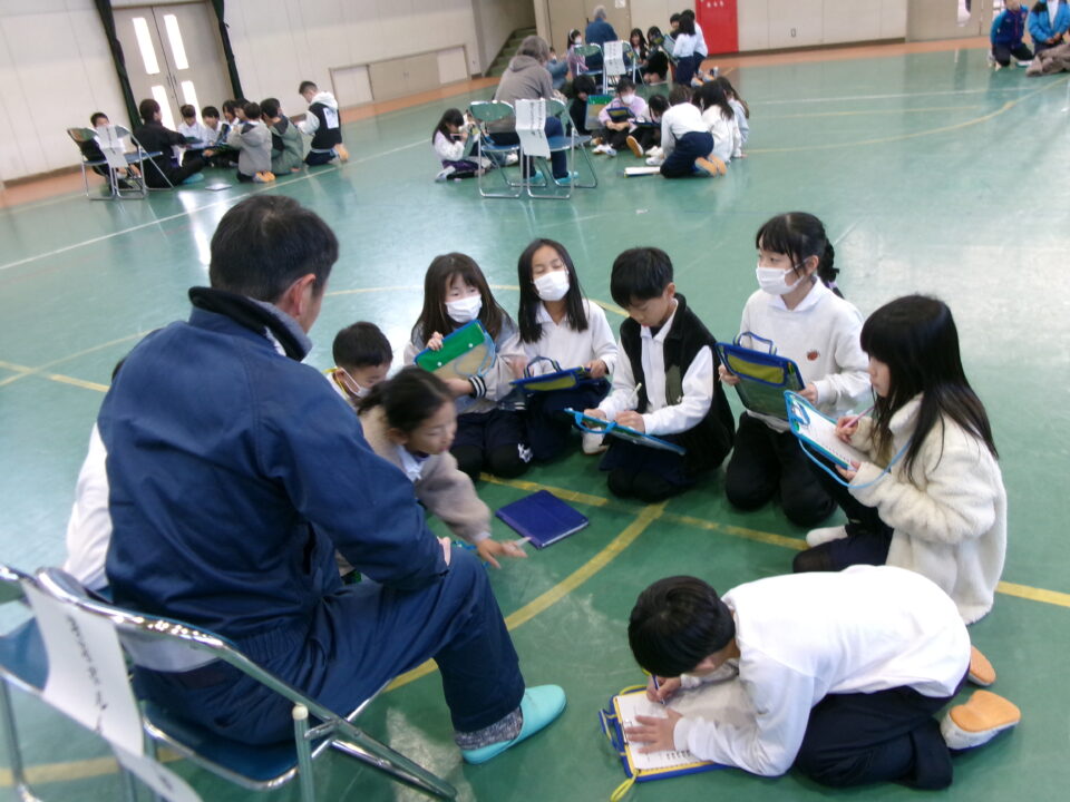 3年生では、総合的な学習の時間の中の探究学習では、地域に焦点を当てて、第四小学校区のお店や会社について疑問を持ち、経営されたり、活躍されたりしている方をお招きして質問に答えたり、お話を聞かせていただいたりしました。