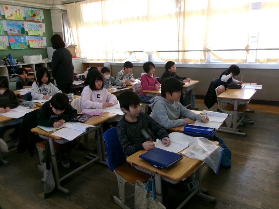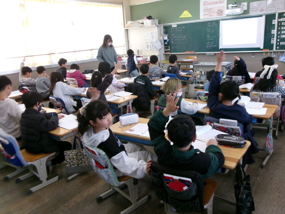 先に2人が発表し、3番目に発言した子が、「〇〇さんや△△さんと一緒で、・・・・・です。」と前の2人につなげた発言ができていました。この1年間でもずいぶん成長が見られますね。
