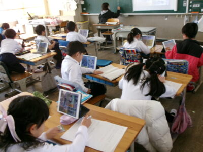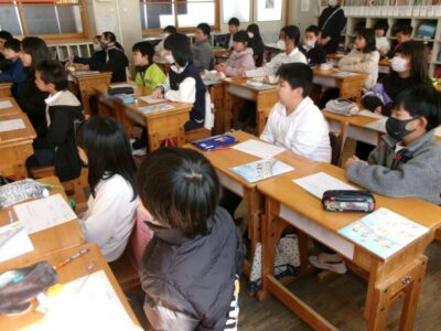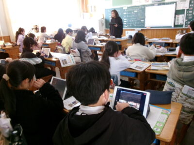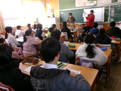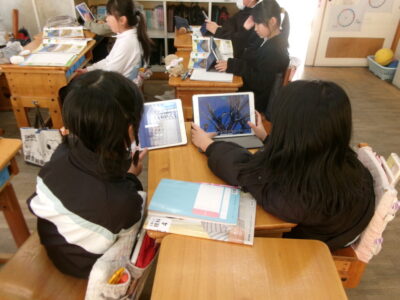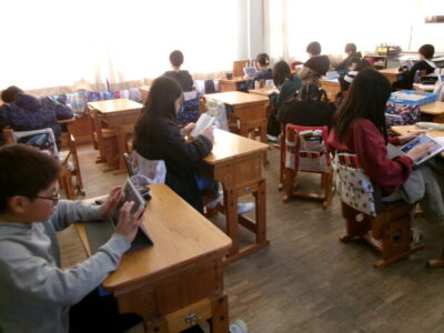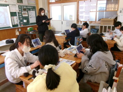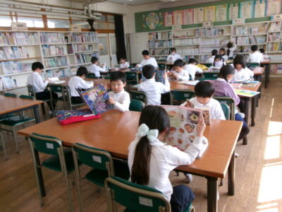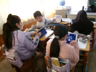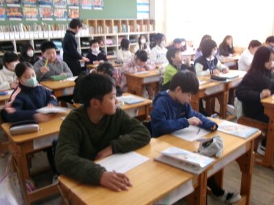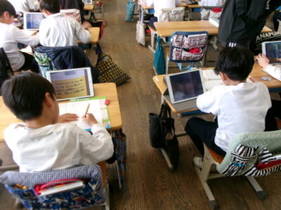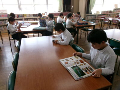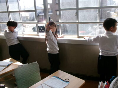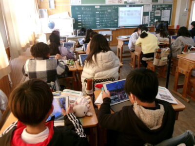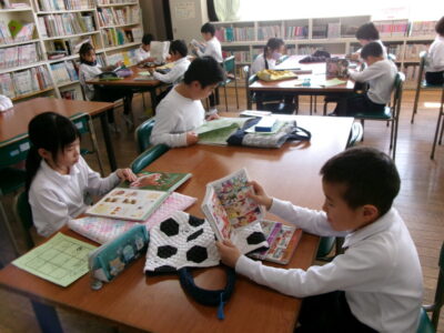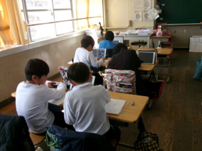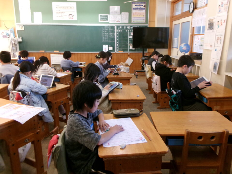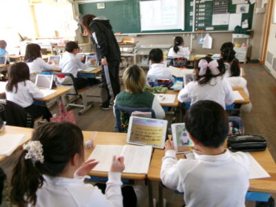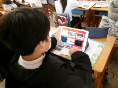外国語活動の学習では、学校の中のお気に入りの場所を紹介していました。