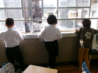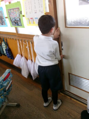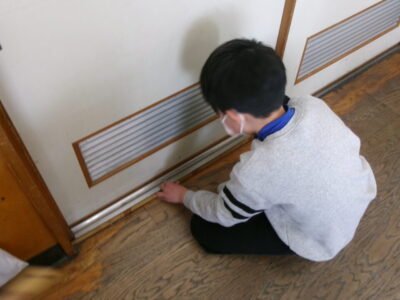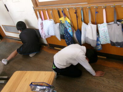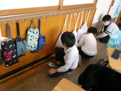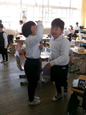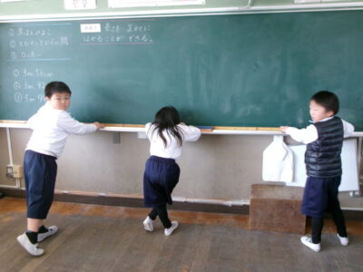 算数では、竹ものさしを使って教室内の物を測っていました。