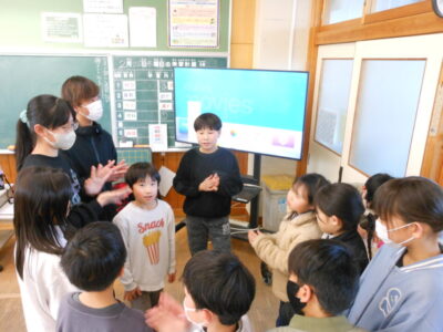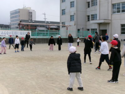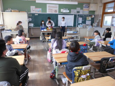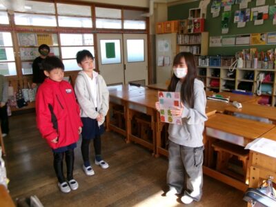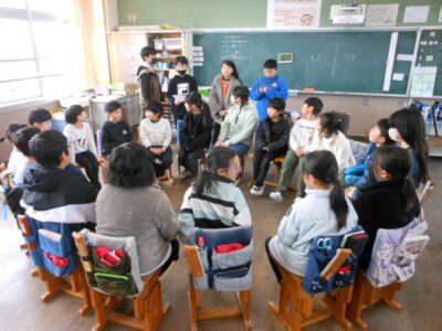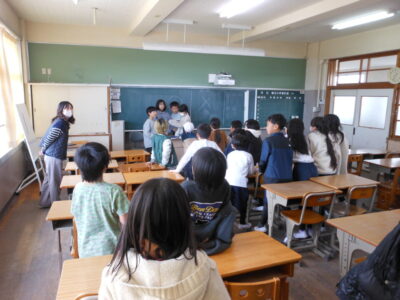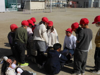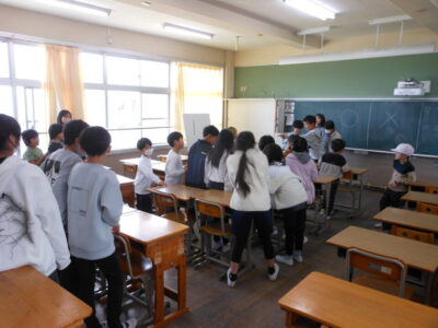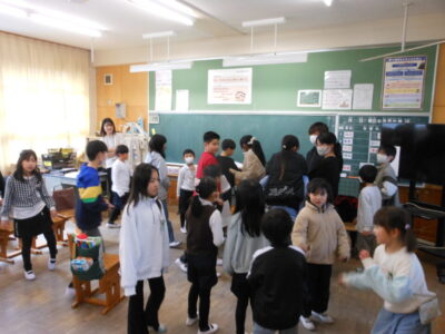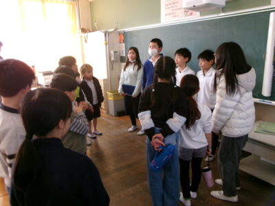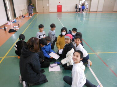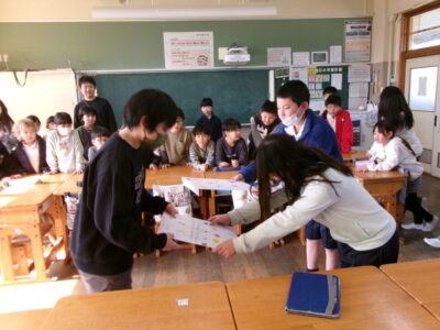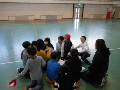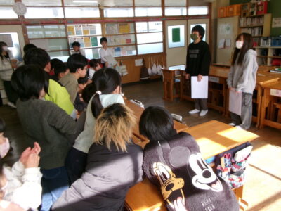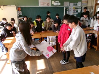 遊びの時間が終わり、最後にみんなから6年生の人たちへ寄せ書きのプレゼントを渡し、6年生の子からは言葉をもらいました。