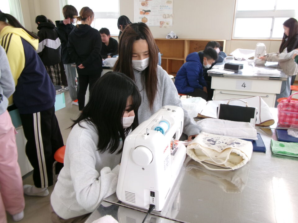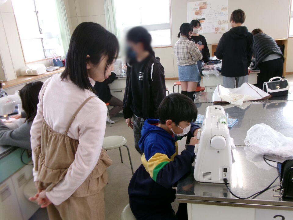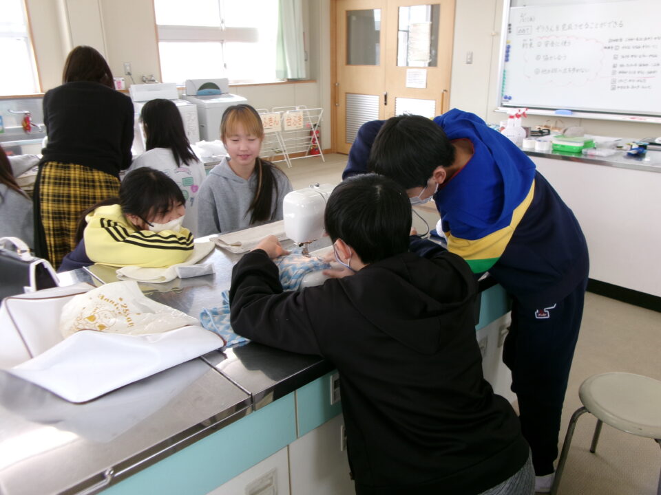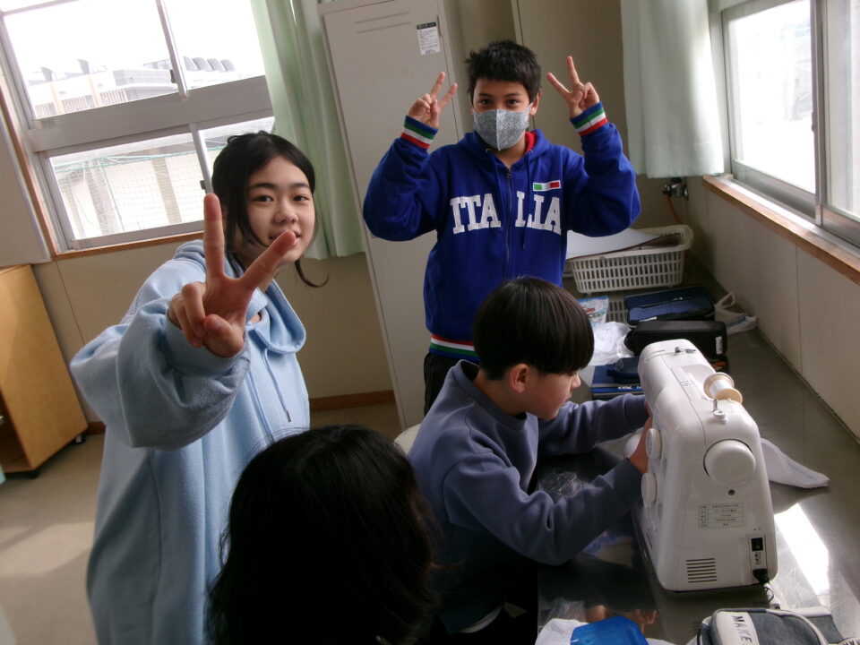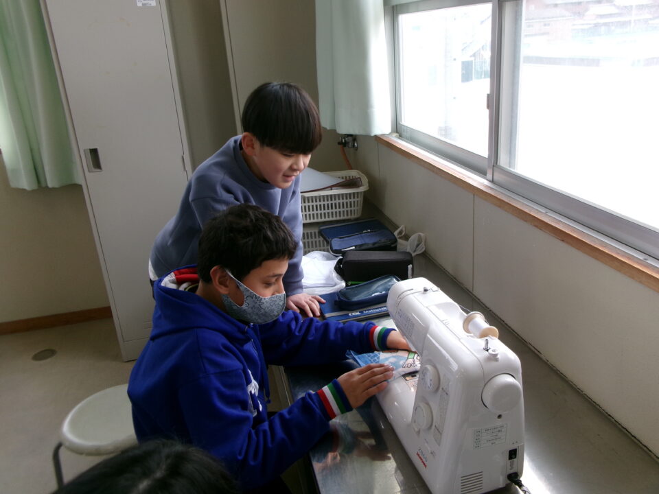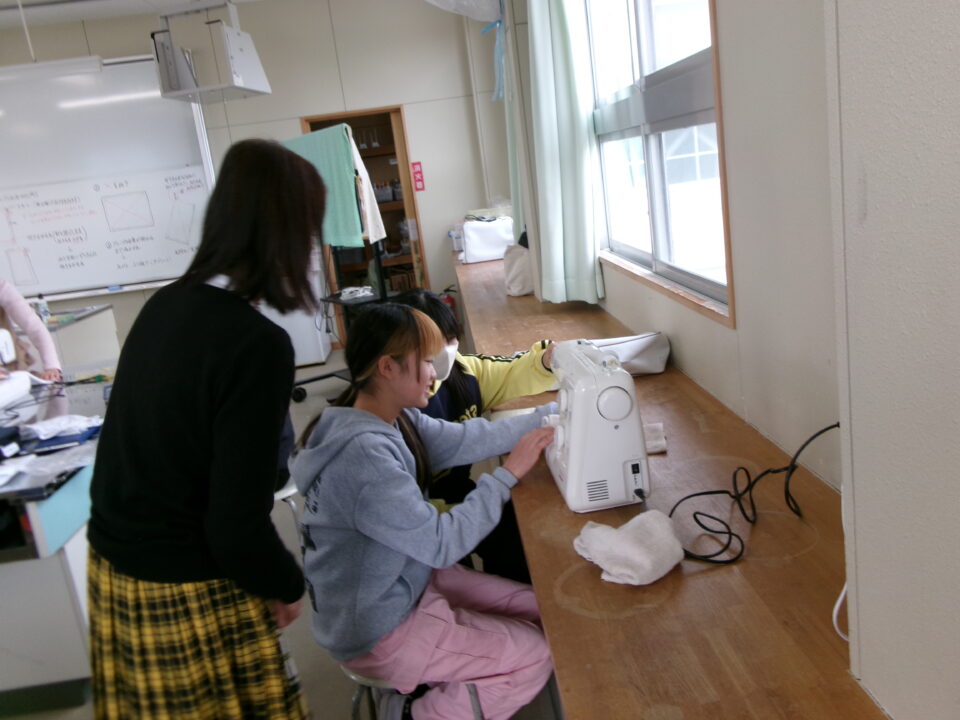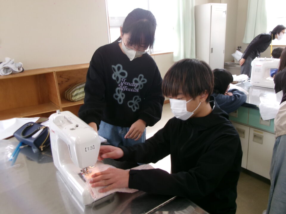 年生ねんせいでは、卒業間近そつぎょうまぢかとなり掃除そうじ使つかうためのぞうきんづくりをしています。いえから使つかっていたタオルをってきて、SDG’sの観点かんてんからてずに有効活用ゆうこうかつようをします。