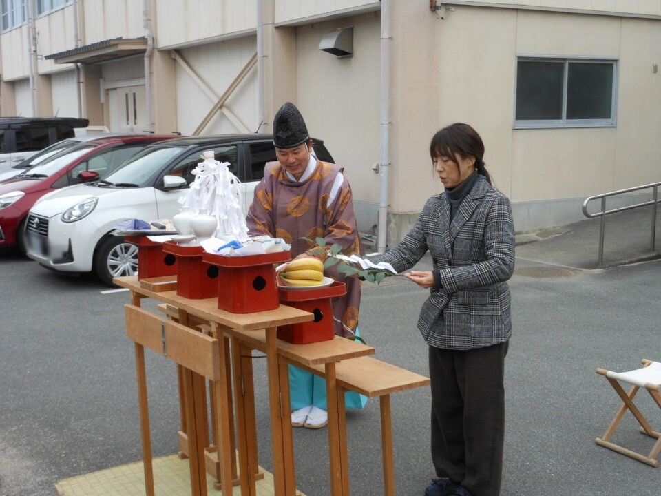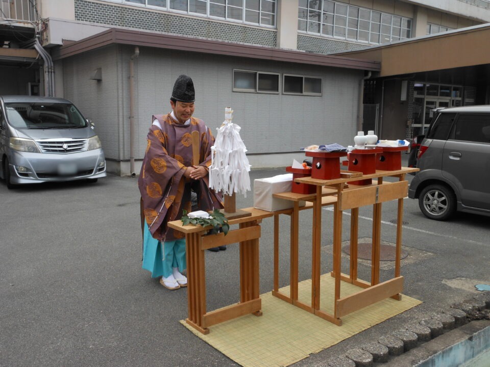 今日は、本校の保護者の方でもある地元の加世智神社の宮司さんに来ていただき、池のお祓いをしていただきました。