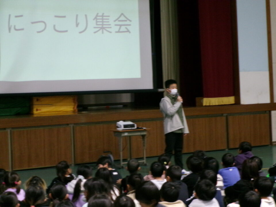 今日は5限目に児童会主催の『にっこり集会』がありました。司会進行は、児童会でしました。