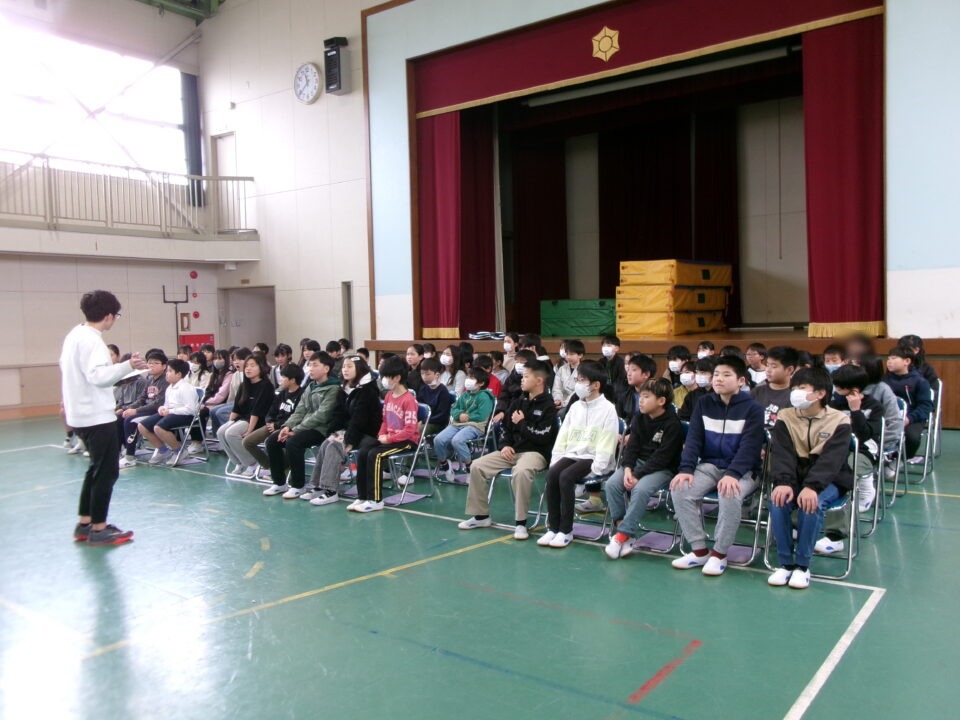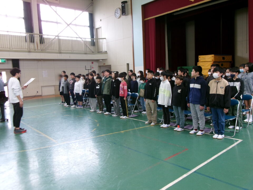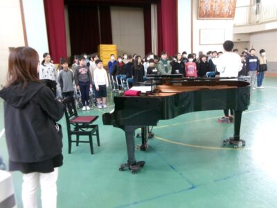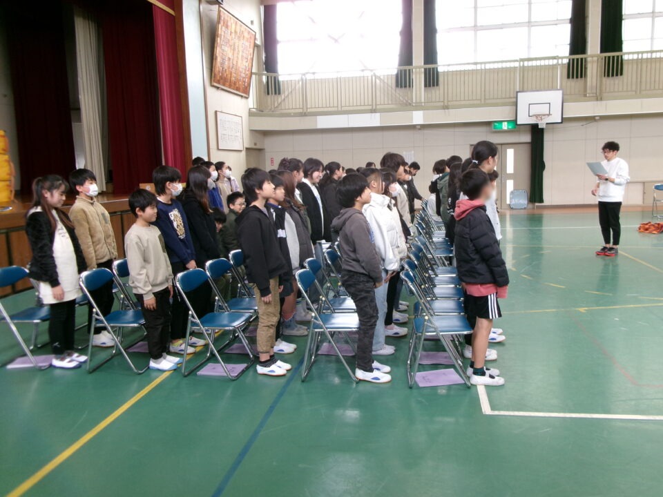 卒業式に在校生代表として臨む姿勢や6年生から安心してバトンを渡してもらえるような心得、座り方、立ち方、例の仕方などを教えてもらった後、呼びかけや歌の練習をしました。