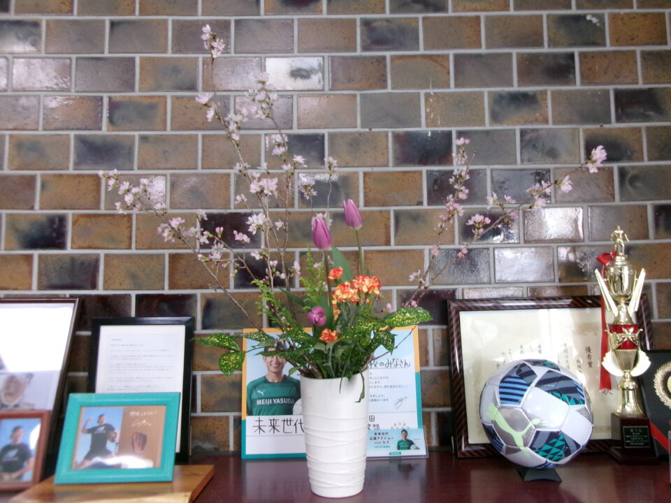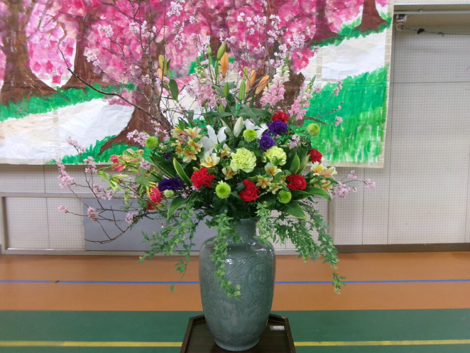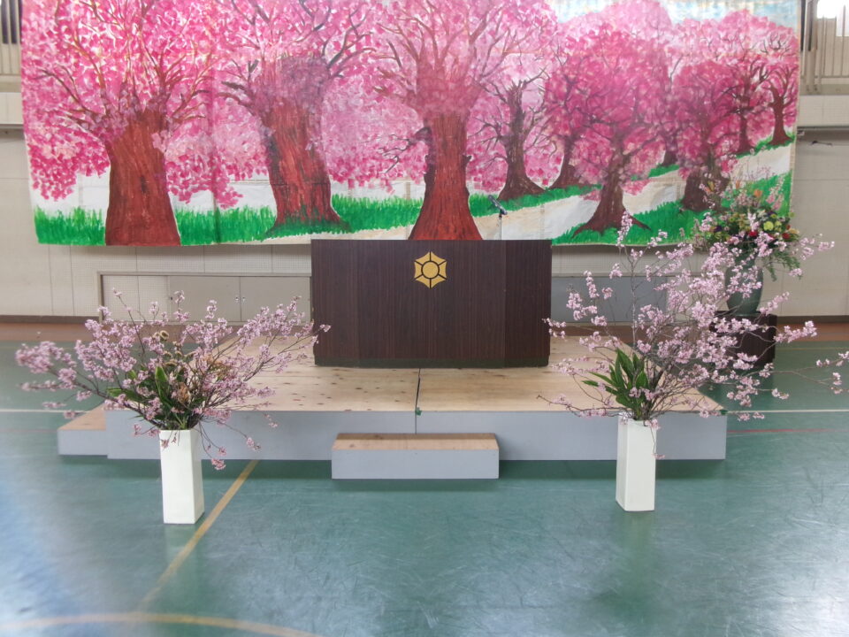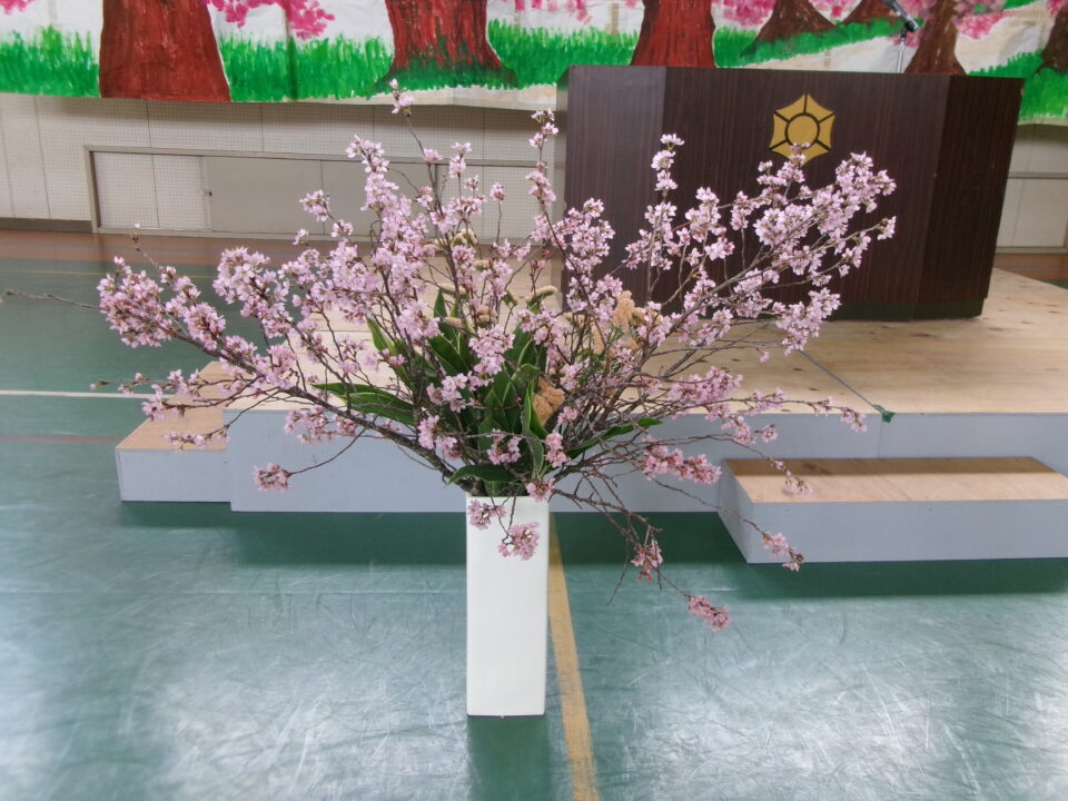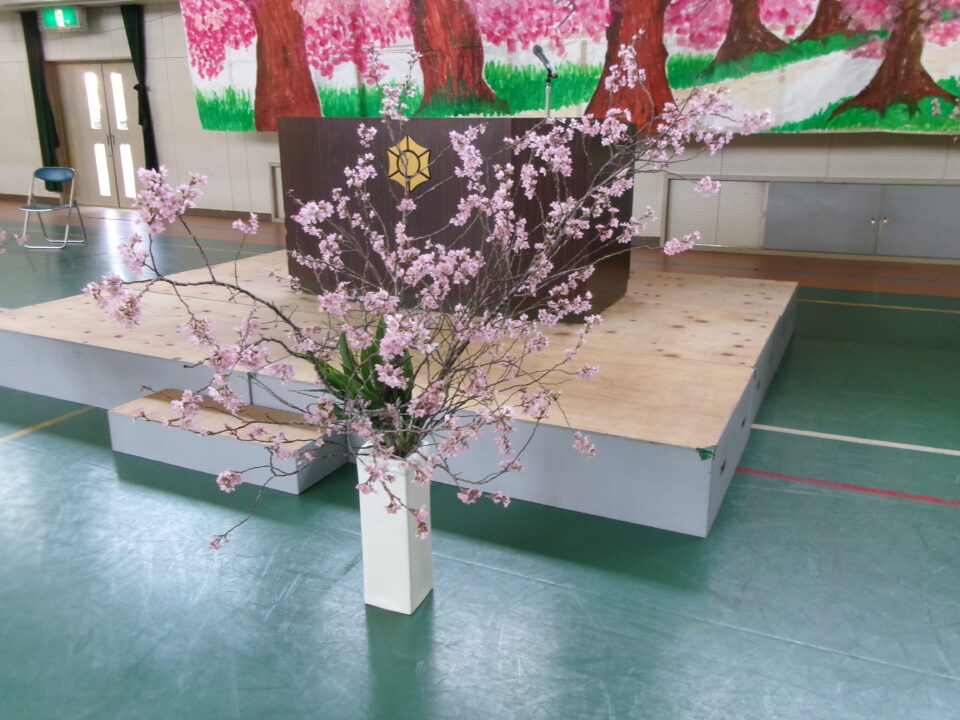 花の種類の中に『桜』の花がありますが、これは卒業生のために鈴木逸郎さんが、毎年、ご実家のある山まで伐採に行ってくれて、生け花として使わせていただいています。いつもありがとうございます。