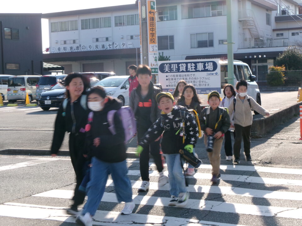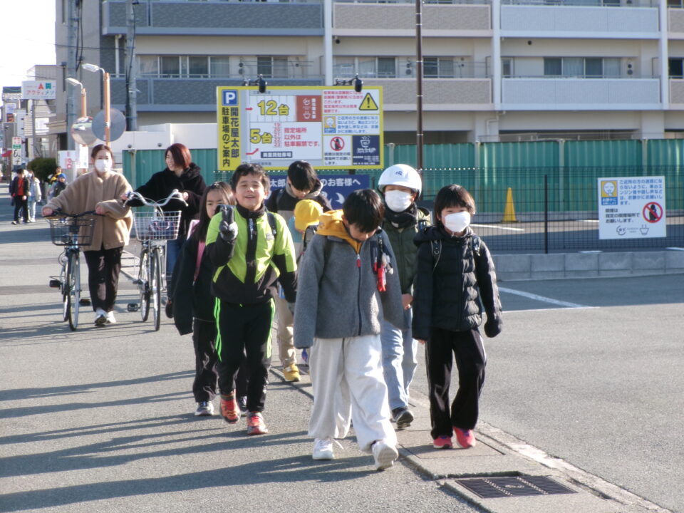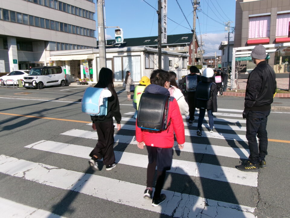 保護者の方にも、今日は一緒に歩いていただき、横断歩道も見守っていただきました。ありがとうございました。