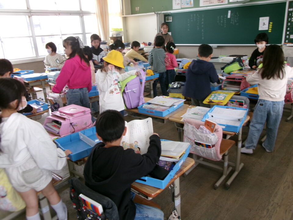 引き出しの掃除をしているクラスもありましたね。