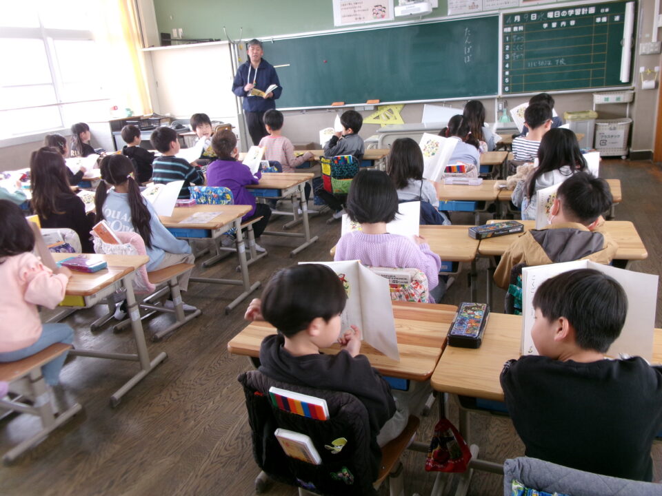なかには、国語こくご教科書きょうかしょんでみている学年がくねんがありました。
