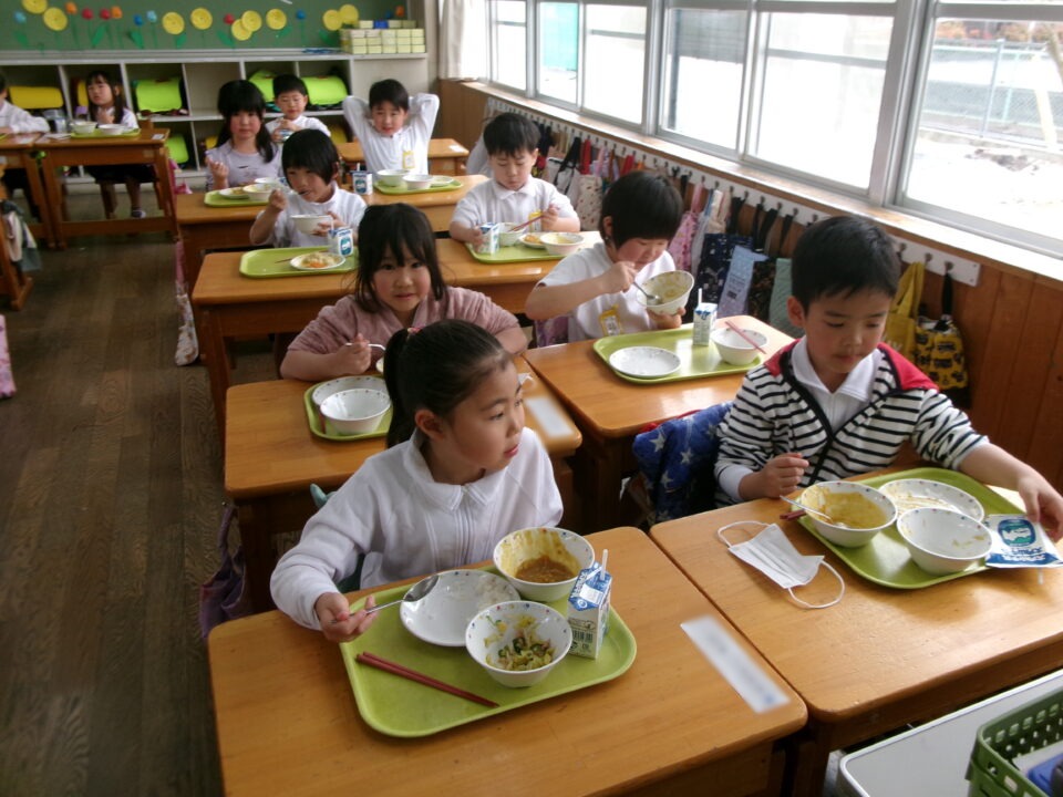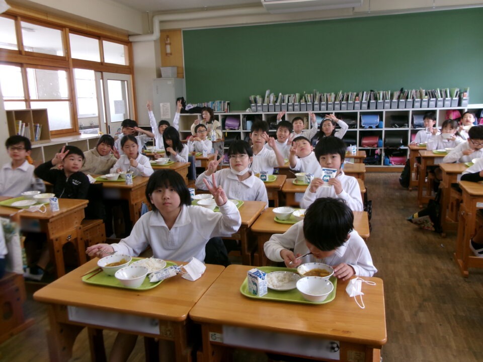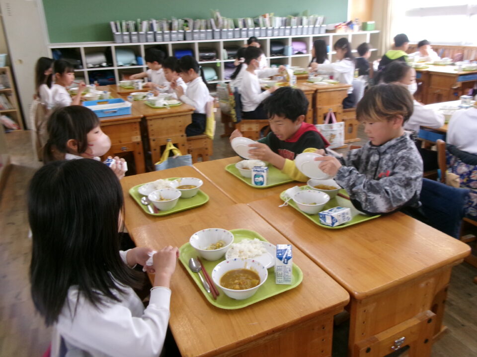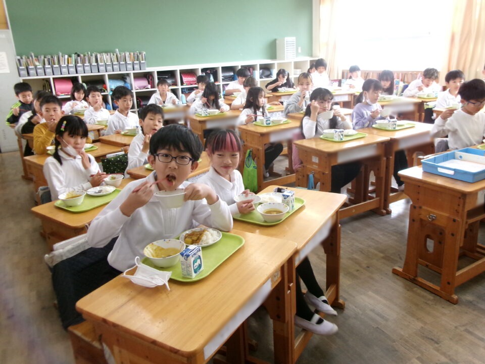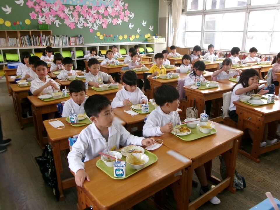 年生ねんせいたちは、小学校しょうがっこう給食きゅうしょくはじめてですが、みんなに「給食きゅうしょくはおいしいですか?」とくと、みんな、「おいしい\(^o^)/」とこたえるくらいよろこんでいました。うれしいです。