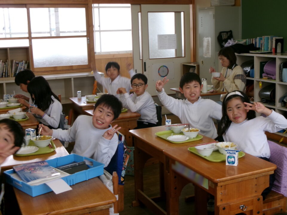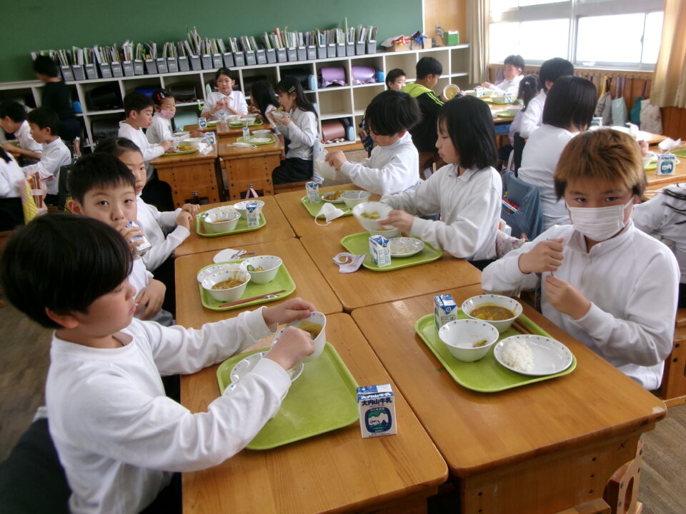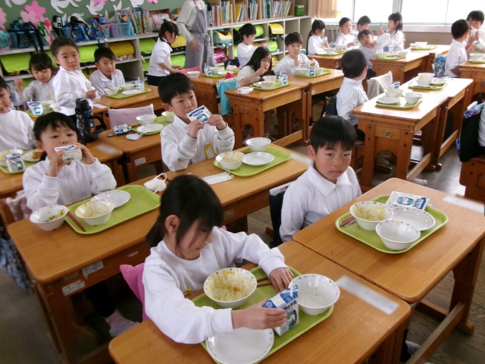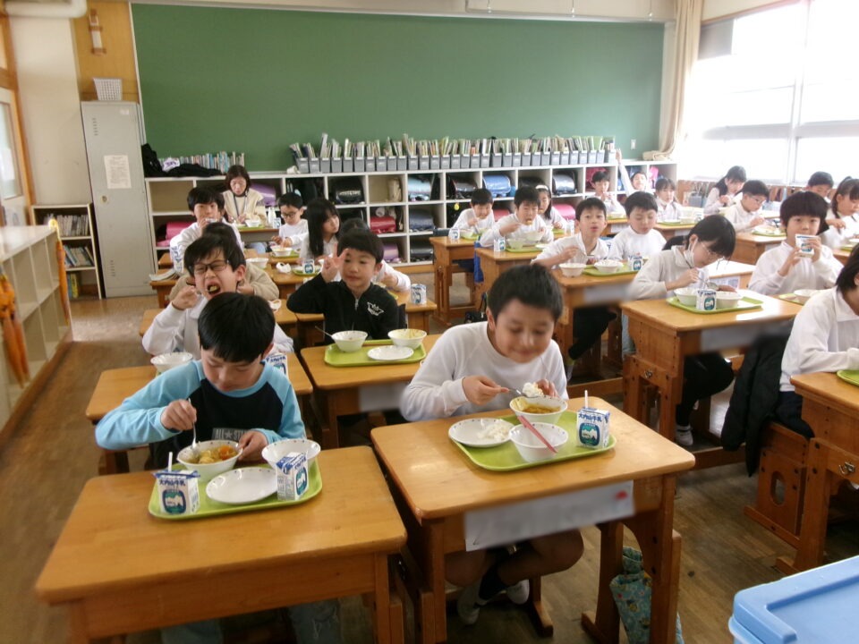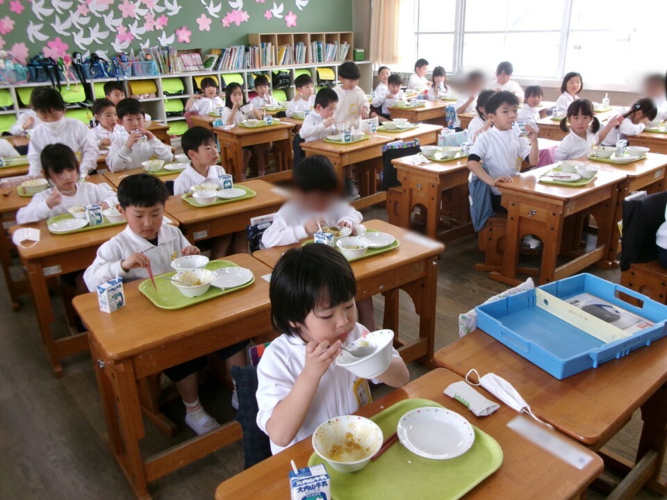年生ねんせいたちは、小学校しょうがっこう給食きゅうしょくはじめてですが、みんなに「給食きゅうしょくはおいしいですか?」とくと、みんな、「おいしい\(^o^)/」とこたえるくらいよろこんでいました。うれしいです。