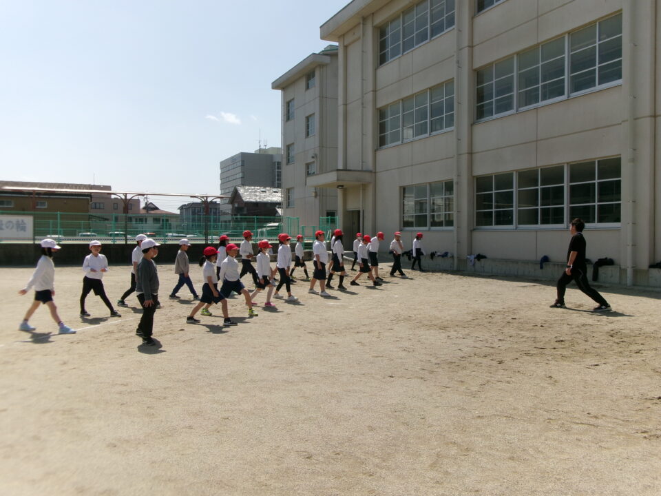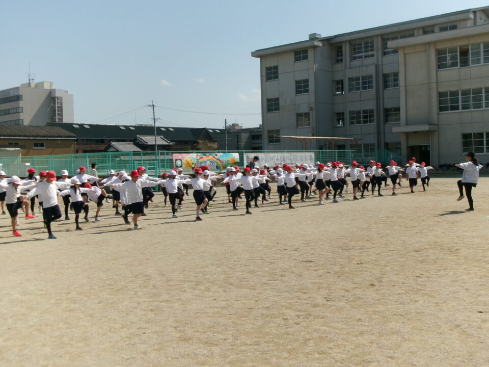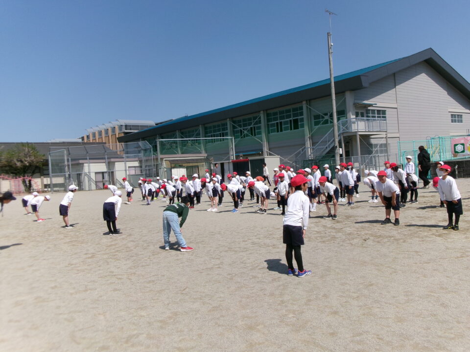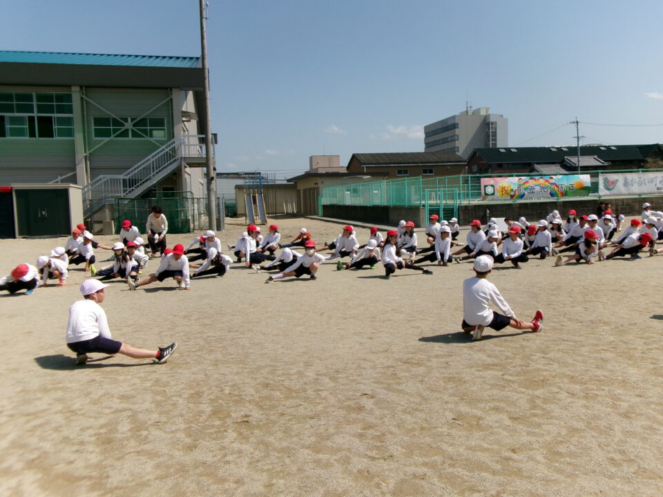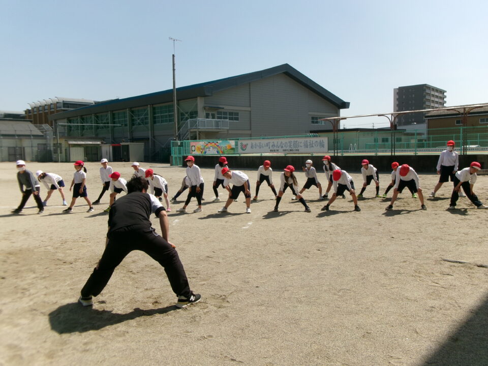 4年生は、リレーの学習でした。準備体操を入念にしていましたね。