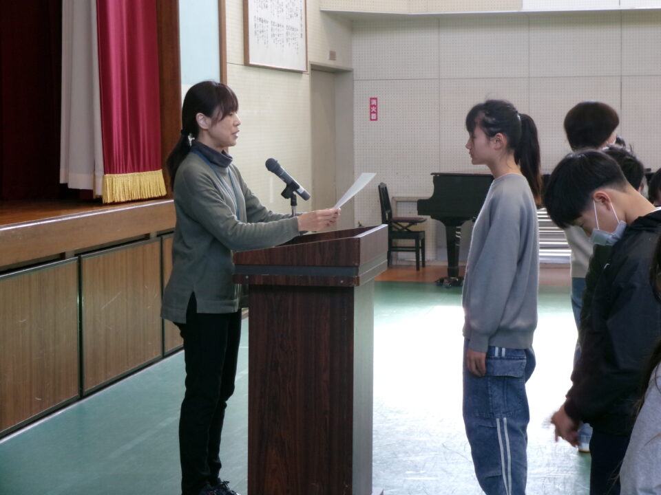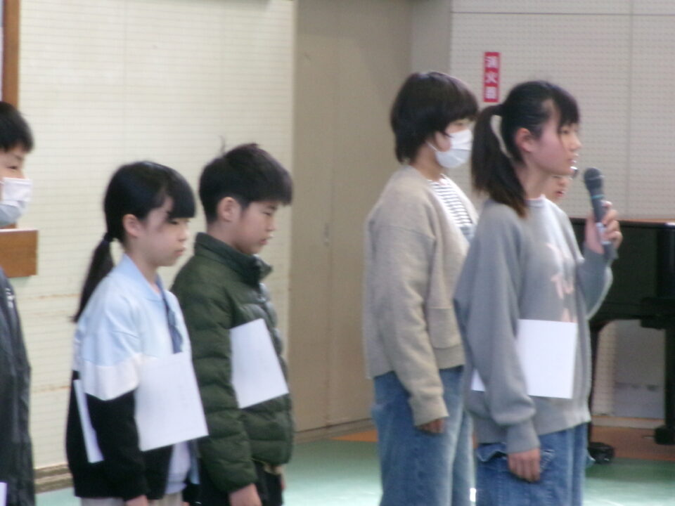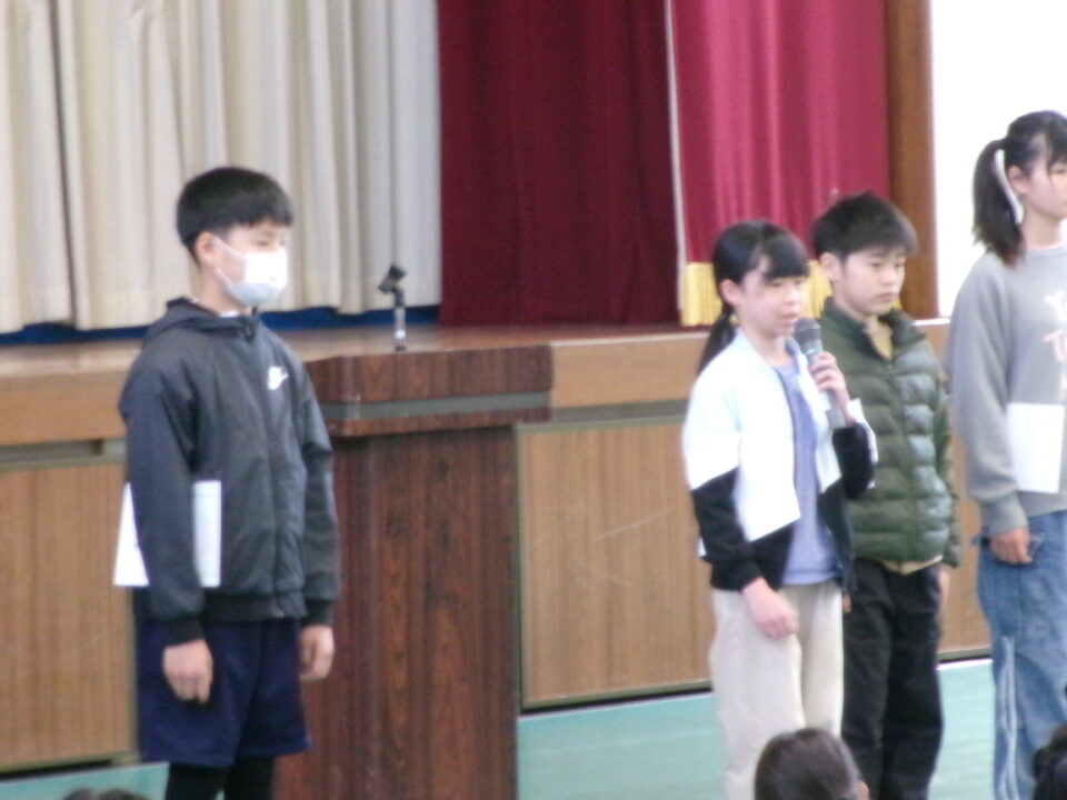 ホーム > 学校活動の様子 認証式(にんしょうしき)をしました。 令和(れいわ)7年度(ねんど) 前期児童会役員(ぜんきじどうかいやくいん)が決(き)まりました。 全校児童代表(ぜんこうじどうだいひょう)となって、みんなが学校生活(がっこうせいかつ)を楽(たの)しく送(おく)るために先頭(せんとう)に立(た)ってみんなを引(ひ)っ張(ぱ)っていってくれる人(ひと)たちです。 みんなで協力(きょうりょく)し合(あ)って、第四小学校生活(だいよんしょうがっこうせいかつ)がより良(よ)くなるようにしていきましょう。 シェアする Twitter でシェア LINE でシェア Facebook でシェア Pocket に保存 関連投稿 学校活動の様子 / コミュニティ・スクール トートバッグづくり 6-2 学校活動の様子 / コミュニティ・スクール 野菜(やさい)づくりの名人(めいじん)に話(はなし)を聞(き)きました! 学校活動の様子 冬休み開け初日 学校活動の様子 第四小(だいよんしょう)サッカーチーム3位表彰(いひょうしょう) 学校活動の様子 / コミュニティ・スクール 2年生(ねんせい) 生活科(せいかつか) 野菜(やさい)についての話(はなし) 学校活動の様子 新入生一日入学 前の投稿 1年生(ねんせい) とまとーず交通安全教室(こうつうあんぜんきょうしつ)がありました。 次の投稿 1年生(ねんせい)の子(こ)たちと対面式(たいめんしき)をしました。