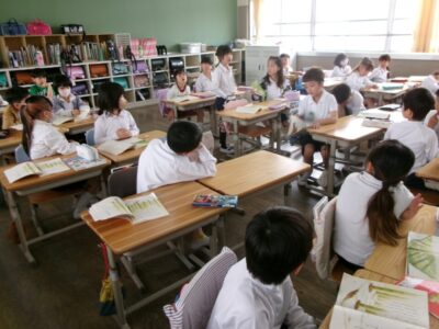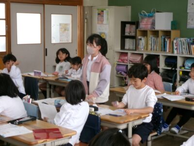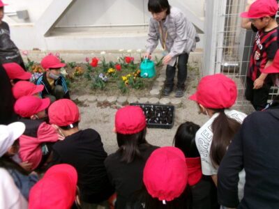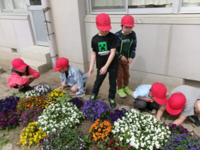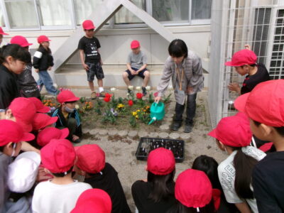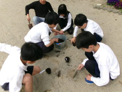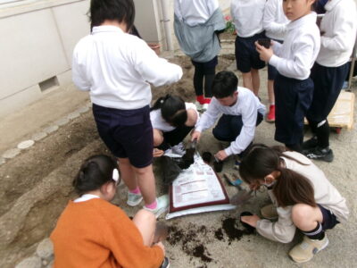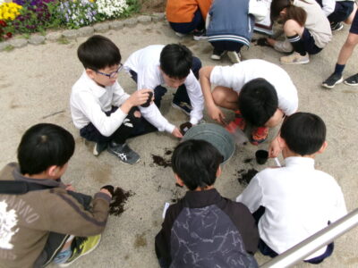 理科の学習をしていた3年生、4年生の子たちは、ヘチマの種を植えたり、ヒマワリの種を植えたりしました。これから、水やりをして、観察し、学習していきます。
