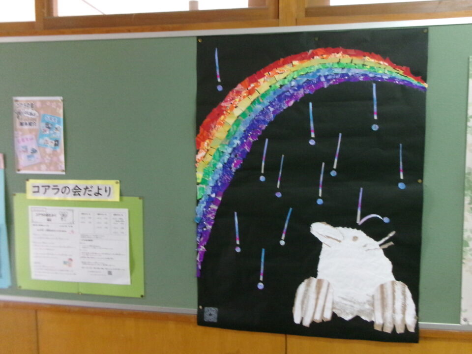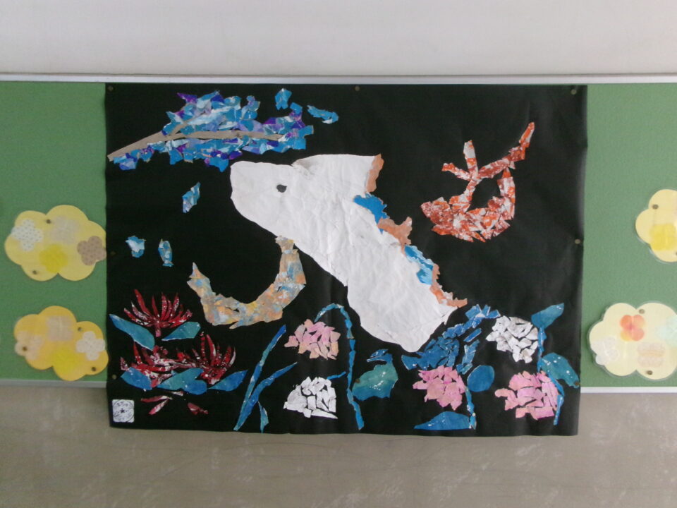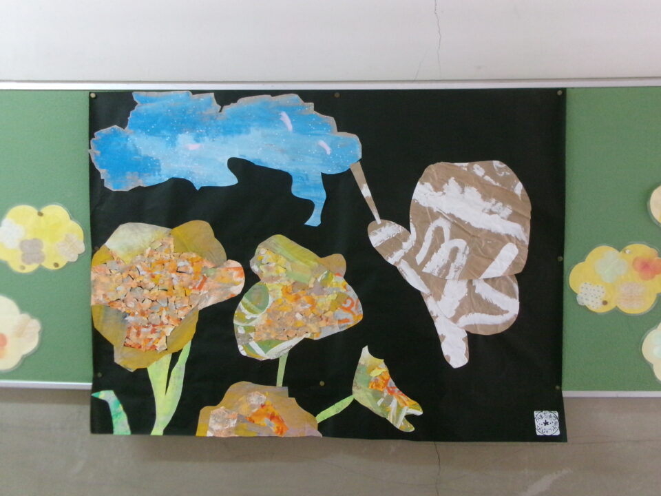 鎌田中学校美術部のみなさんが作成した掲示物です。遠くから見て素晴らしいのですが、近くで見ると工夫やアイディアがよく分かり、さらに素晴らしさが分かり感動する作品です。