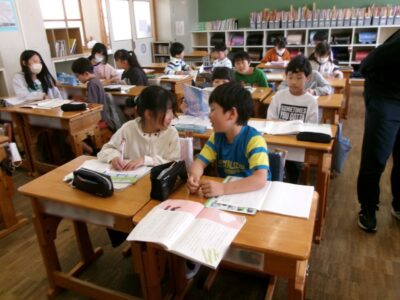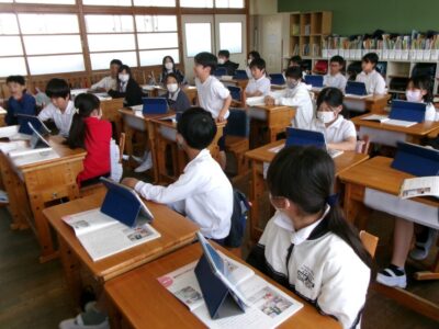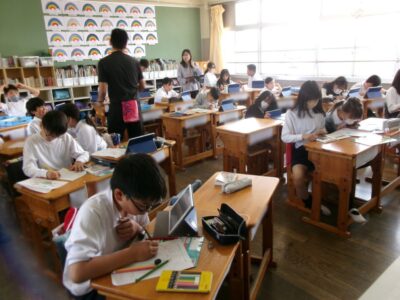 それぞれの学年でも「かまあいトーク」をしたり、タブレット端末を使ったりしてがんばっていました。