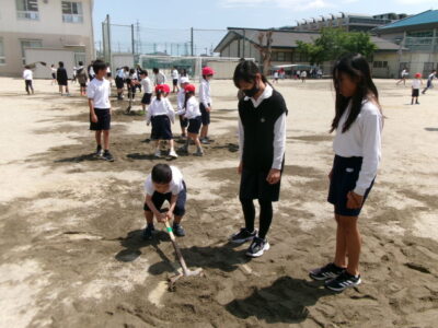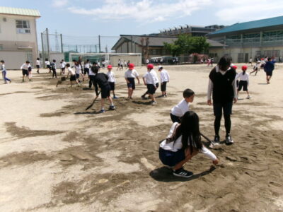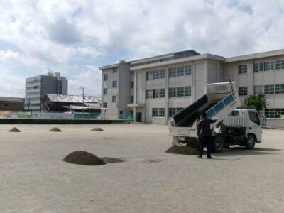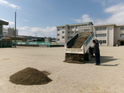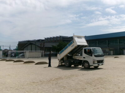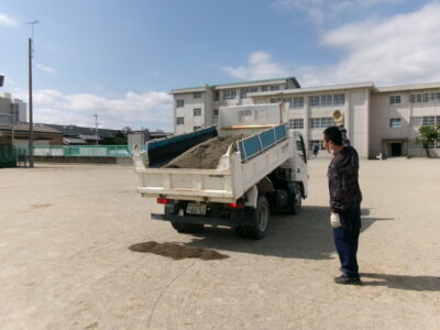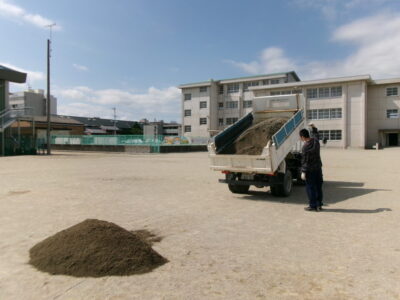 ホーム > 学校活動の様子 運動場(うんどうじょう)に砂(すな)を入(い)れました。 運動会(うんどうかい)に向(む)けて、運動場(うんどうじょう)に砂(すな)を5トンまきました。 トラックで小分(こわ)けにして砂(すな)を置(お)いてもらい、20分休(ぷんやす)みに子(こ)どもたちが砂(すな)をならすのを手伝(てつだ)ってくれました。 シェアする Twitter でシェア はてなブックマークに保存 LINE でシェア Facebook でシェア Pocket に保存 Feedly で購読 関連投稿 学校活動の様子 今日(きょう)の給食(きゅうしょく) 4年生(ねんせい) 学校活動の様子 4年生(ねんせい) 算数(さんすう)コース別学習(べつがくしゅう) 学校活動の様子 個別懇談会ありがとうございました 学校活動の様子 6年総合学習 学校活動の様子 卒業旅行 学校活動の様子 5年生宿泊体験学習に向けて 前の投稿 GW明(あ)け!今日(きょう)からまたがんばりましょう!(^^)! 次の投稿 5-3家庭科(かていか)調理実習(ちょうりじっしゅう)