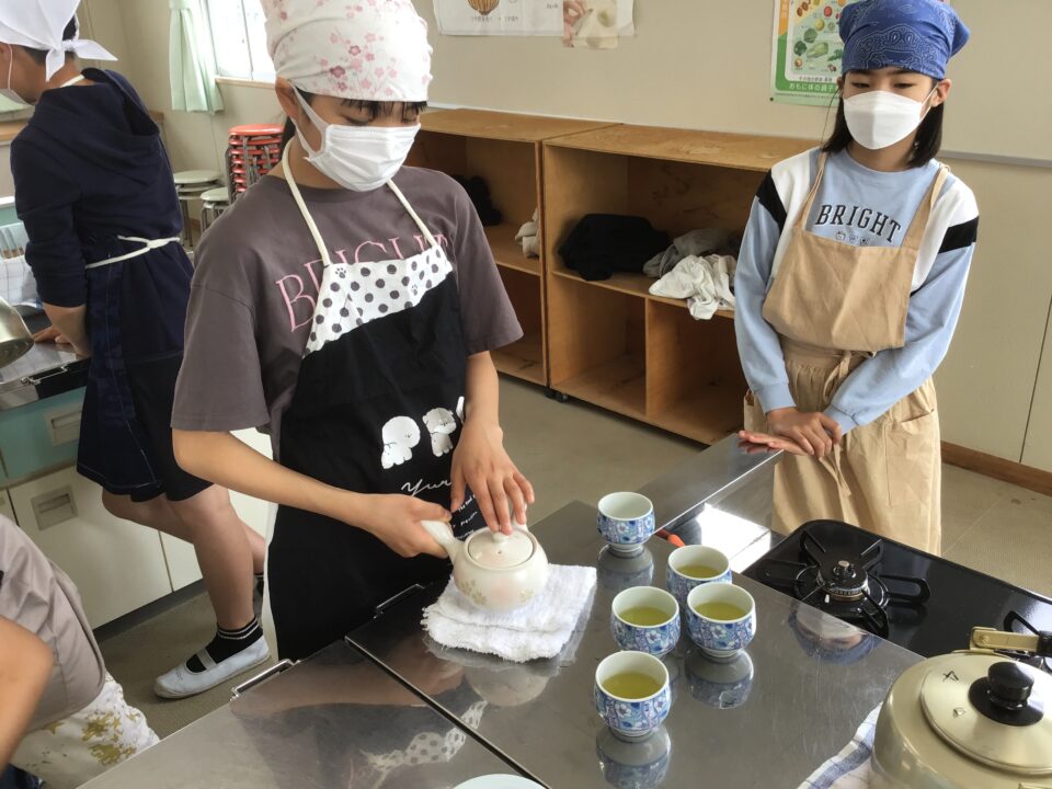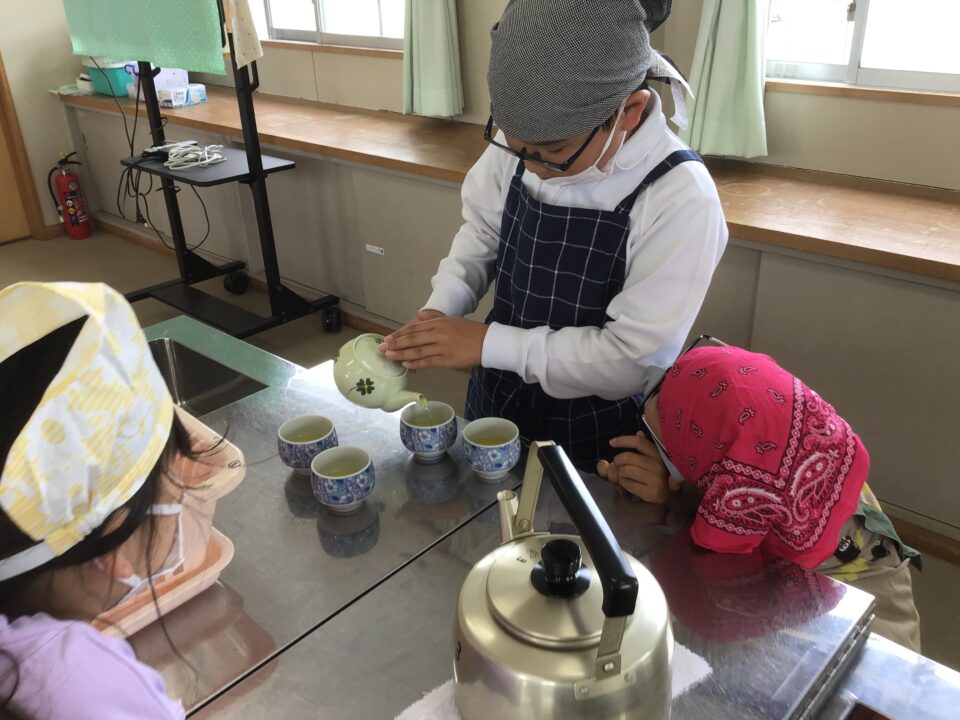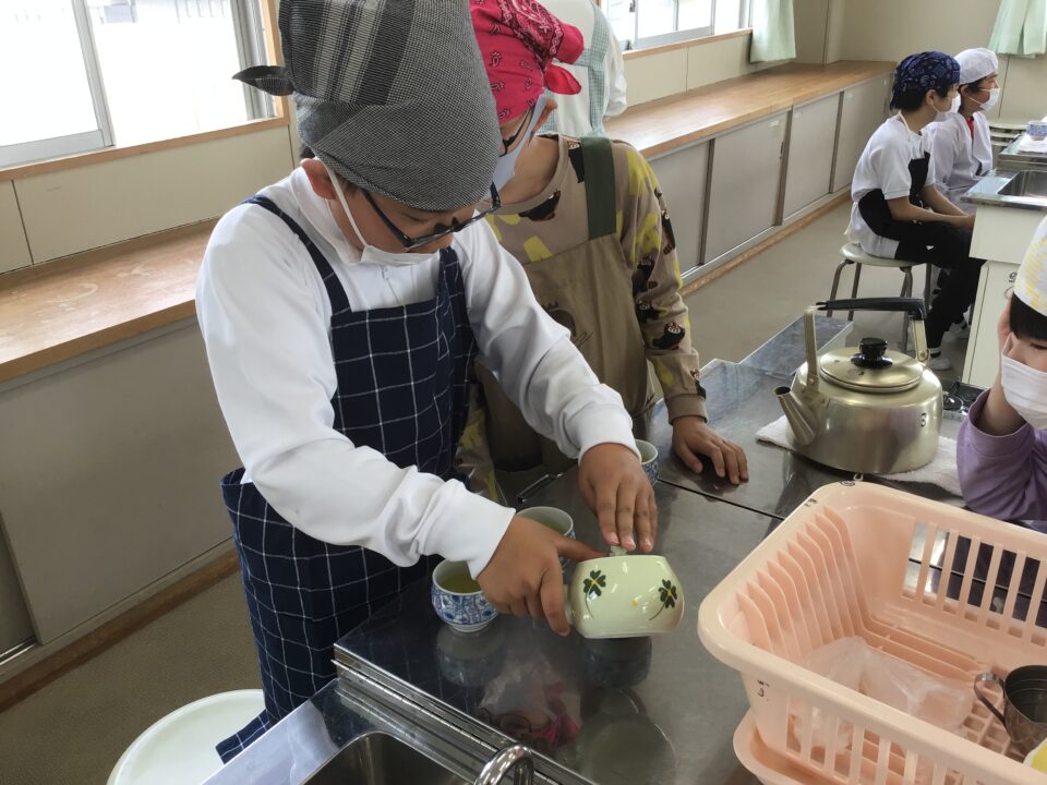ホーム > 学校活動の様子 5-1家庭科(かていか)調理実習(ちょうりじっしゅう) 今日(きょう)は、5年(ねん)1組(くみ)が調理実習(ちょうりじっしゅう)でお茶(ちゃ)を急須(きゅうす)で淹(い)れてみました。 熱湯(ねっとう)を使(つか)うので、気(き)を付(つ)けておいしいお茶(ちゃ)を淹(い)れることができました。 お家(うち)で淹(い)れる時(とき)は、大人(おとな)がいる時(とき)にしましょうね。 シェアする Twitter でシェア はてなブックマークに保存 LINE でシェア Facebook でシェア Pocket に保存 Feedly で購読 関連投稿 学校活動の様子 運動会全校練習(うんどうかいぜんこうれんしゅう)がありました。 学校活動の様子 走(はし)り幅跳(はばと)びの練習(れんしゅう)~3年生(ねんせい)~ 学校活動の様子 三井家発祥地(みついけはっしょうち)見学(けんがく) 6年生(ねんせい) 学校活動の様子 学習(がくしゅう)の様子(ようす)1年(ねん)~3年(ねん) 学校活動の様子 にっこり集会 学校活動の様子 学習(がくしゅう)の様子(ようす)~2年(ねん)、5年(ねん)、6年(ねん)~ 前の投稿 学習(がくしゅう)の様子(ようす)4年生(ねんせい)5年生(ねんせい) 次の投稿 運動場(うんどうじょう)にラインを引(ひ)きました。