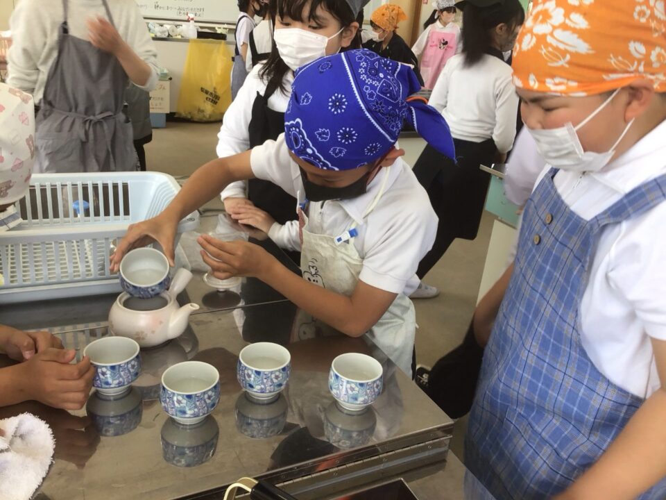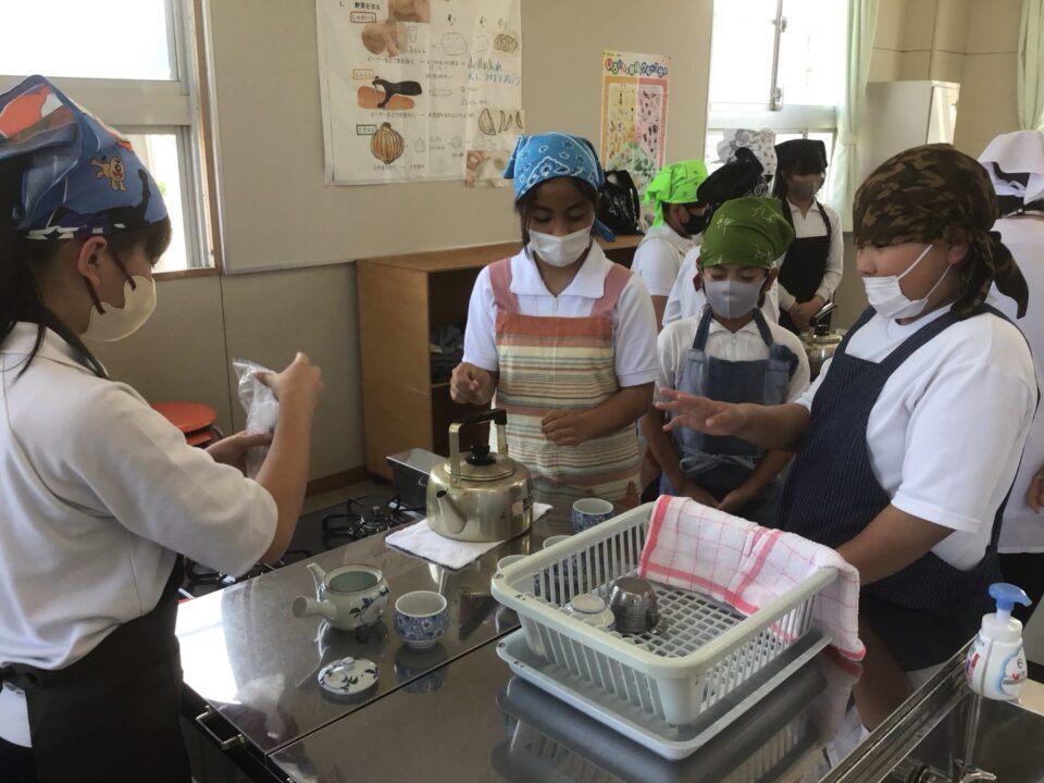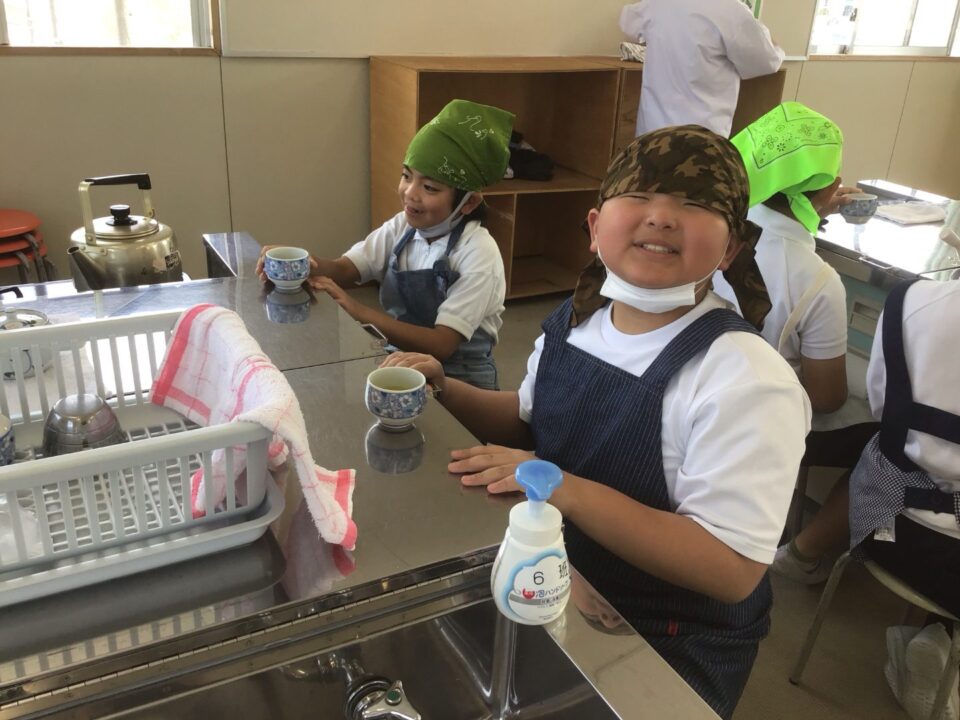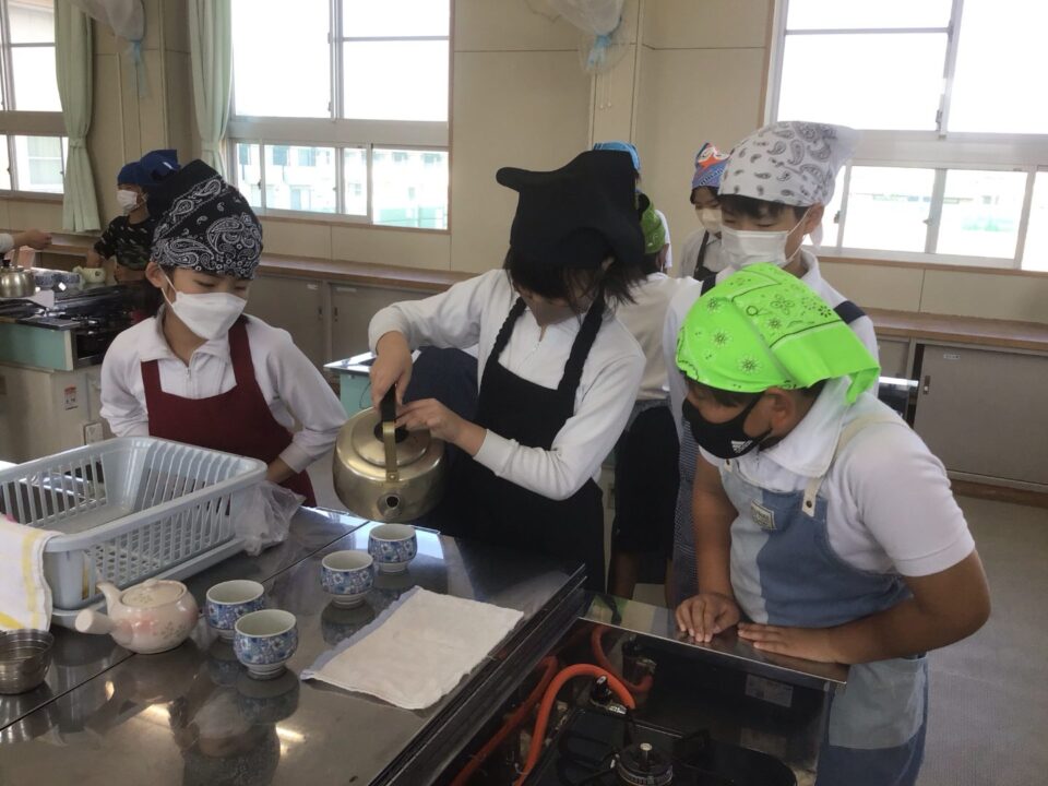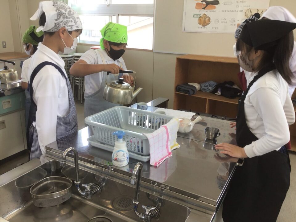 ホーム > 学校活動の様子 家庭科調理実習(かていかちょうりじっしゅう)5-2 今日(きょう)は、5年(ねん)2組(くみ)が調理実習(ちょうりじっしゅう)でお茶(ちゃ)を急須(きゅうす)で淹(い)れてみました。 熱湯(ねっとう)を使(つか)うので、気(き)を付(つ)けておいしいお茶(ちゃ)を淹(い)れることができました。 お家(うち)で淹(い)れる時(とき)は、大人(おとな)がいる時(とき)にしましょうね。 シェアする Twitter でシェア はてなブックマークに保存 LINE でシェア Facebook でシェア Pocket に保存 Feedly で購読 関連投稿 学校活動の様子 アサガオの観察(かんさつ)1年生(ねんせい) 学校活動の様子 通学団会議 学校活動の様子 だいよん絵(え)の本(ほん)ひろば6-1 学校活動の様子 / コミュニティ・スクール CS放課後学習会(ほうかごがくしゅうかい)2.3年(ねん) 学校活動の様子 修学旅行事前学習発表会 学校活動の様子 だいよん祭に向けて2年生 前の投稿 3年生(ねんせい)ダンスの練習(れんしゅう) 次の投稿 ミストを設置(せっち)してもらいました。