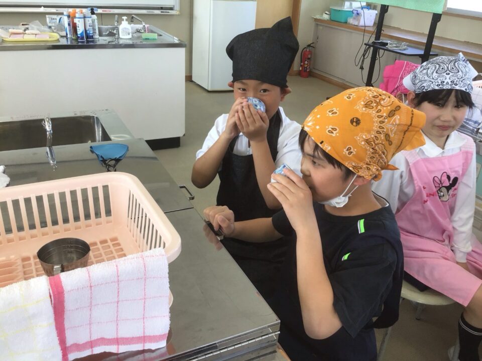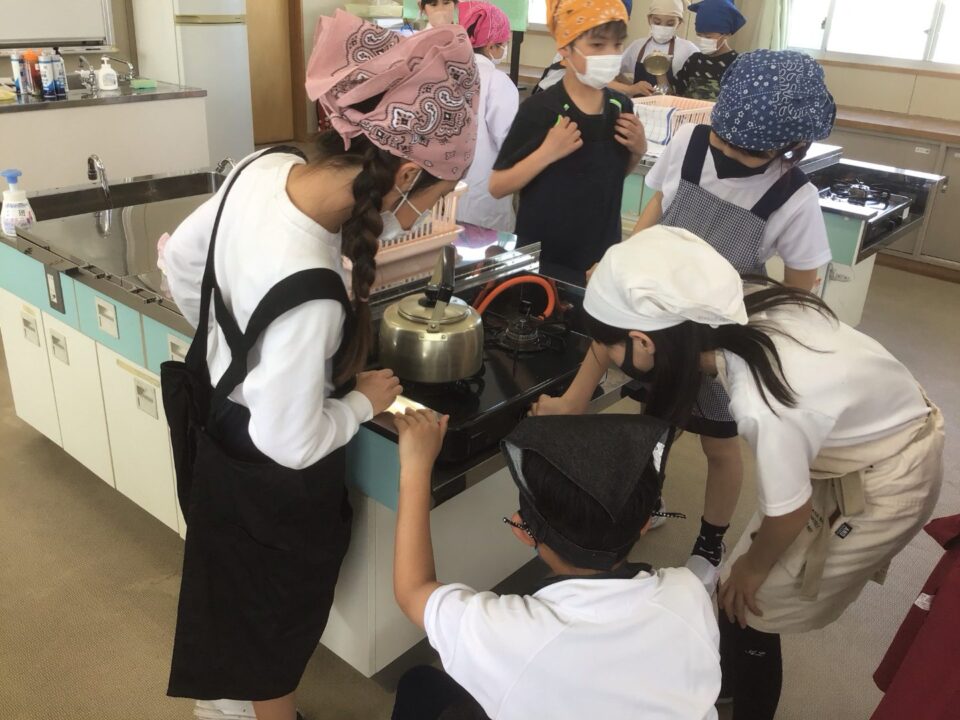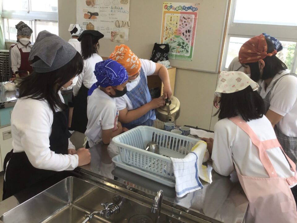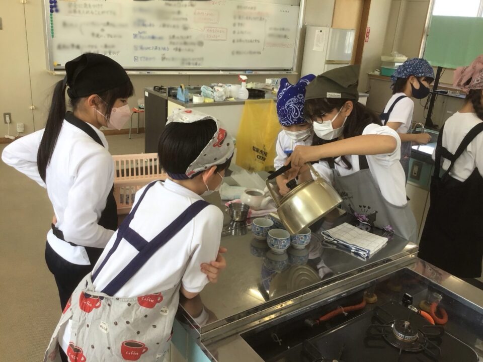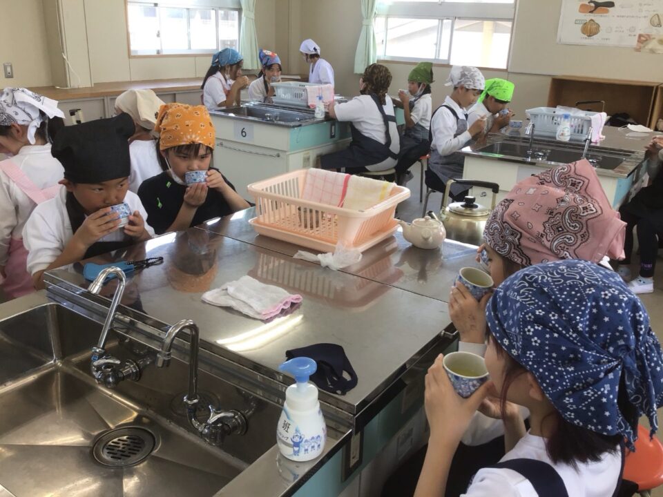 ホーム > 学校活動の様子 家庭科調理実習(かていかちょうりじっしゅう)5-2 今日(きょう)は、5年(ねん)2組(くみ)が調理実習(ちょうりじっしゅう)でお茶(ちゃ)を急須(きゅうす)で淹(い)れてみました。 熱湯(ねっとう)を使(つか)うので、気(き)を付(つ)けておいしいお茶(ちゃ)を淹(い)れることができました。 お家(うち)で淹(い)れる時(とき)は、大人(おとな)がいる時(とき)にしましょうね。 シェアする Twitter でシェア はてなブックマークに保存 LINE でシェア Facebook でシェア Pocket に保存 Feedly で購読 関連投稿 学校活動の様子 アサガオの観察(かんさつ)1年生(ねんせい) 学校活動の様子 通学団会議 学校活動の様子 だいよん絵(え)の本(ほん)ひろば6-1 学校活動の様子 / コミュニティ・スクール CS放課後学習会(ほうかごがくしゅうかい)2.3年(ねん) 学校活動の様子 修学旅行事前学習発表会 学校活動の様子 だいよん祭に向けて2年生 前の投稿 3年生(ねんせい)ダンスの練習(れんしゅう) 次の投稿 ミストを設置(せっち)してもらいました。