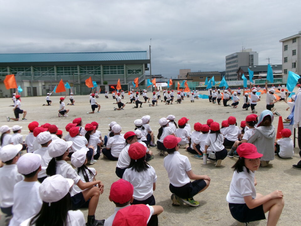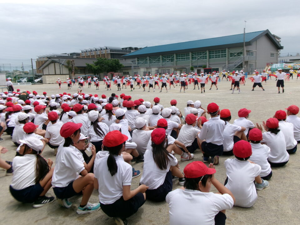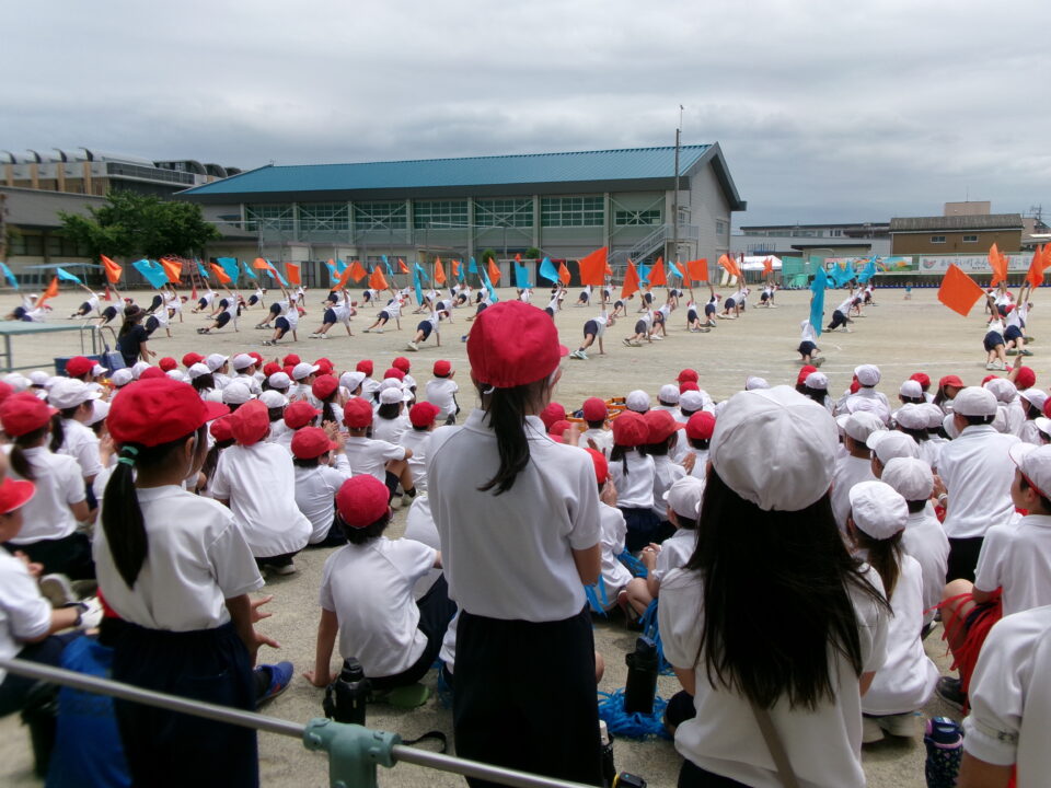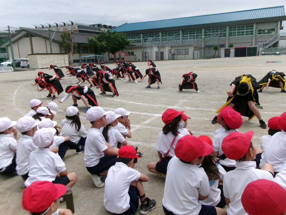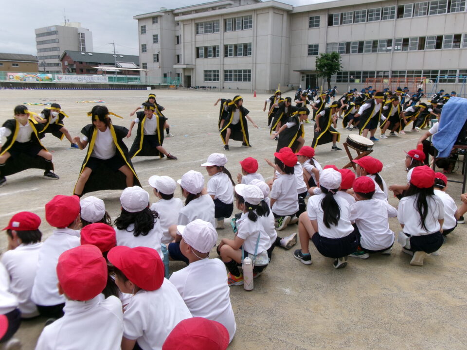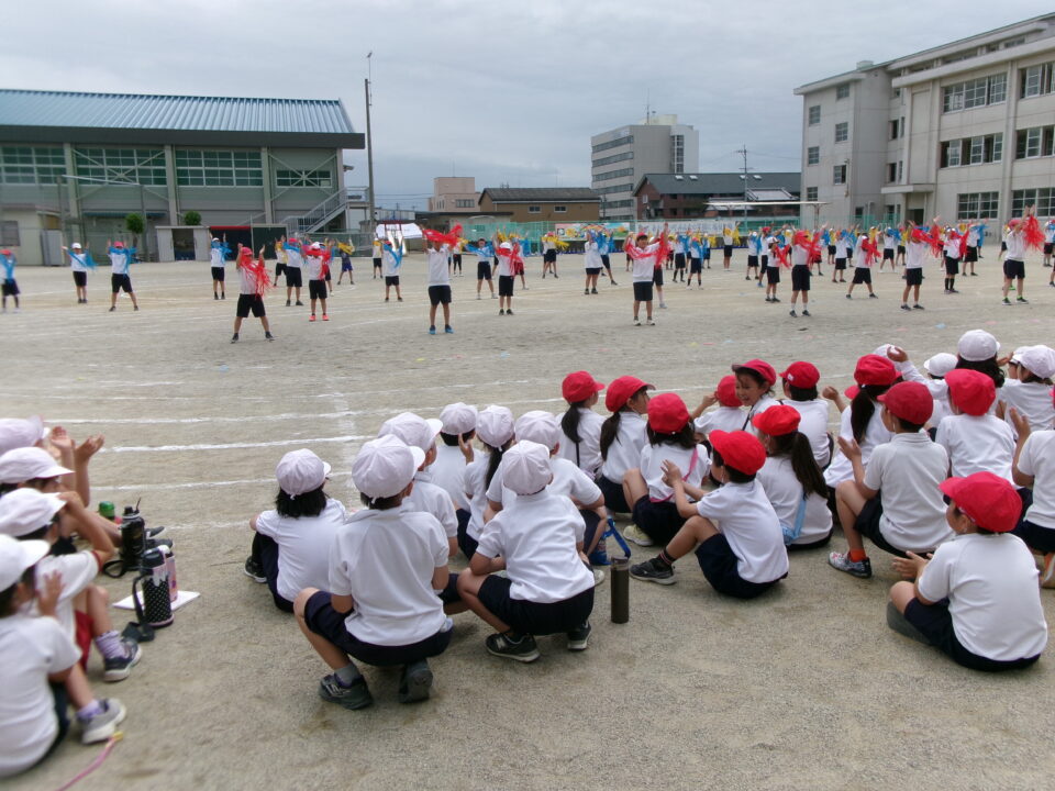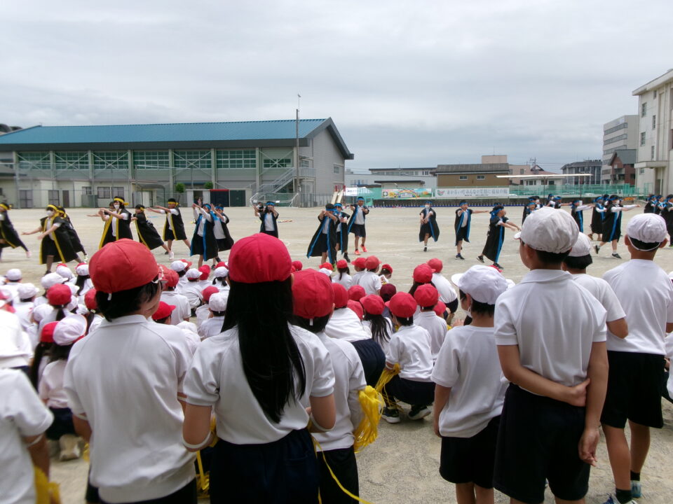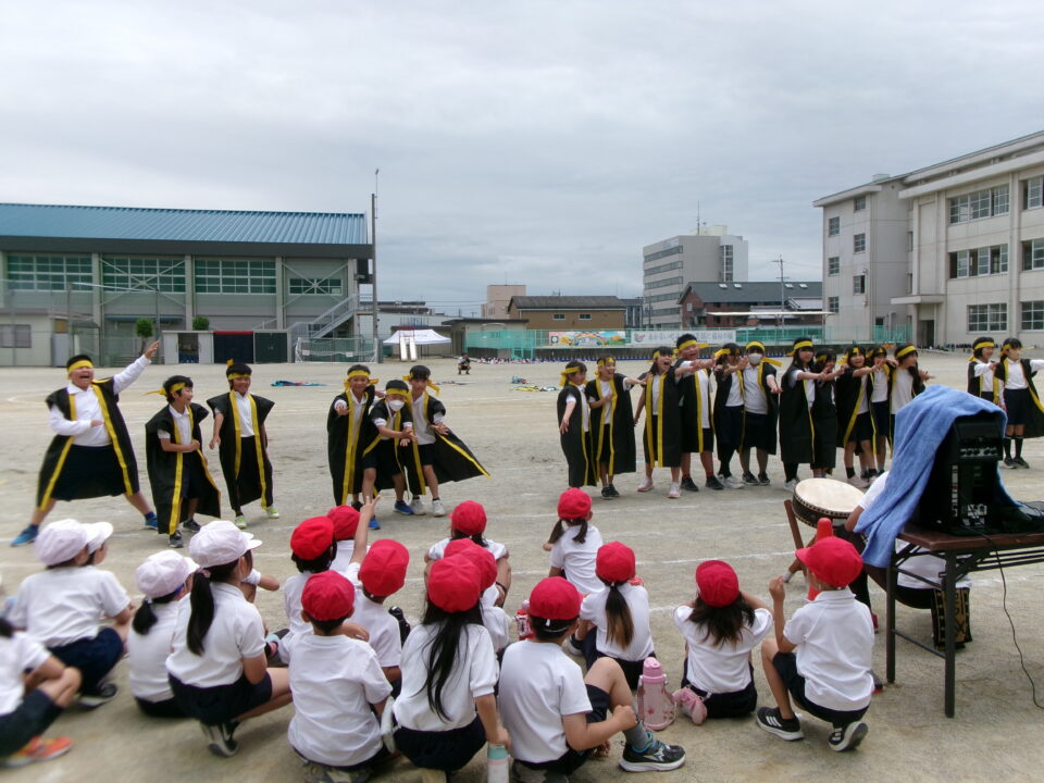 昨日きのうはあいにくの運動場うんどうじょうのコンディションがわるく、1年生ねんせい~3年生ねんせいはふりかえりの動画どうがることになりましたが、今日きょうは、4限目げんめに4年生ねんせい~6年生ねんせいのリハーサルをみんなで観合みあいました。