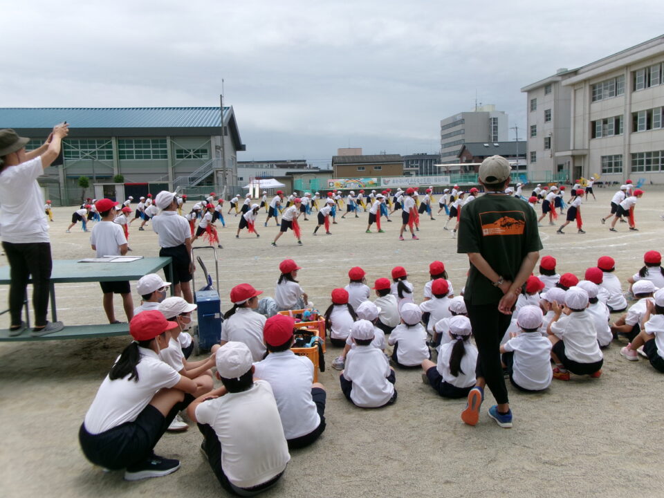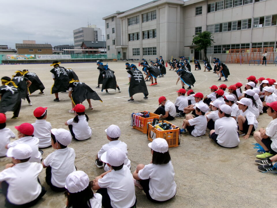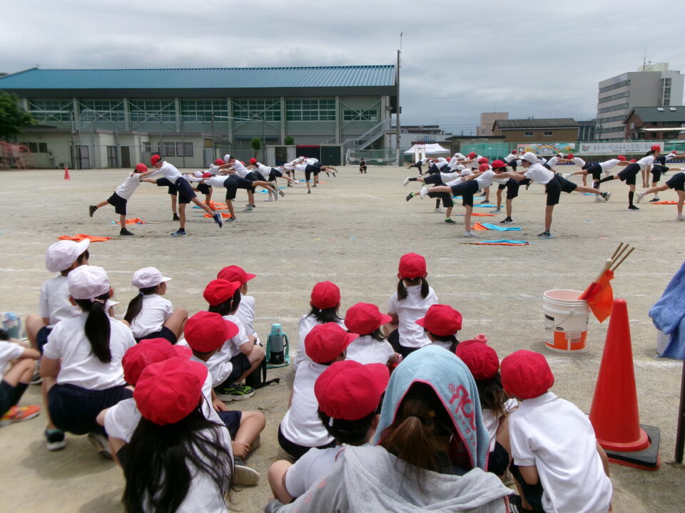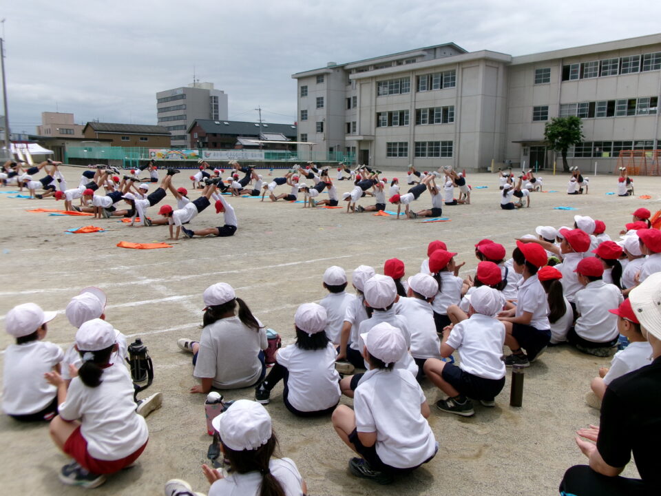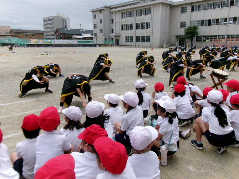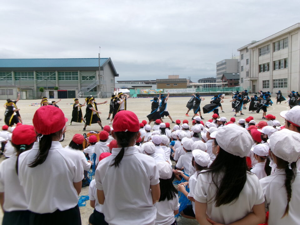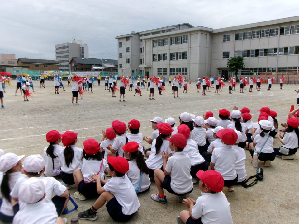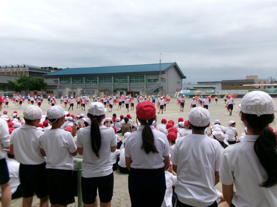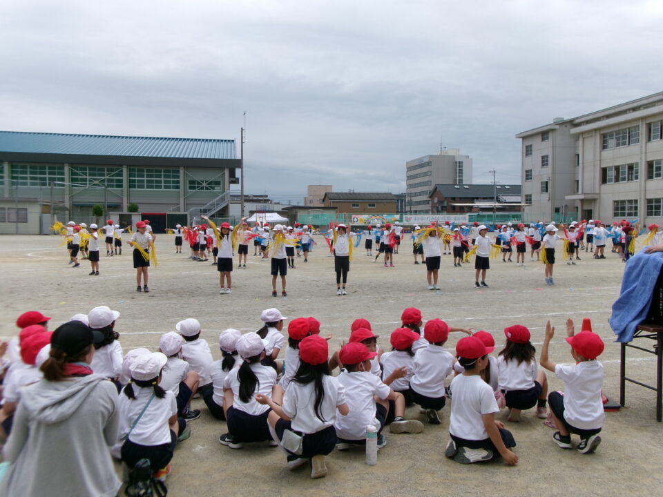 昨日きのうはあいにくの運動場うんどうじょうのコンディションがわるく、1年生ねんせい~3年生ねんせいはふりかえりの動画どうがることになりましたが、今日きょうは、4限目げんめに4年生ねんせい~6年生ねんせいのリハーサルをみんなで観合みあいました。