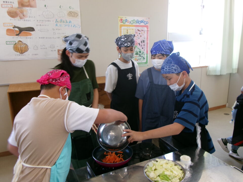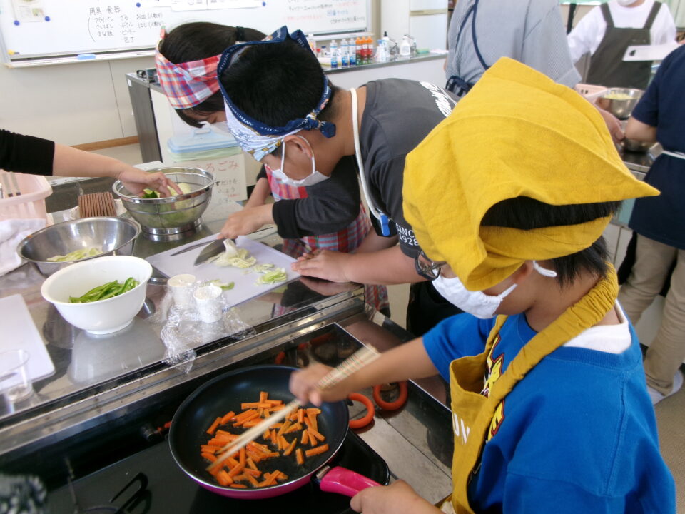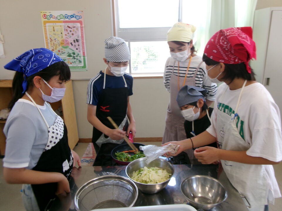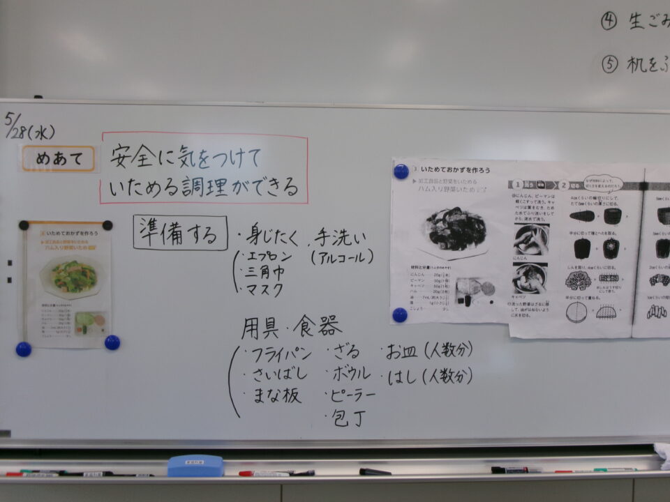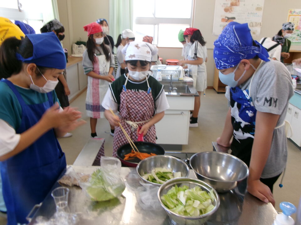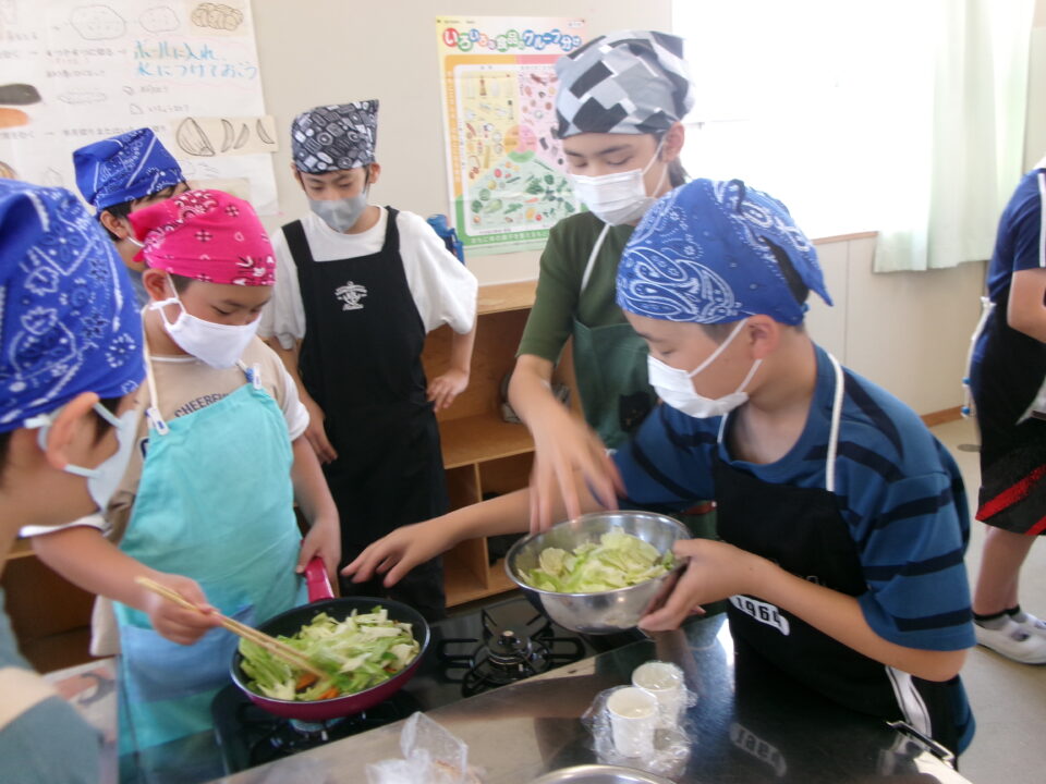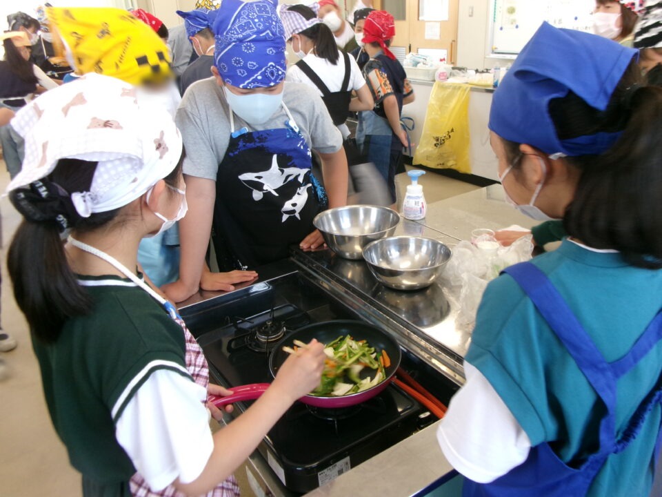 年生ねんせい家庭科かていかでは、5年生ねんせいならったことのうえにさらにおもに「いためる」ことを中心ちゅうしん調理実習ちょうりじっしゅうをします。