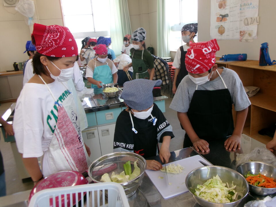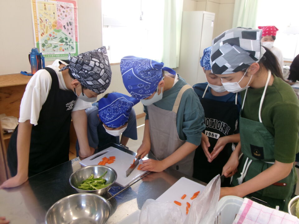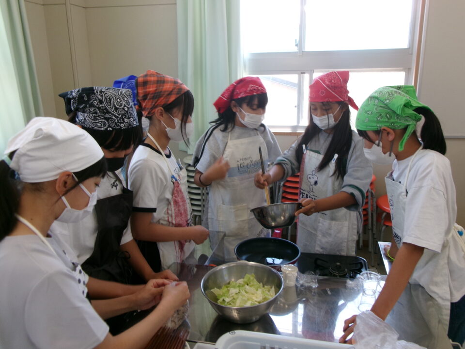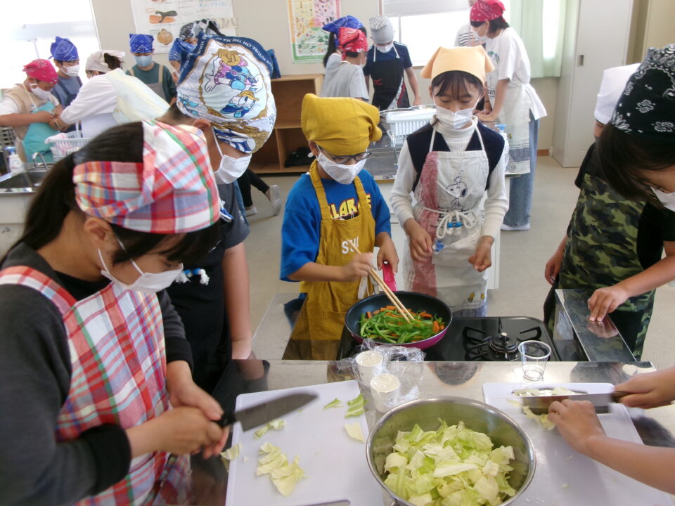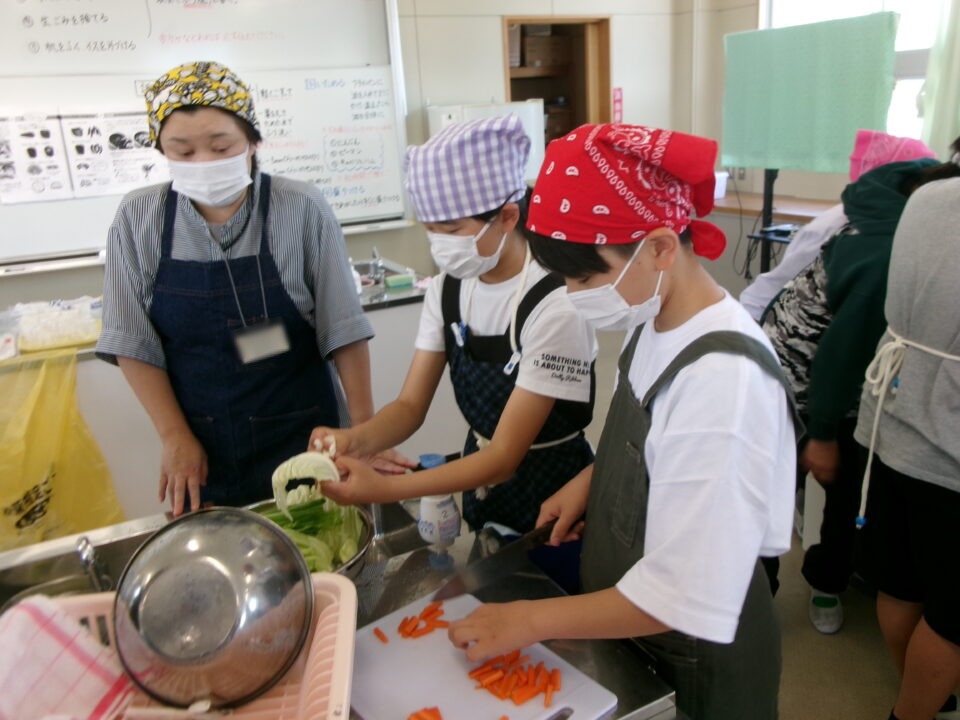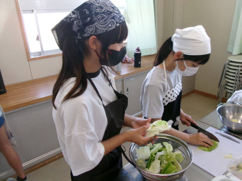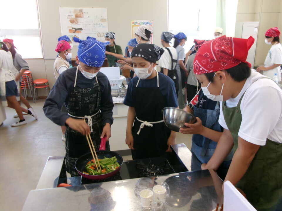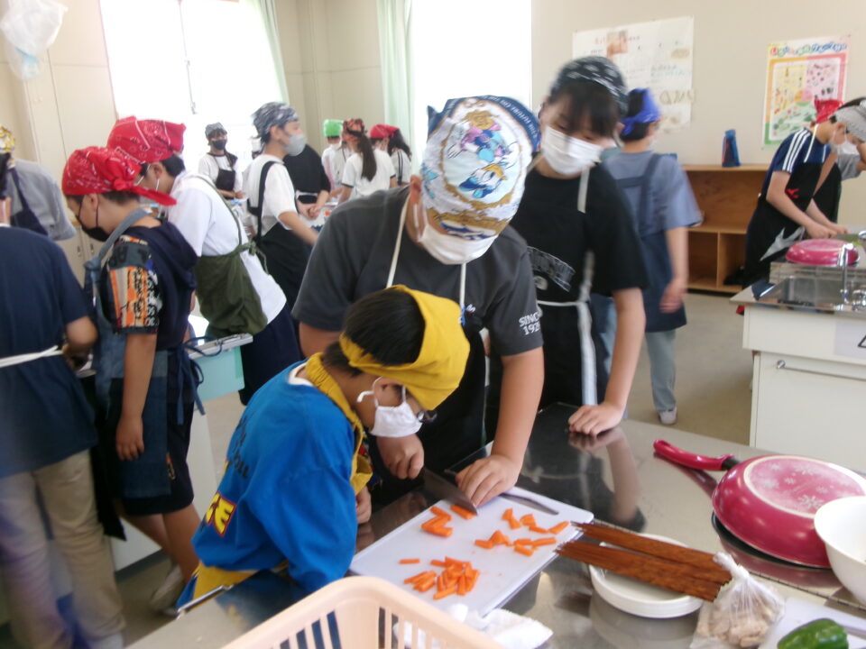 年生ねんせい家庭科かていかでは、5年生ねんせいならったことのうえにさらにおもに「いためる」ことを中心ちゅうしん調理実習ちょうりじっしゅうをします。